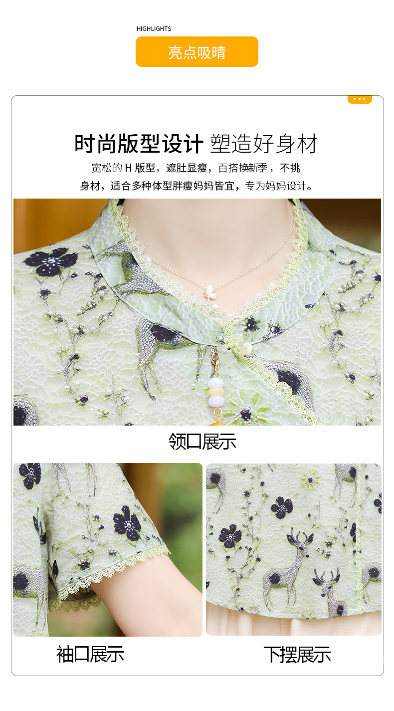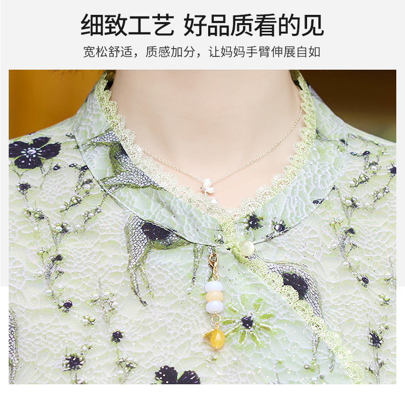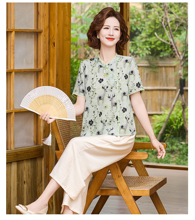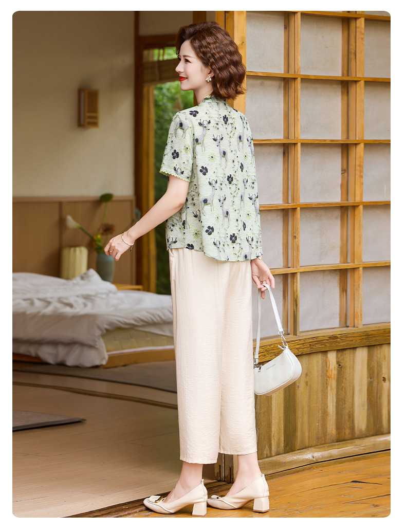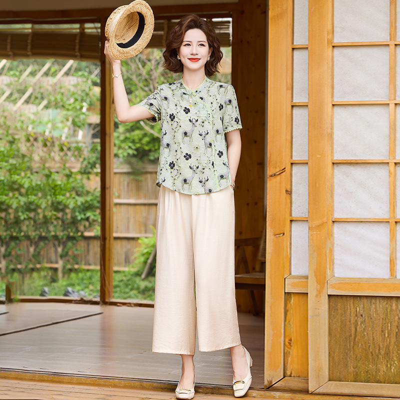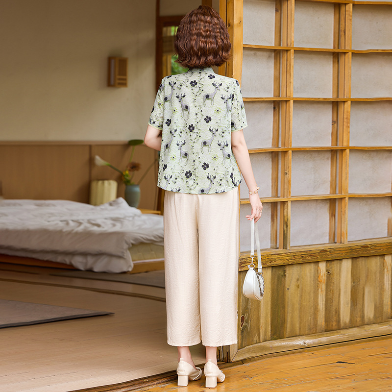 夏季妈妈短袖套装2025新款中老年印花短袖上衣洋气婆婆大码两件套