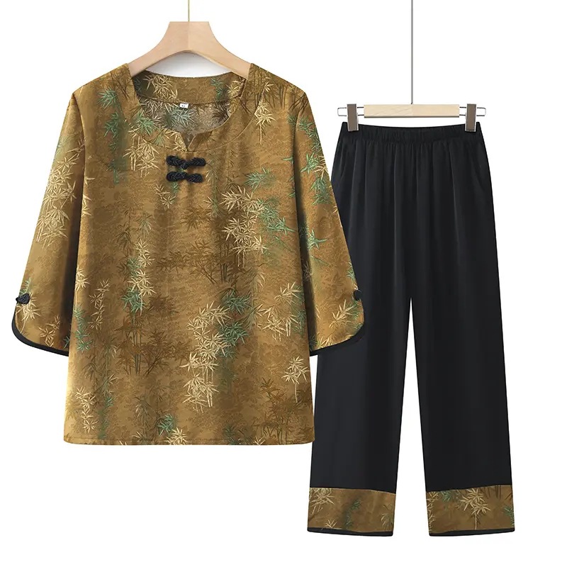 中老年夏装妈妈装50-60岁高档套装奶奶装宽松衣服老太太夏天透气