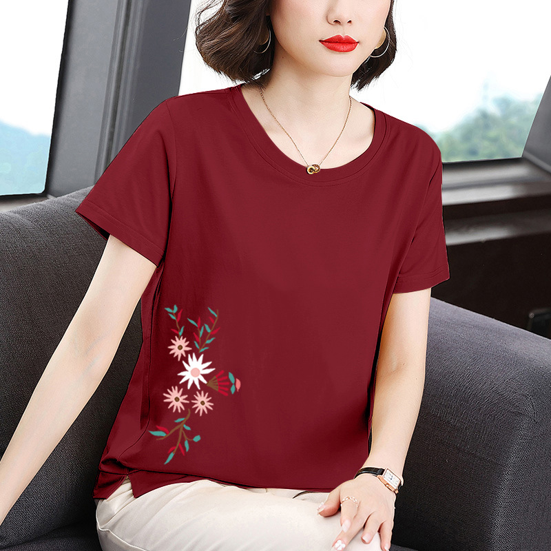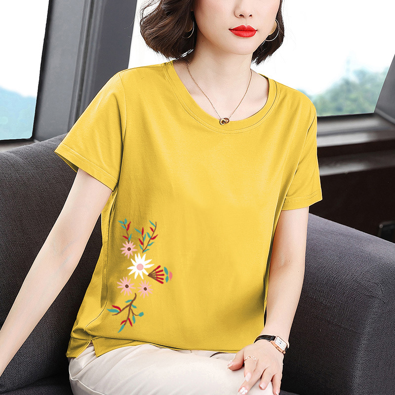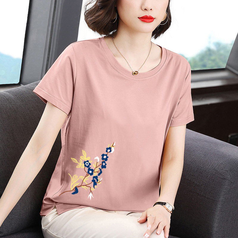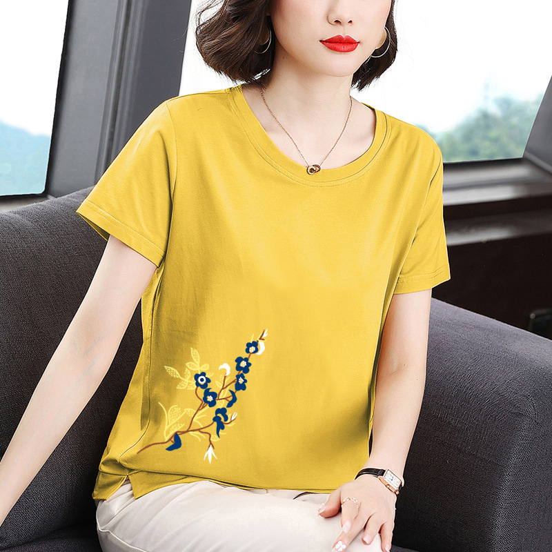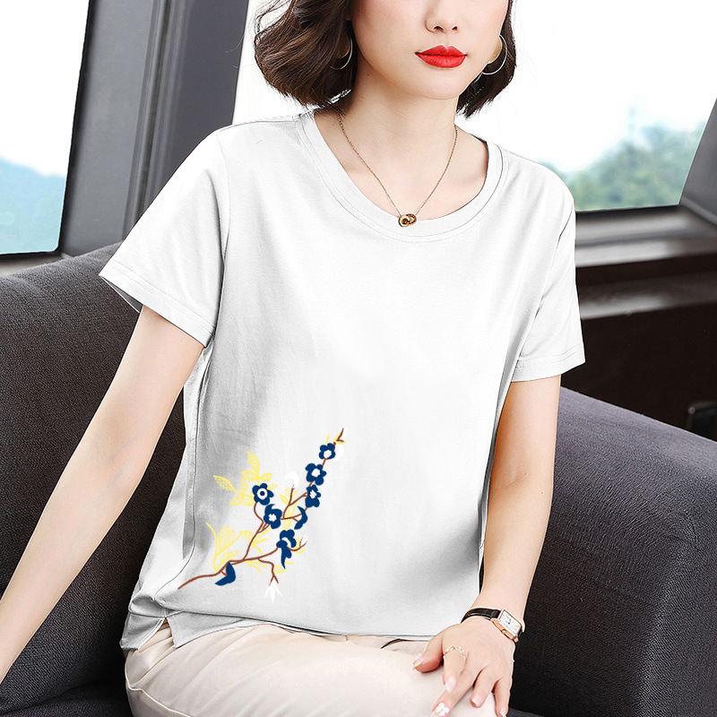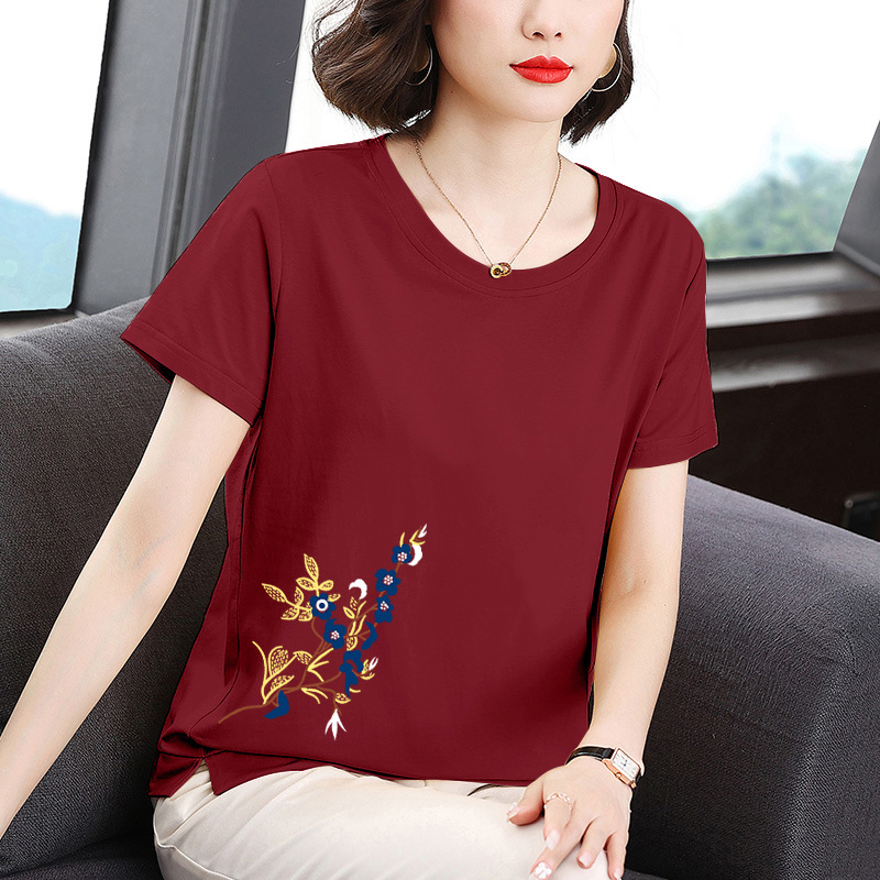 棉t恤女妈妈短袖夏季宽松显瘦新款中国风中年妇女装气质上衣潮