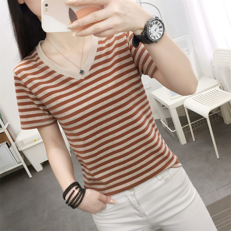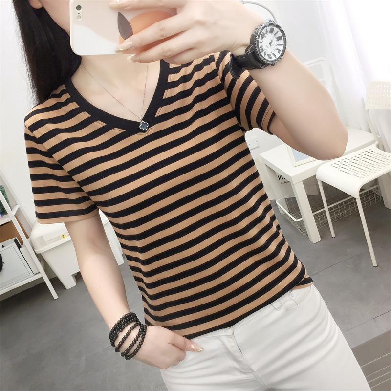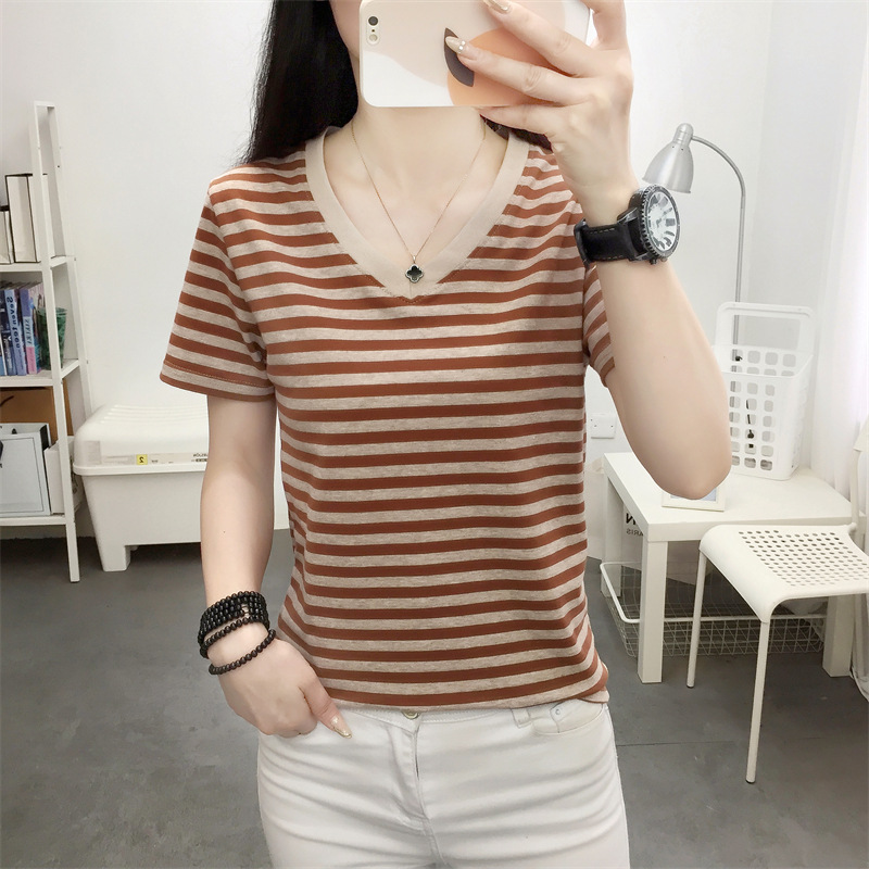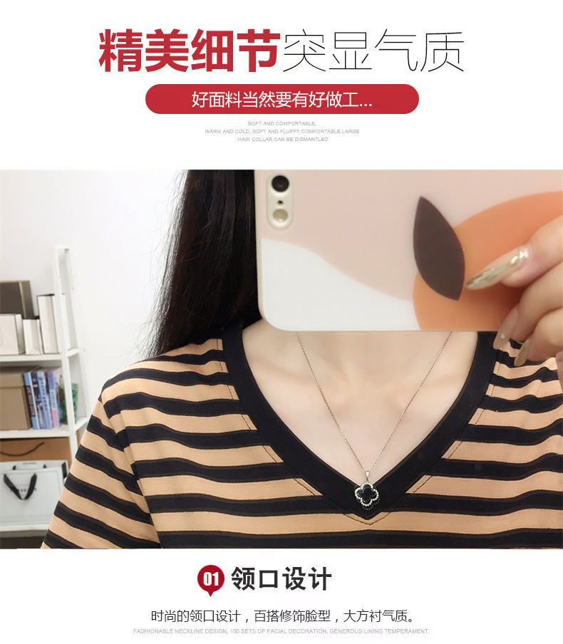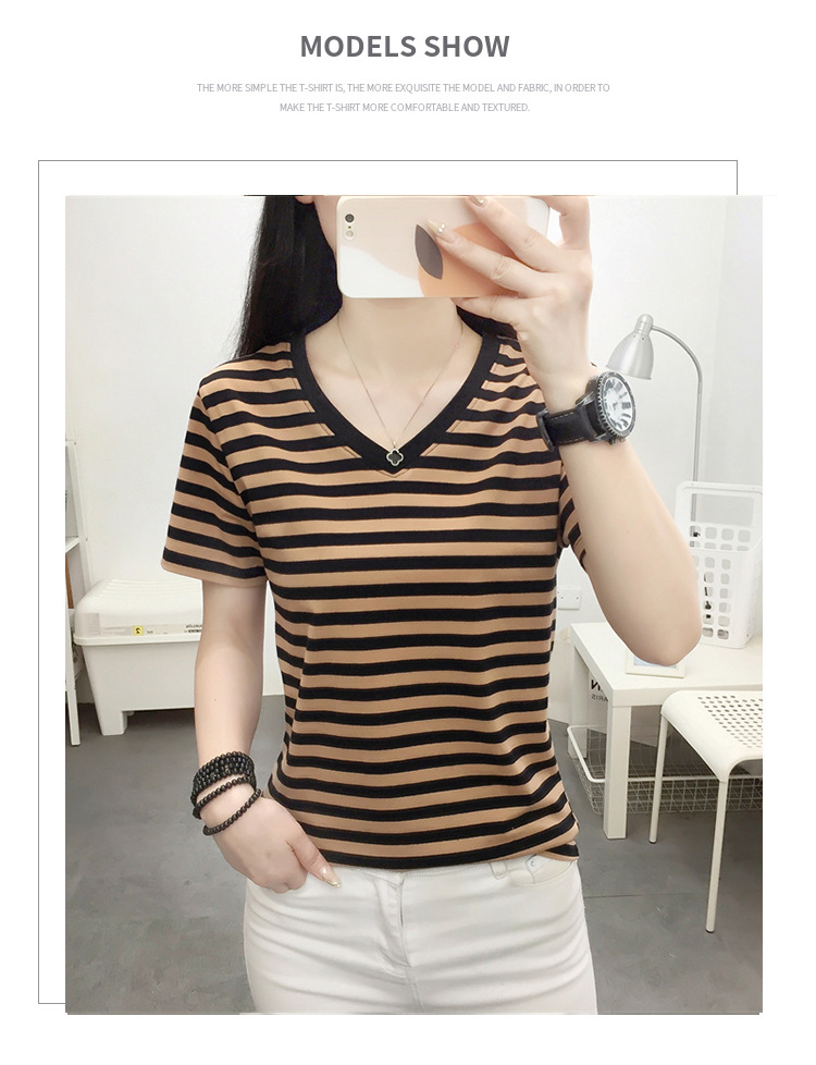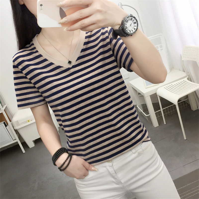 胖mm大码宽松纯棉短袖T恤女装中年妈妈夏装条纹体恤衫半袖上衣服