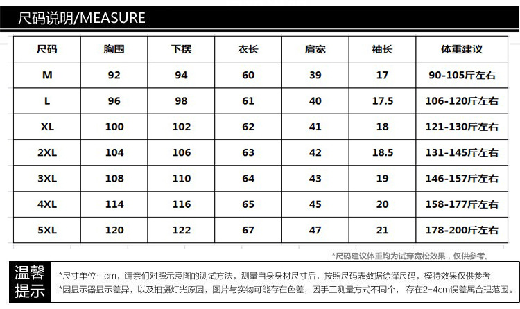 | 4XL码建议【161-180斤】 | USD $0.0 | 1999 piece available |