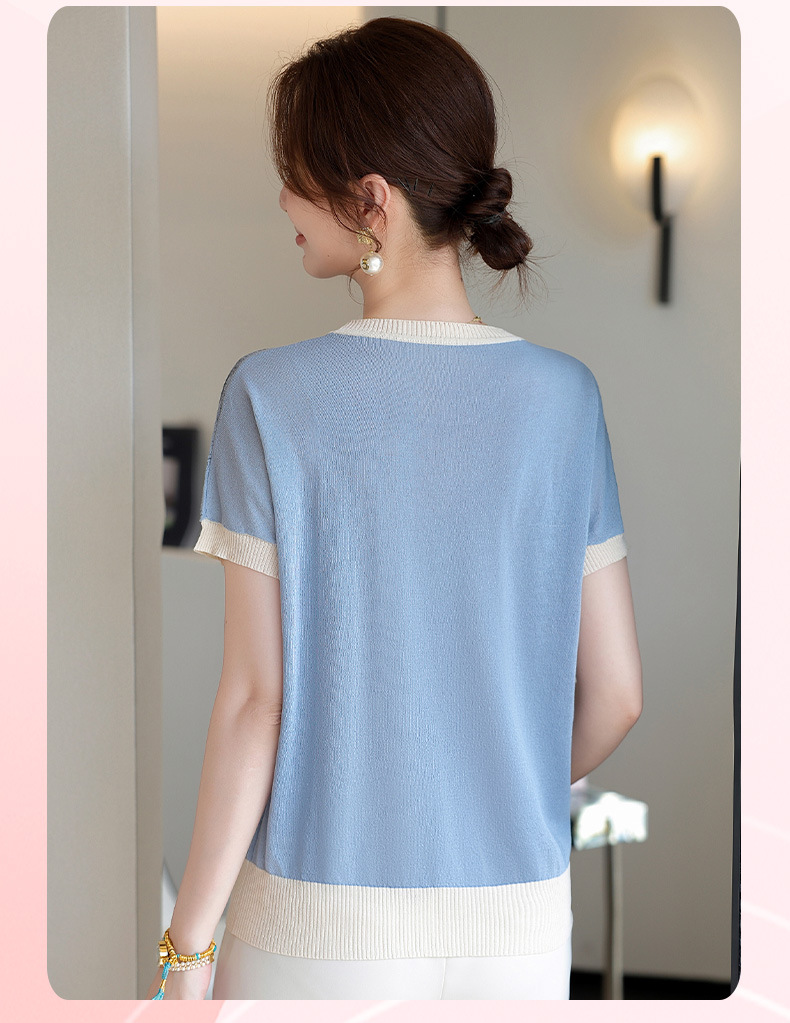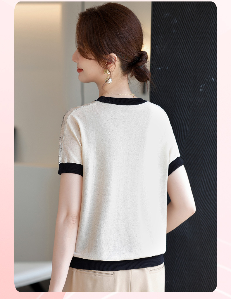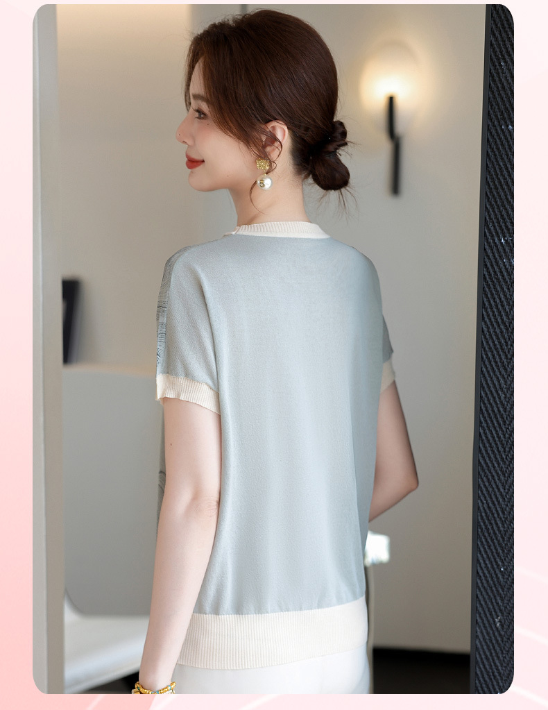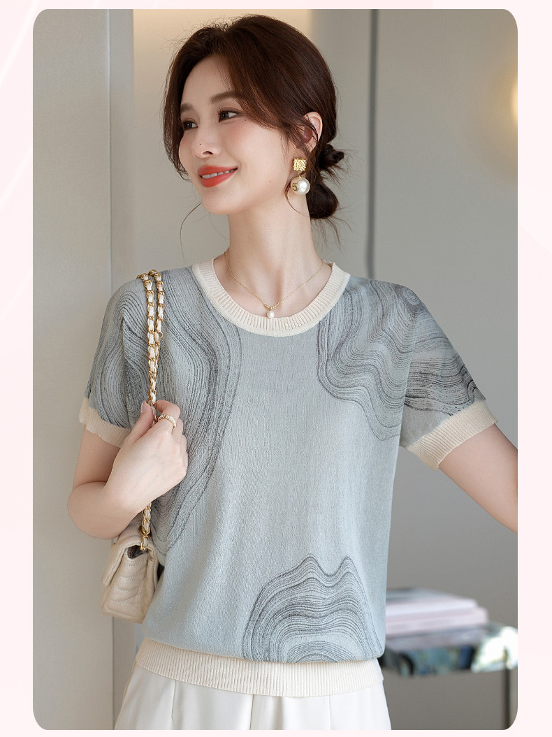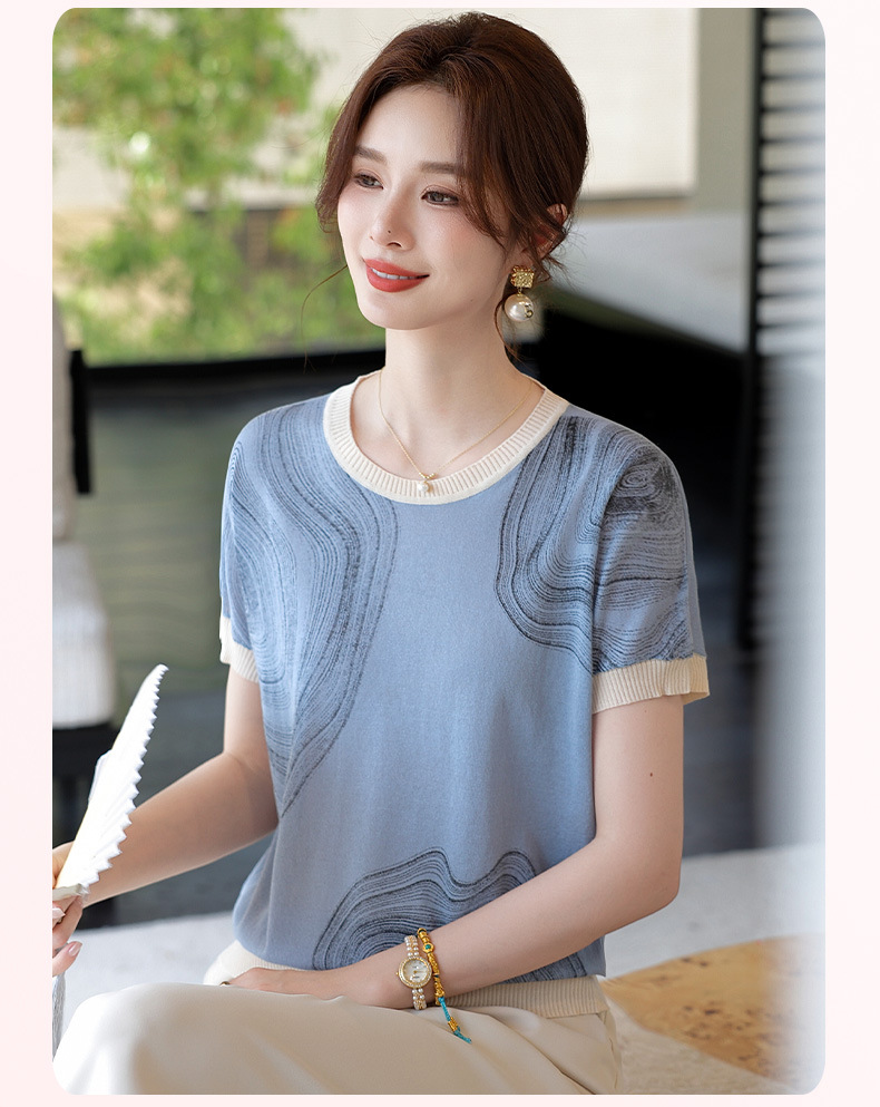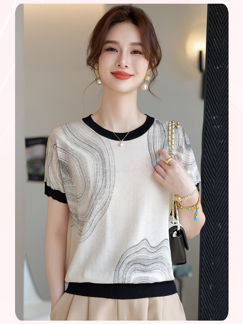 妈妈装设计感印花针织衫短袖2025新款时尚休闲显瘦中老年女装上衣