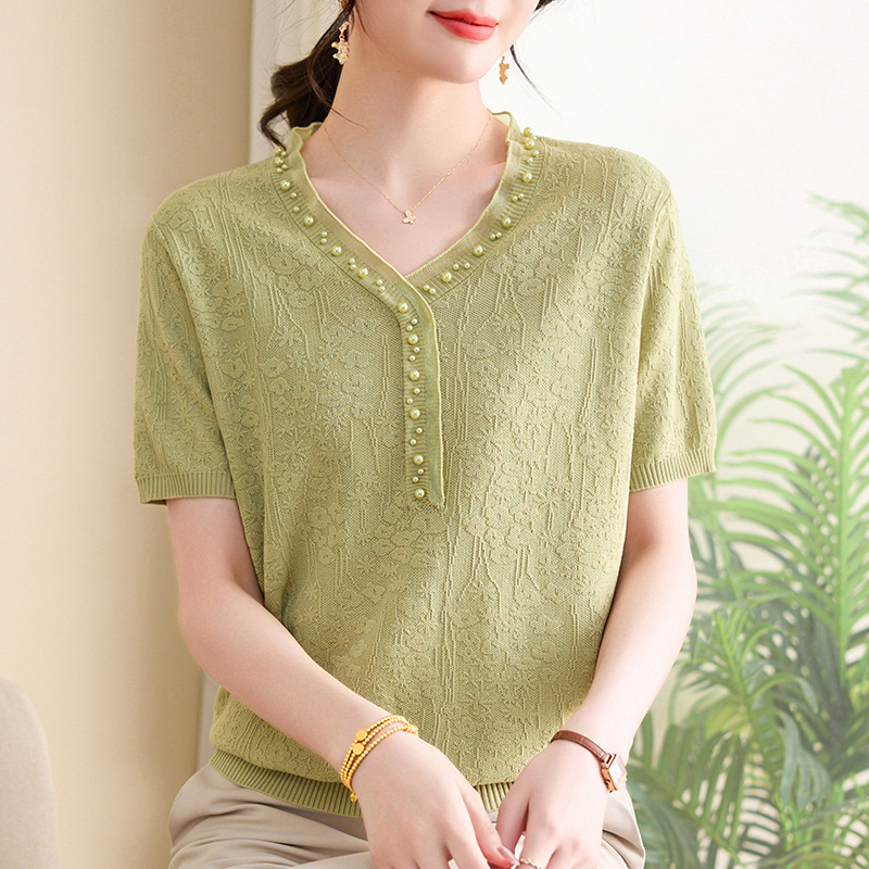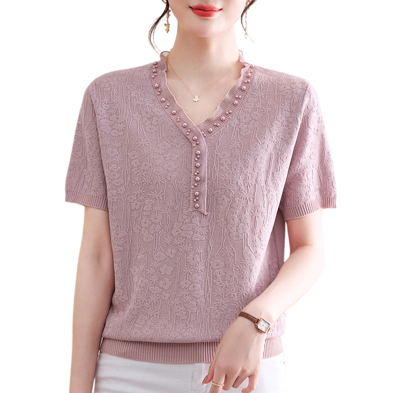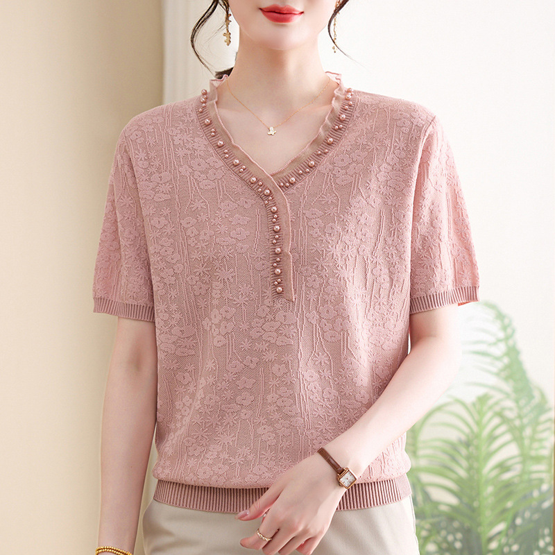 年轻妈妈夏装新款冰丝小衫短袖t恤中老年女装时尚上衣母亲节衣服