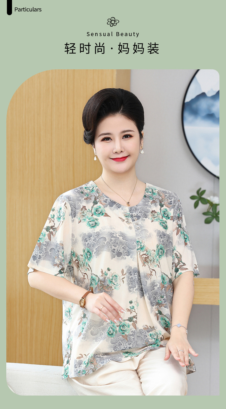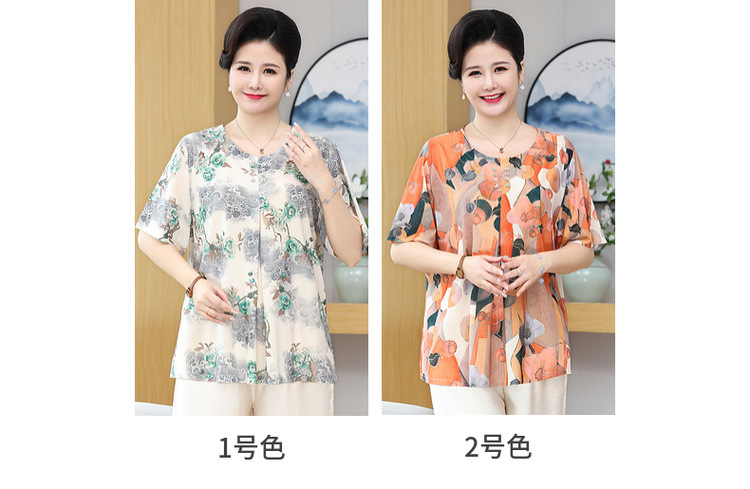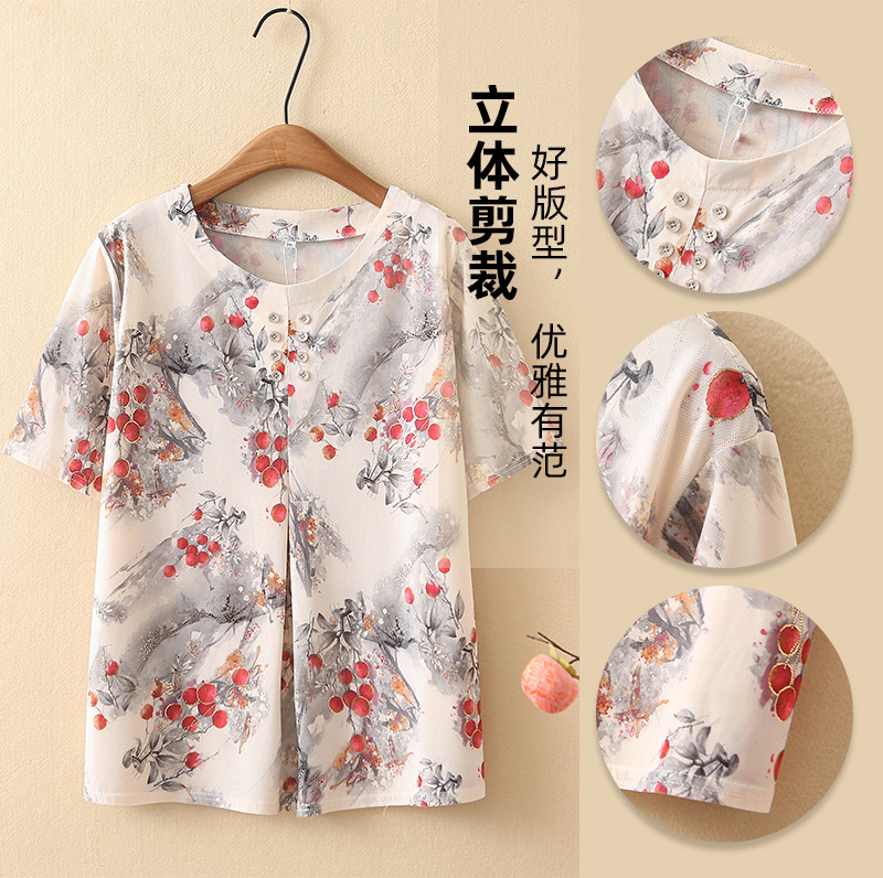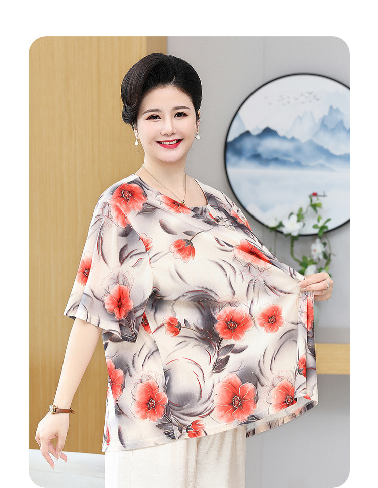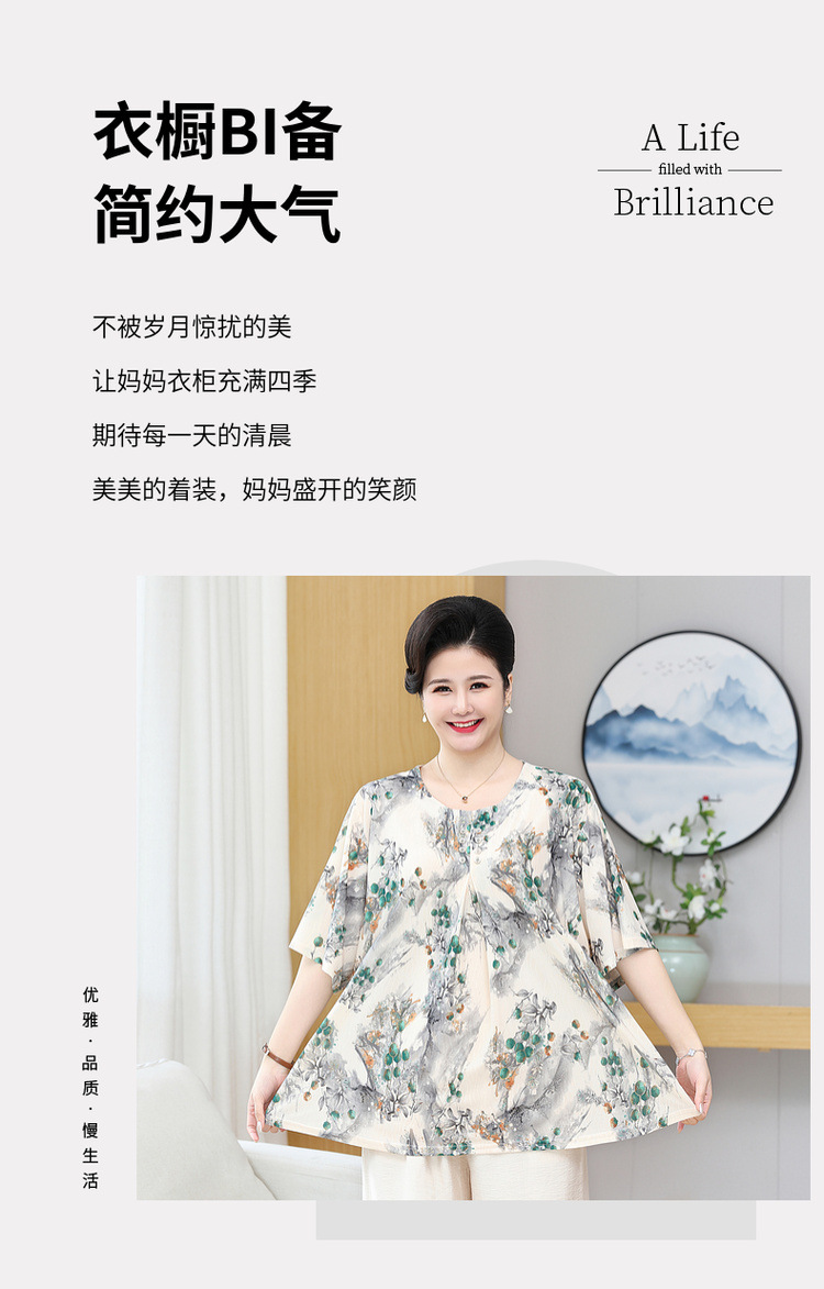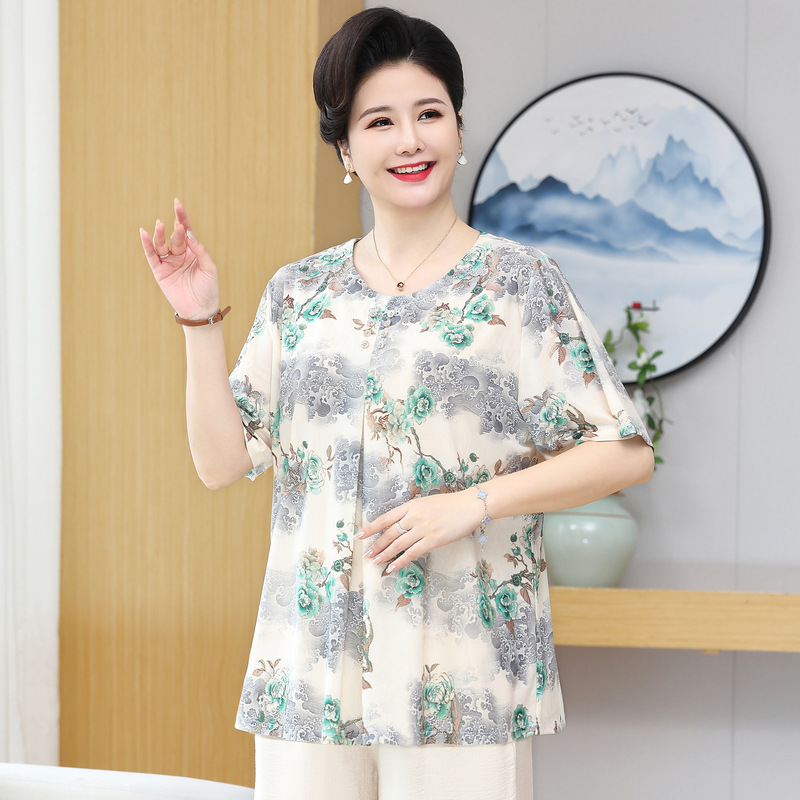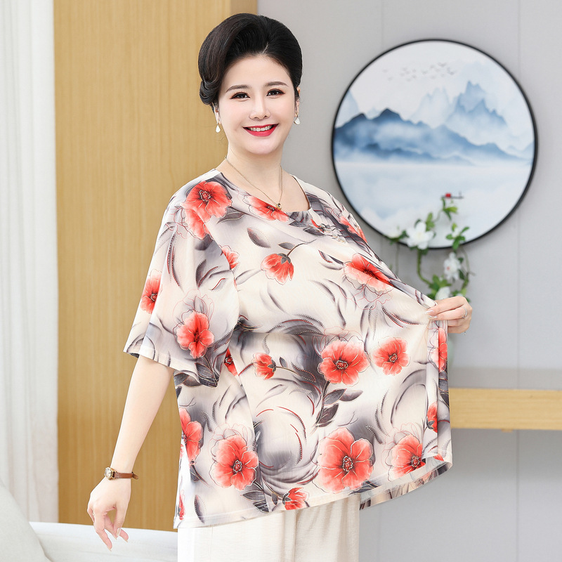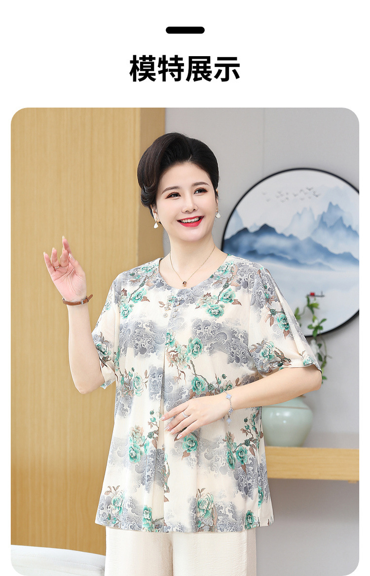 200斤胖妈妈夏季冰丝弹力短袖t恤大码中老年女装洋气减龄宽松上衣