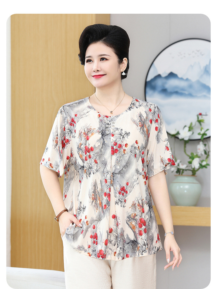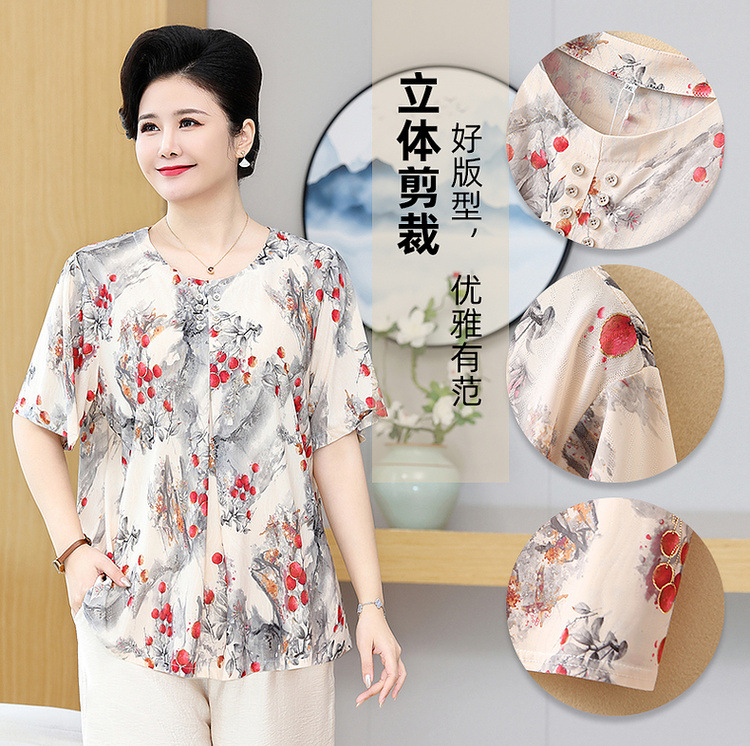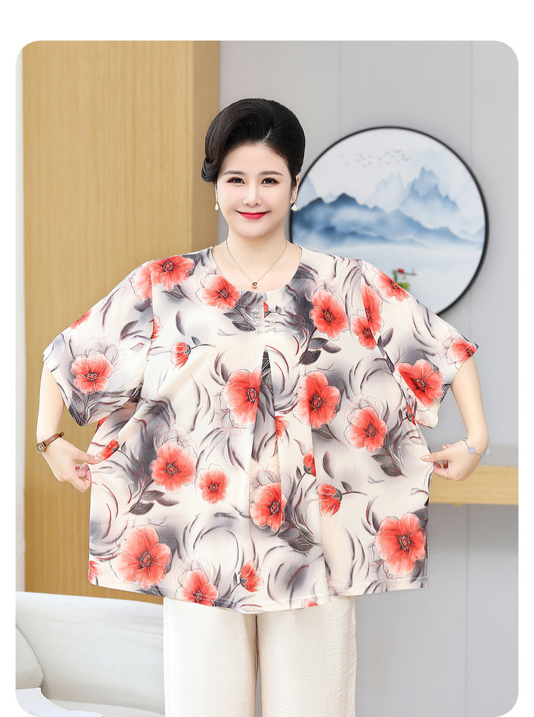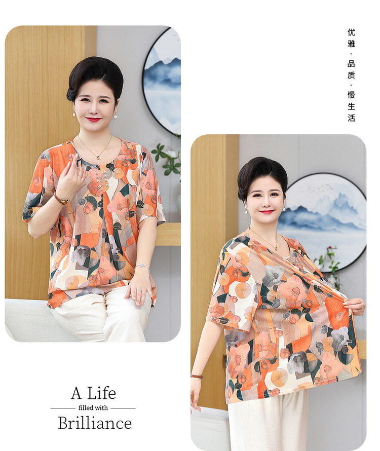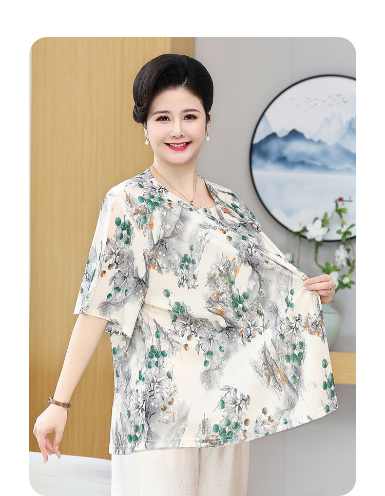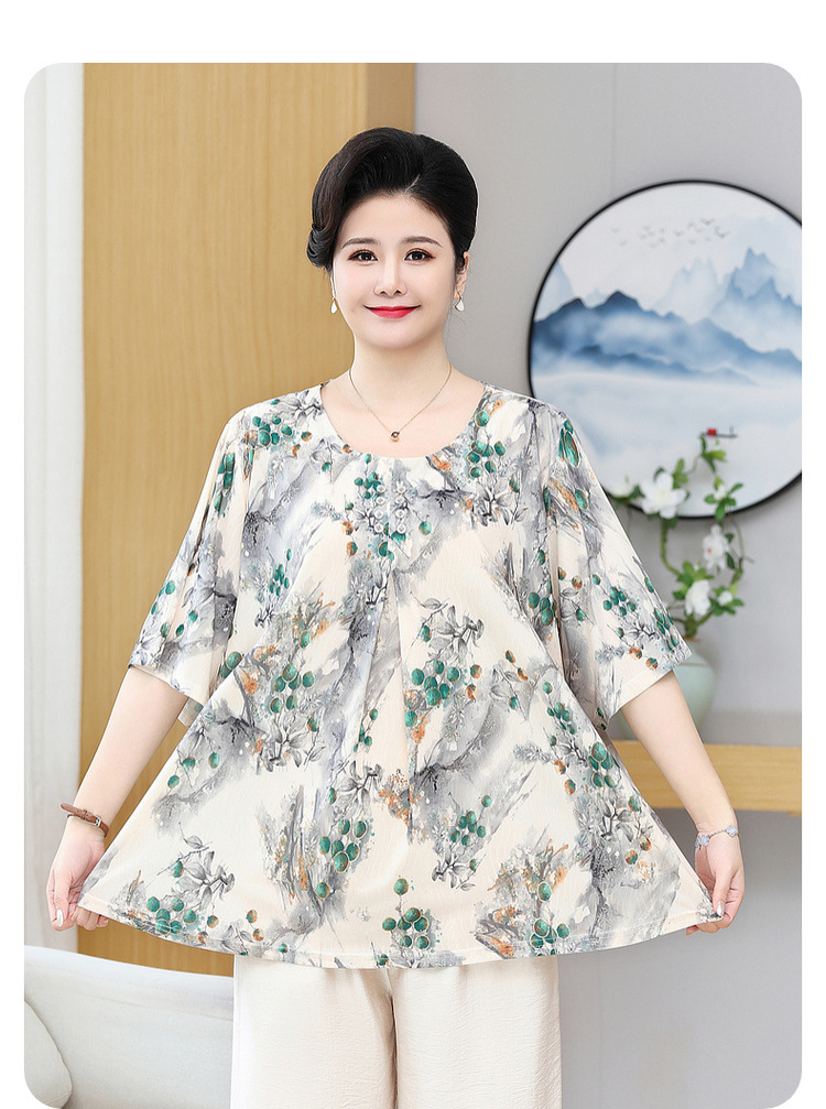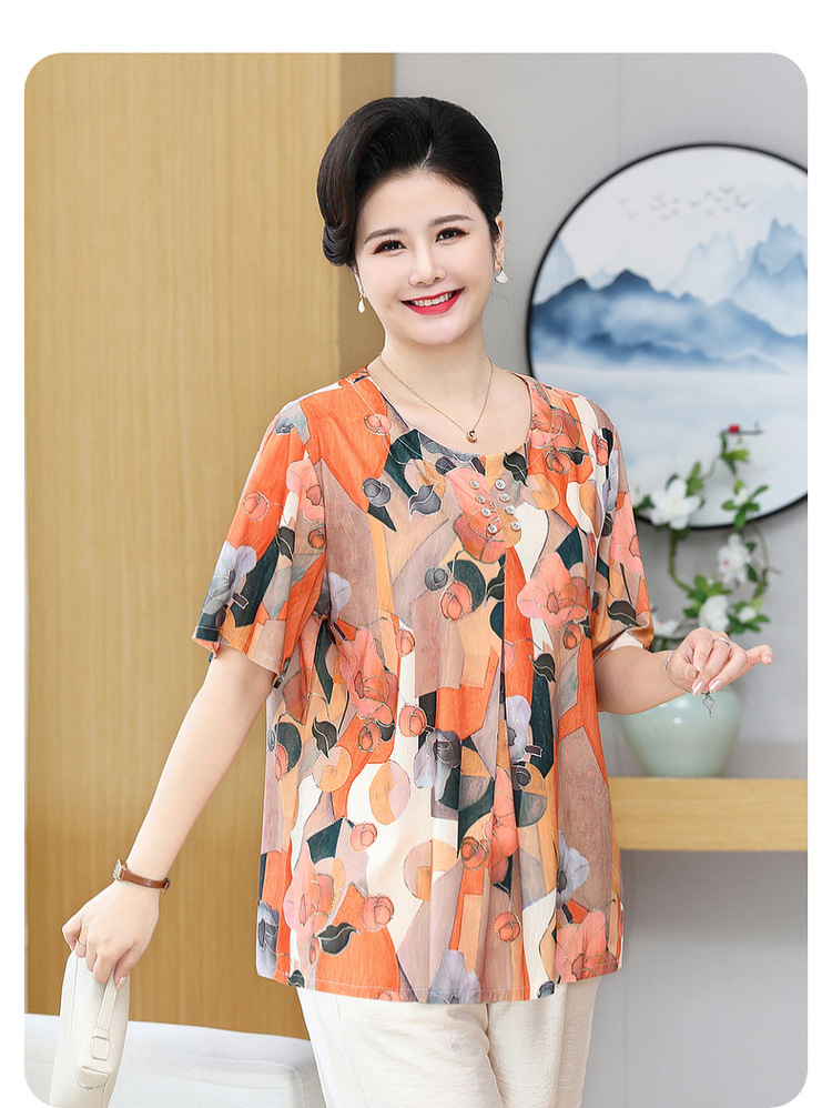 200斤胖妈妈夏季冰丝弹力短袖t恤大码中老年女装洋气减龄宽松上衣