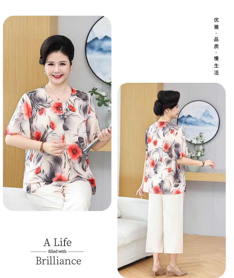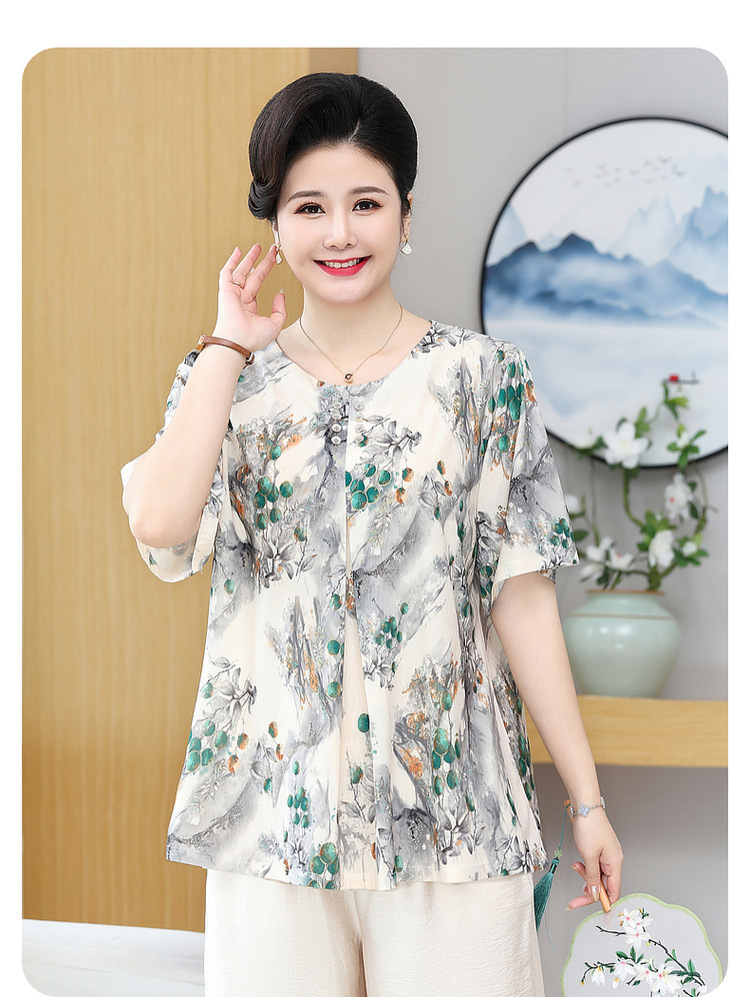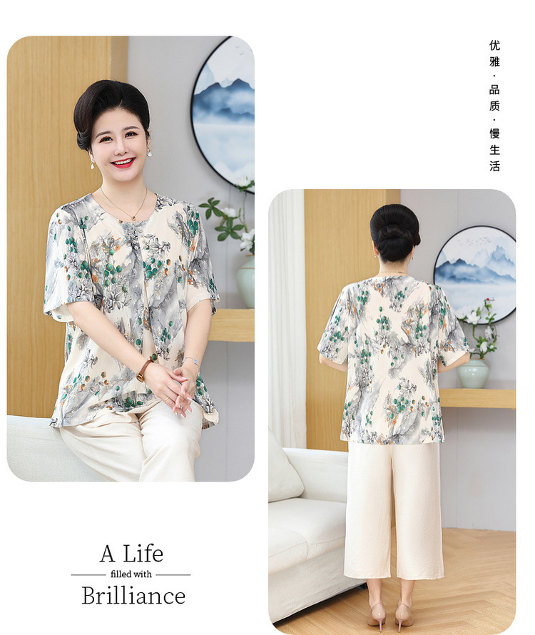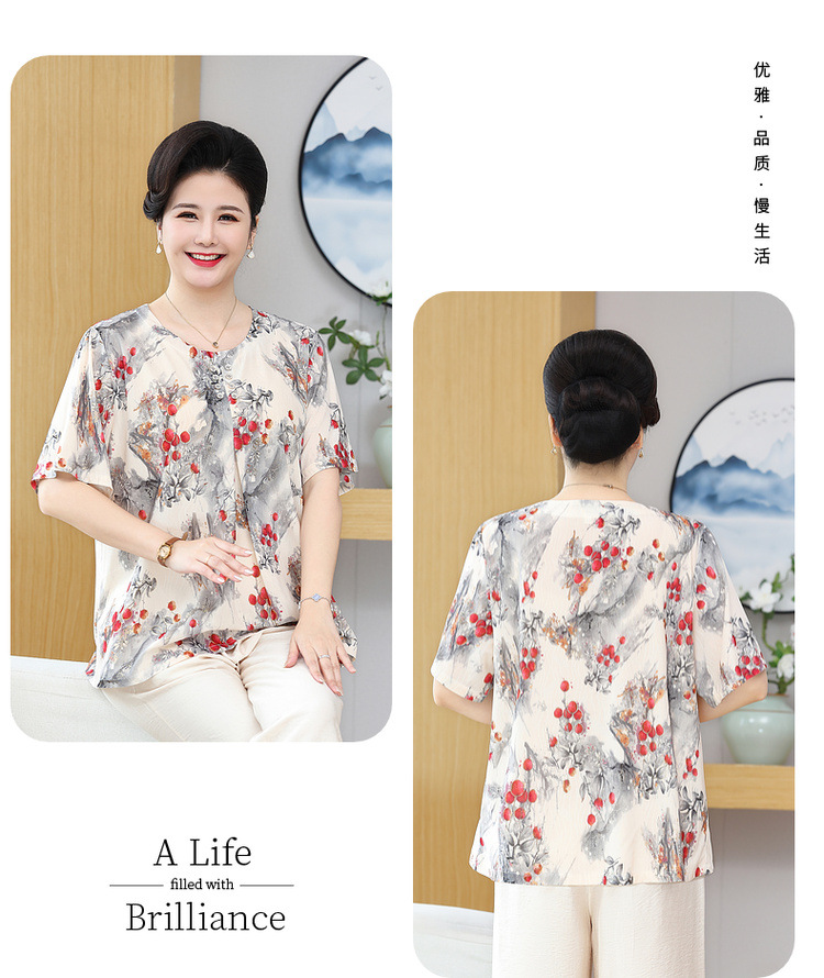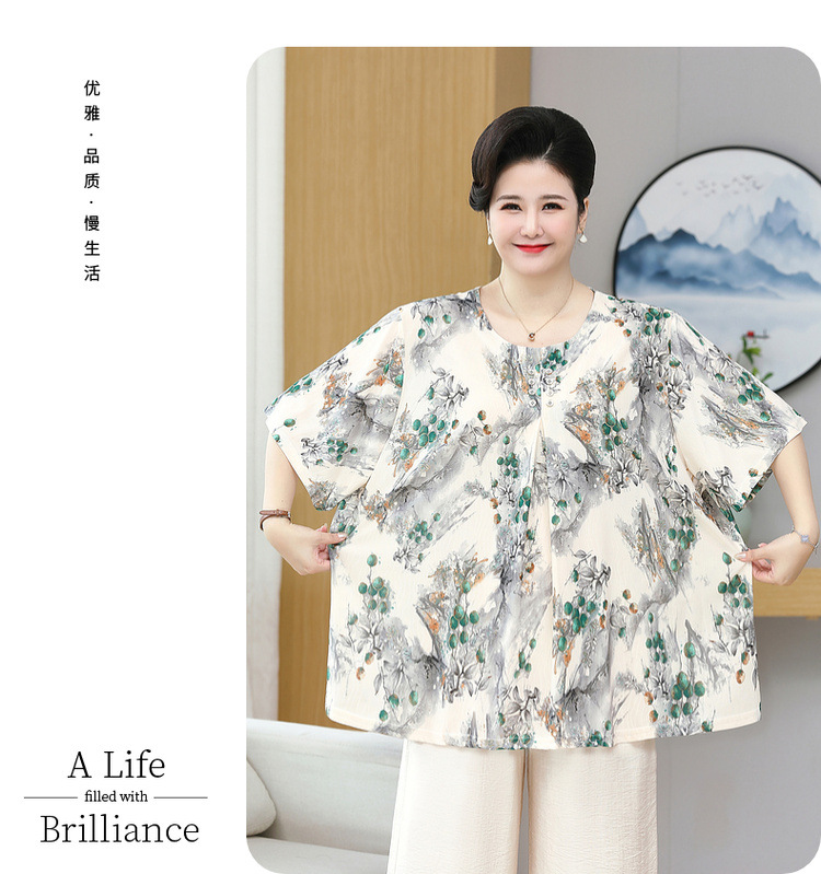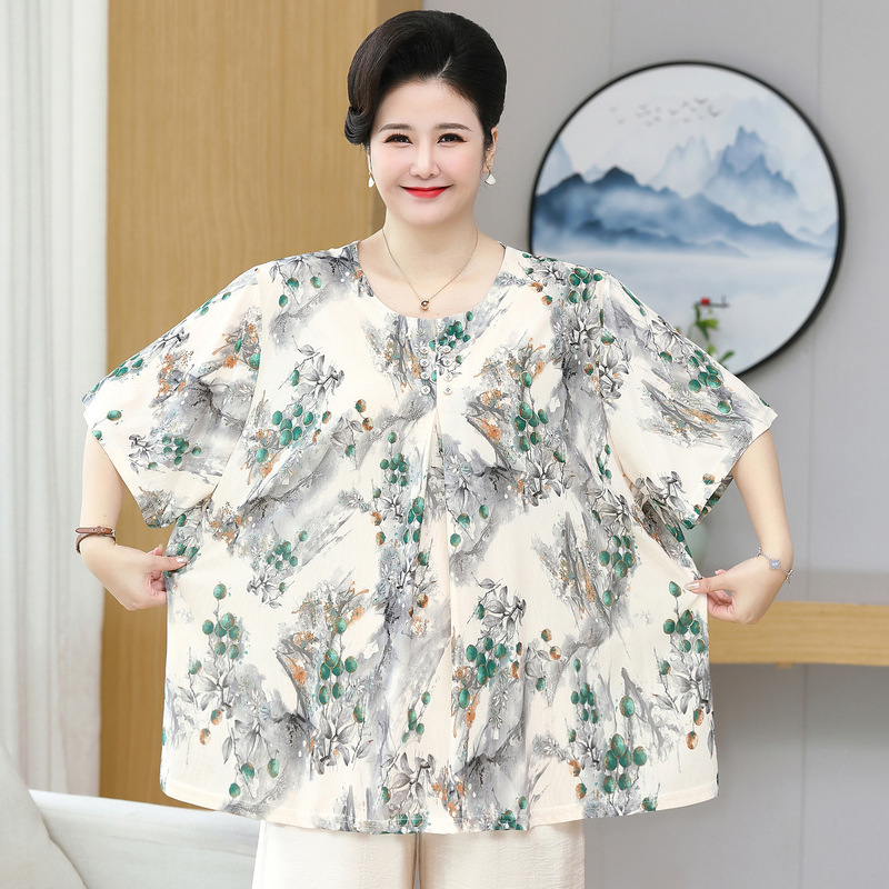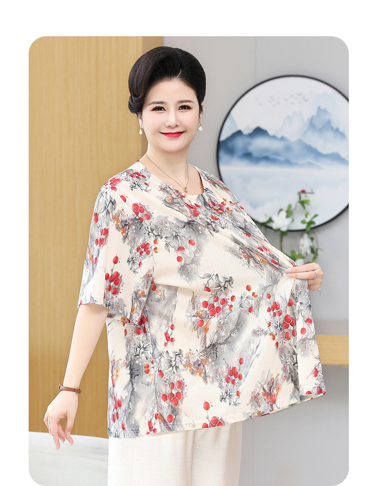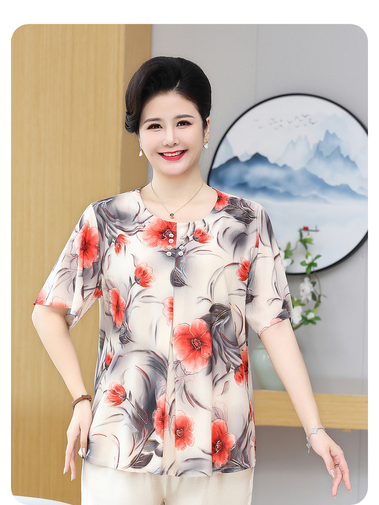 200斤胖妈妈夏季冰丝弹力短袖t恤大码中老年女装洋气减龄宽松上衣