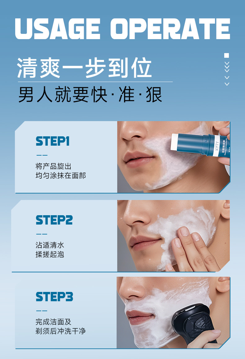 洁面剃须棒男士剃须膏剃须泡沫胡须护理泡沫膏软化男士脱胡子神器