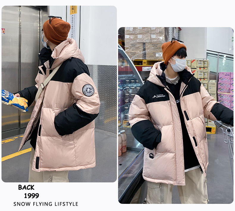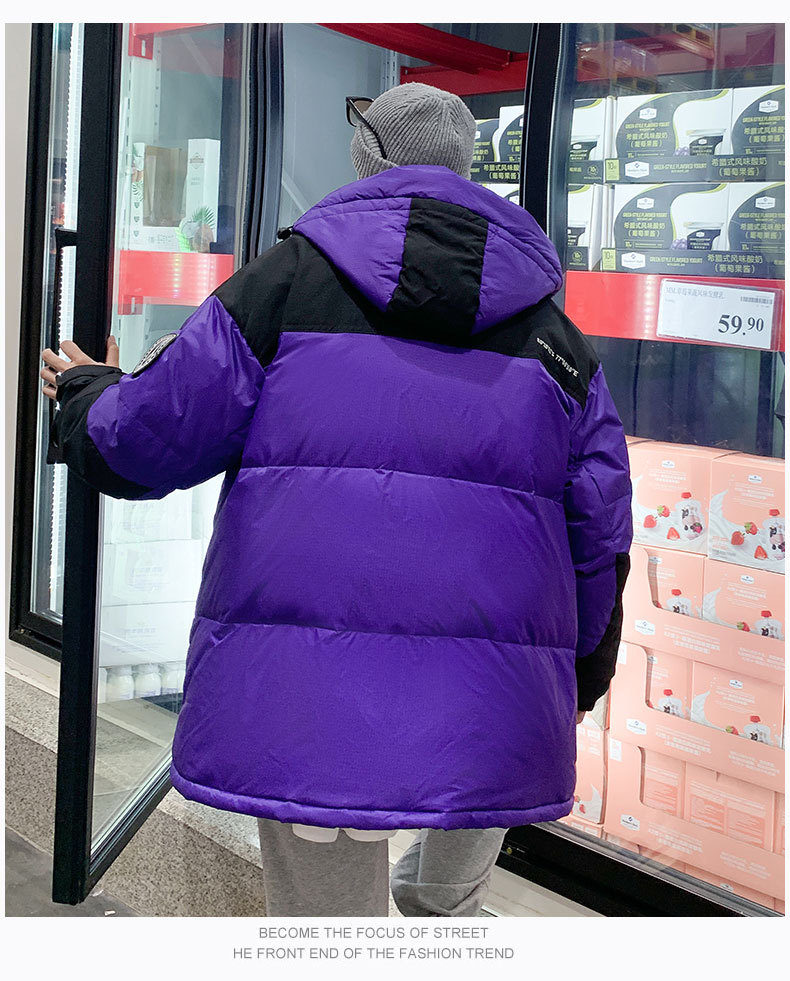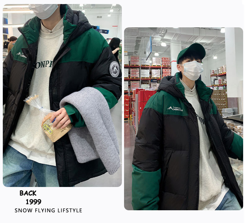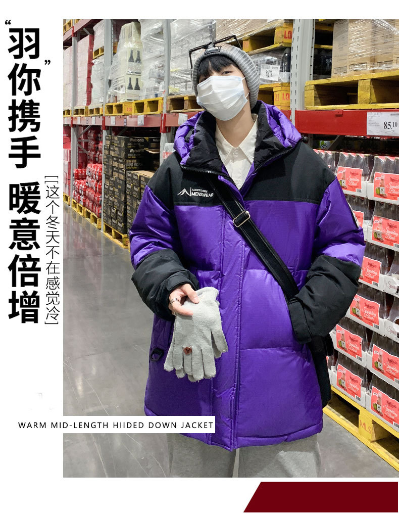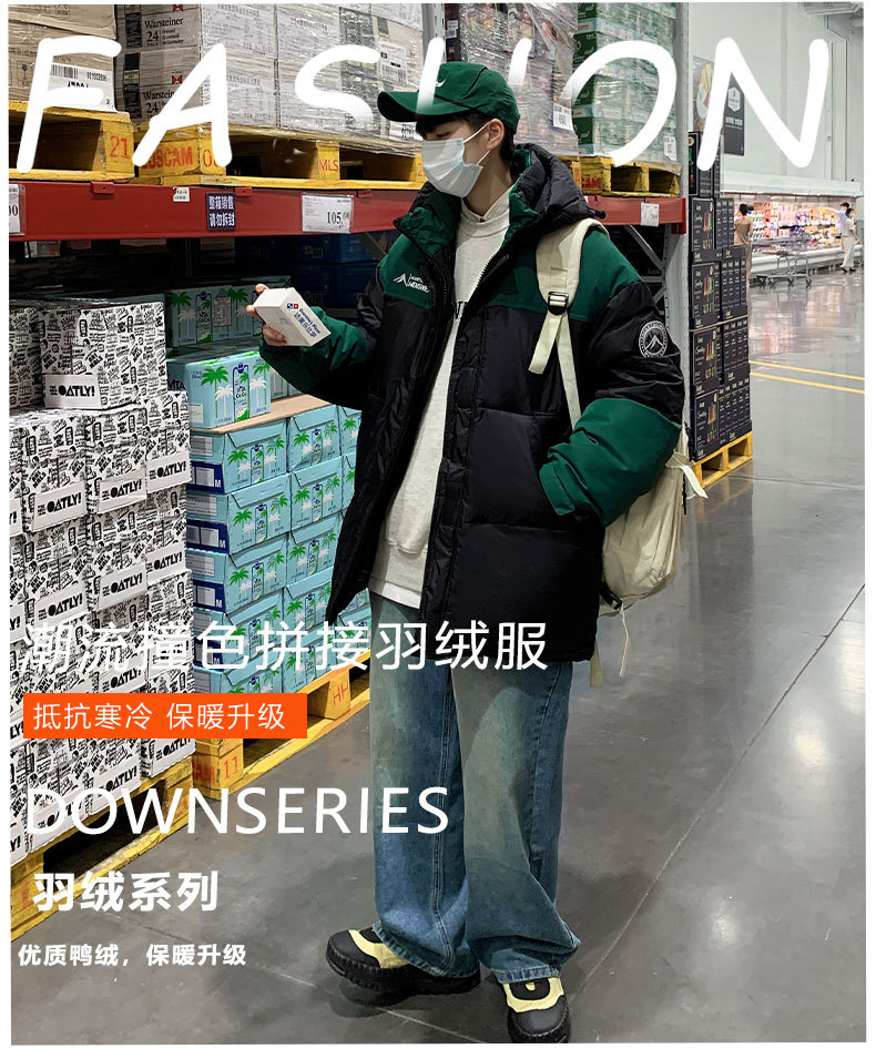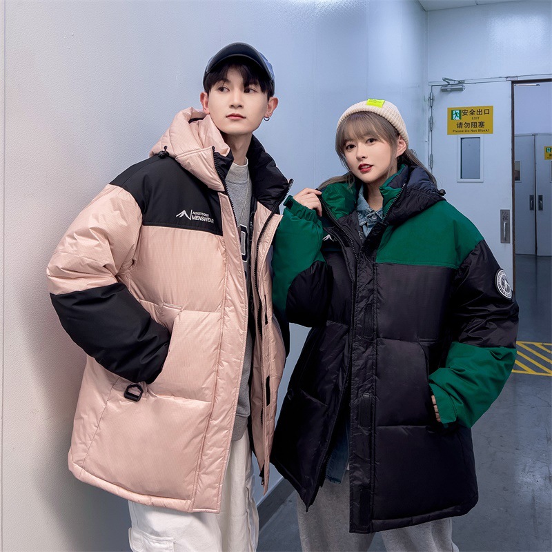 2023新款情侣羽绒服男女冬季拼接撞色宽松情侣加厚保暖运动外套潮