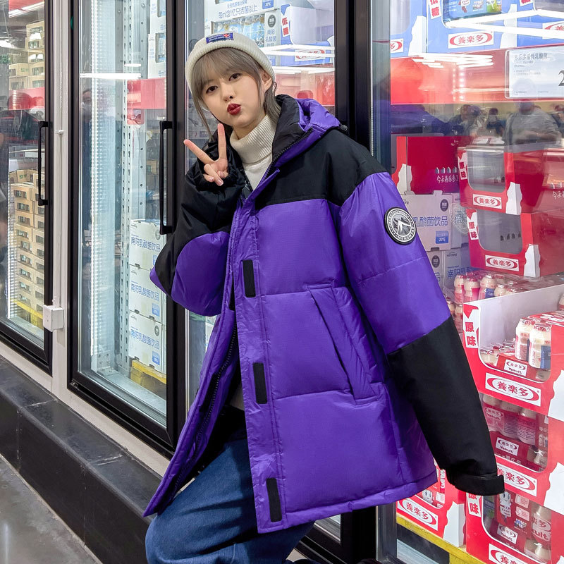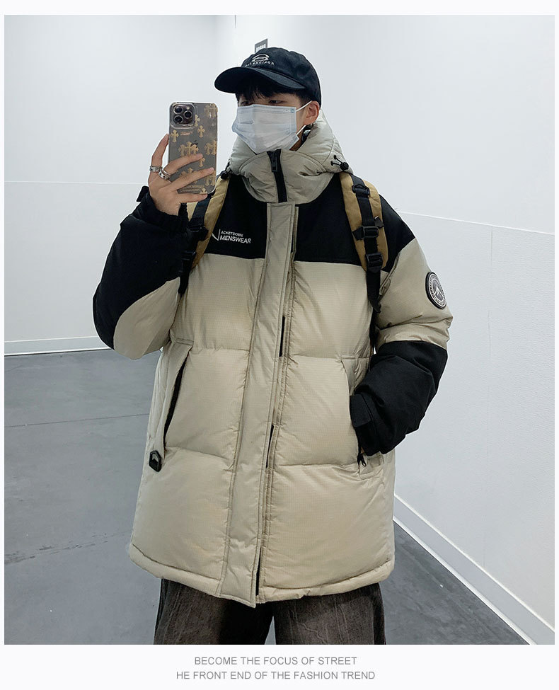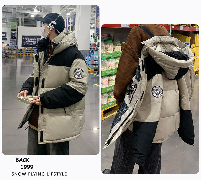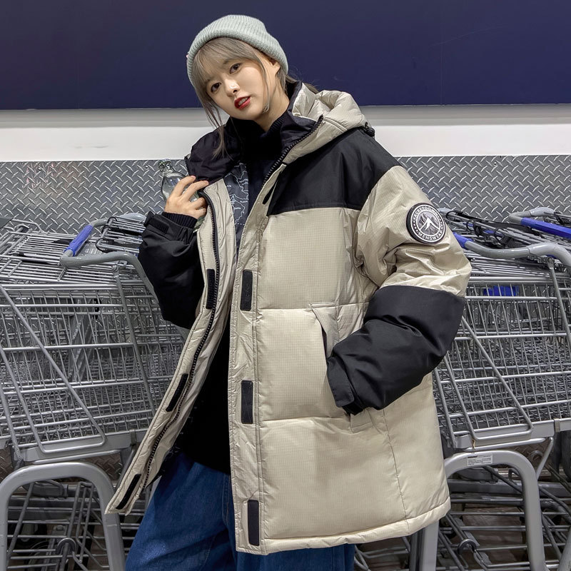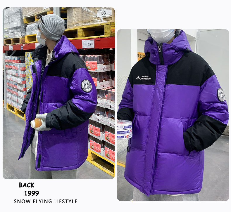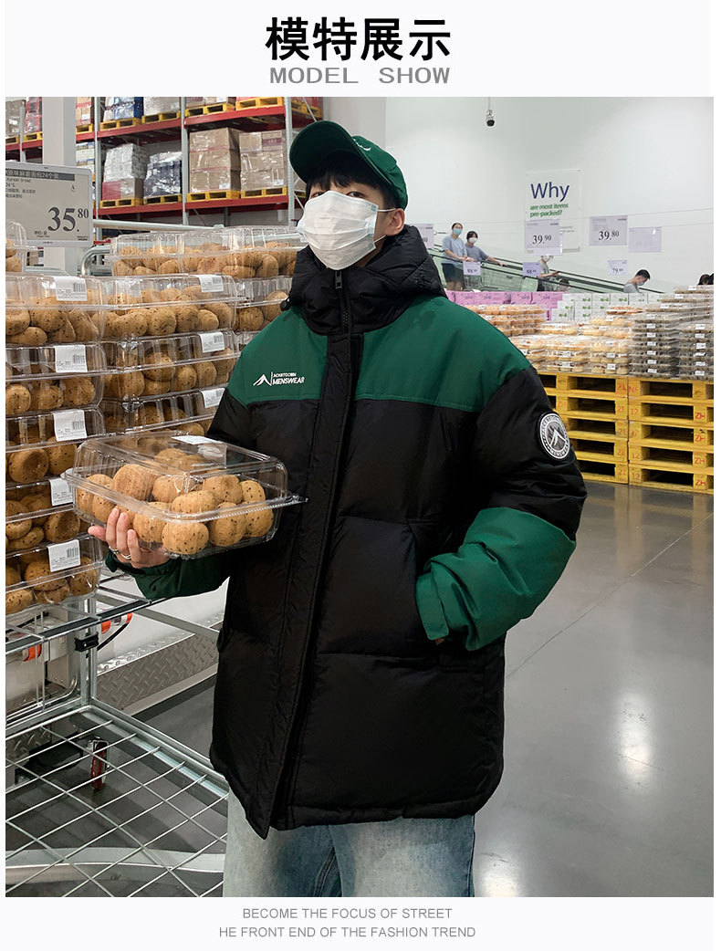 2023新款情侣羽绒服男女冬季拼接撞色宽松情侣加厚保暖运动外套潮