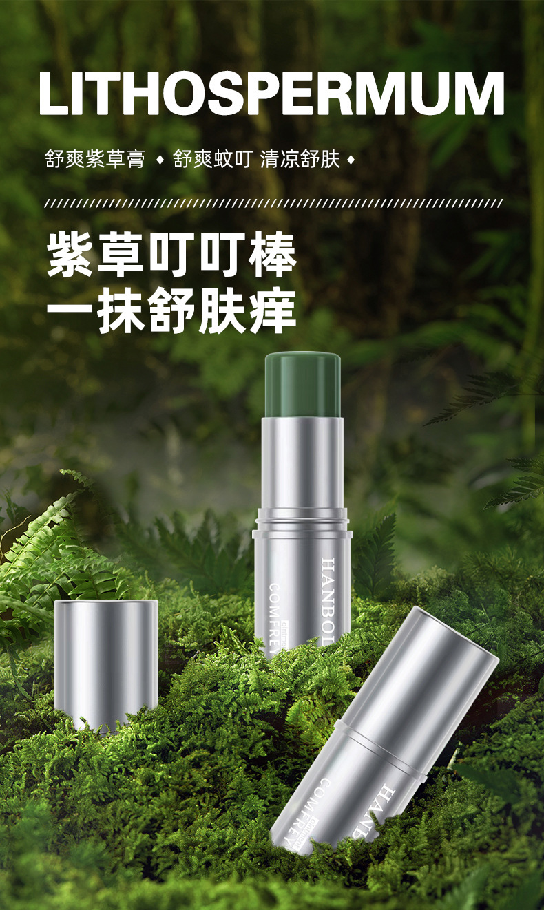 夏天户外蚊虫叮咬银管紫草膏便携清凉薄荷膏清凉油蚊虫跳蚤紫草棒