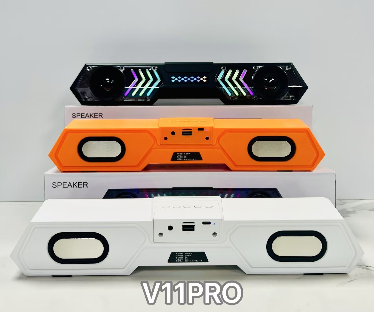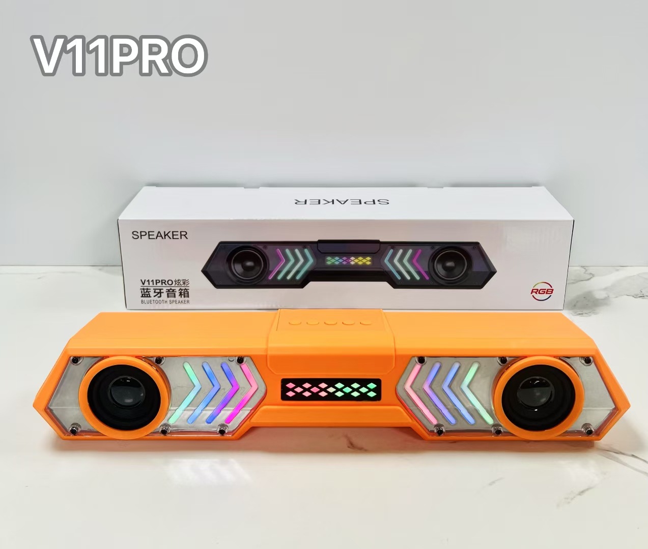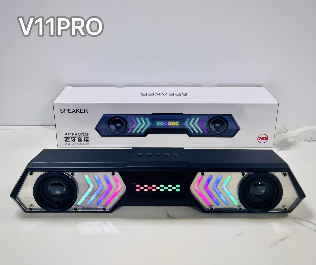 V11 PRO跨境外贸机甲回音壁蓝牙音箱响炫彩RGB桌面电脑户外低音炮