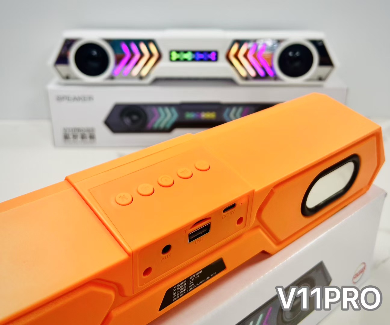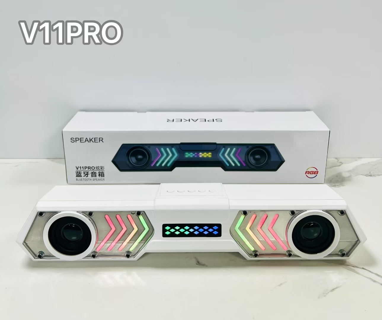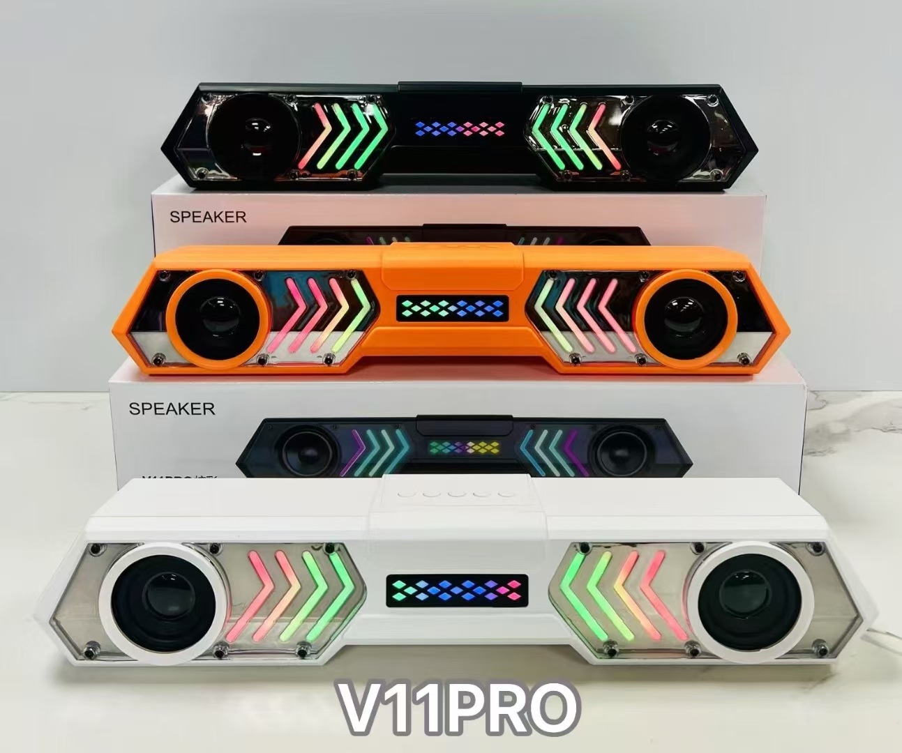 V11 PRO跨境外贸机甲回音壁蓝牙音箱响炫彩RGB桌面电脑户外低音炮