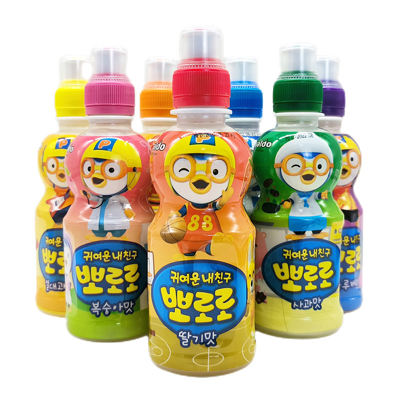 Pororo韩国啵乐乐牛奶味饮料宝露露进口水果味果汁235ml瓶装批发