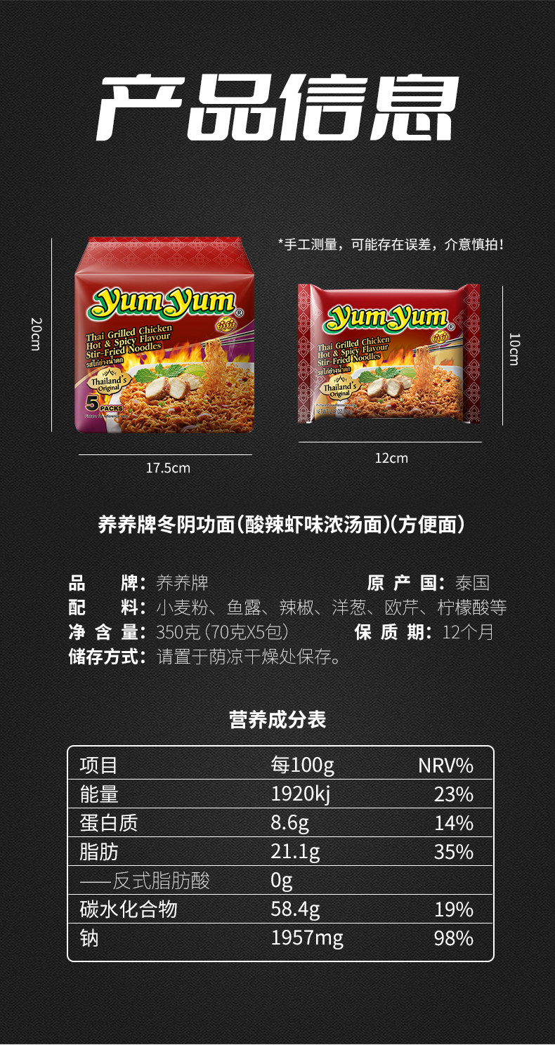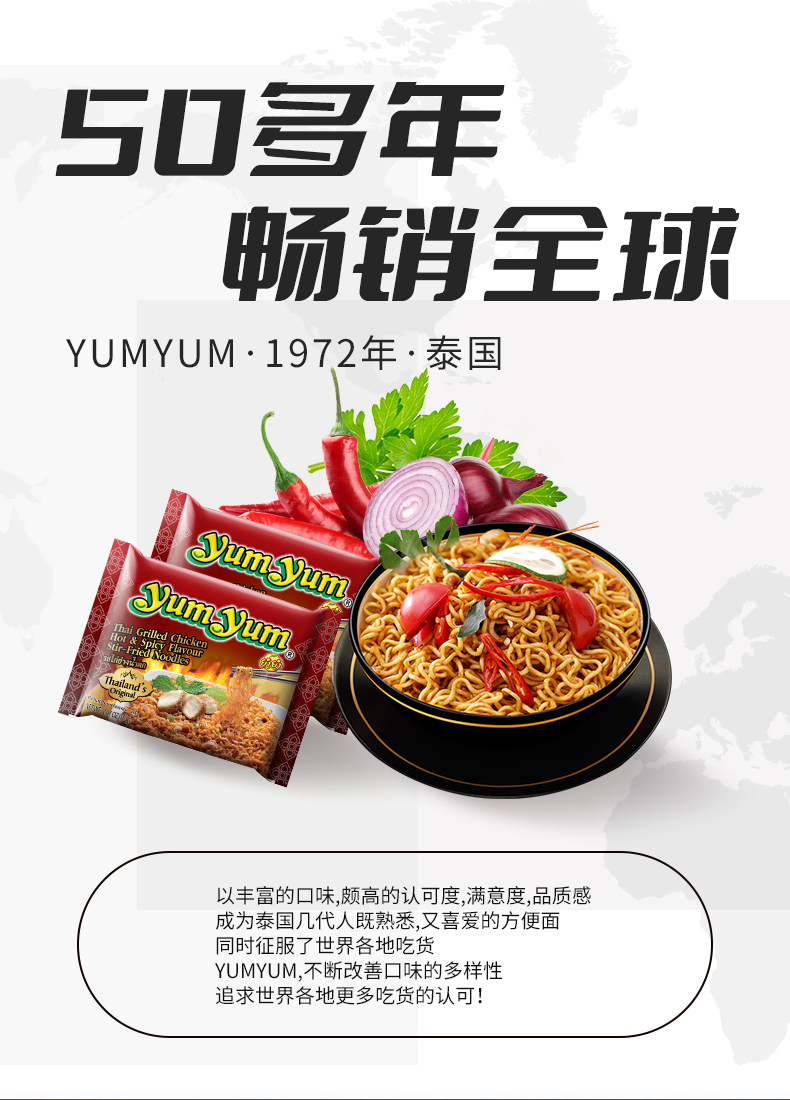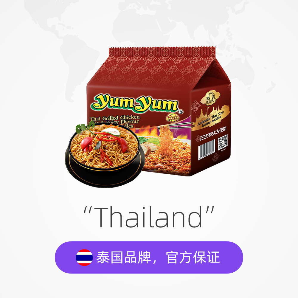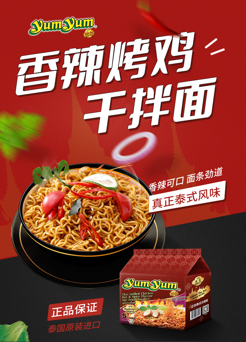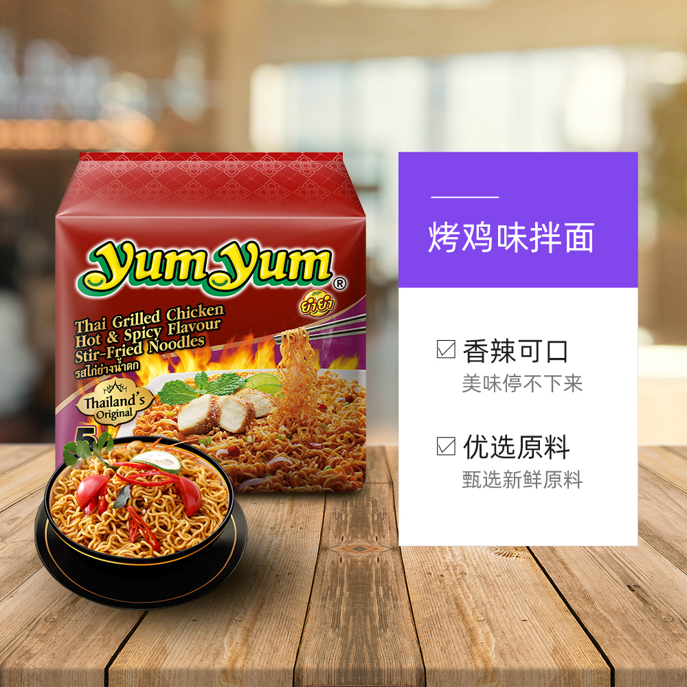 泰国进口养养yumyum泰式香辣烤鸡味干拌方便面350g速食品