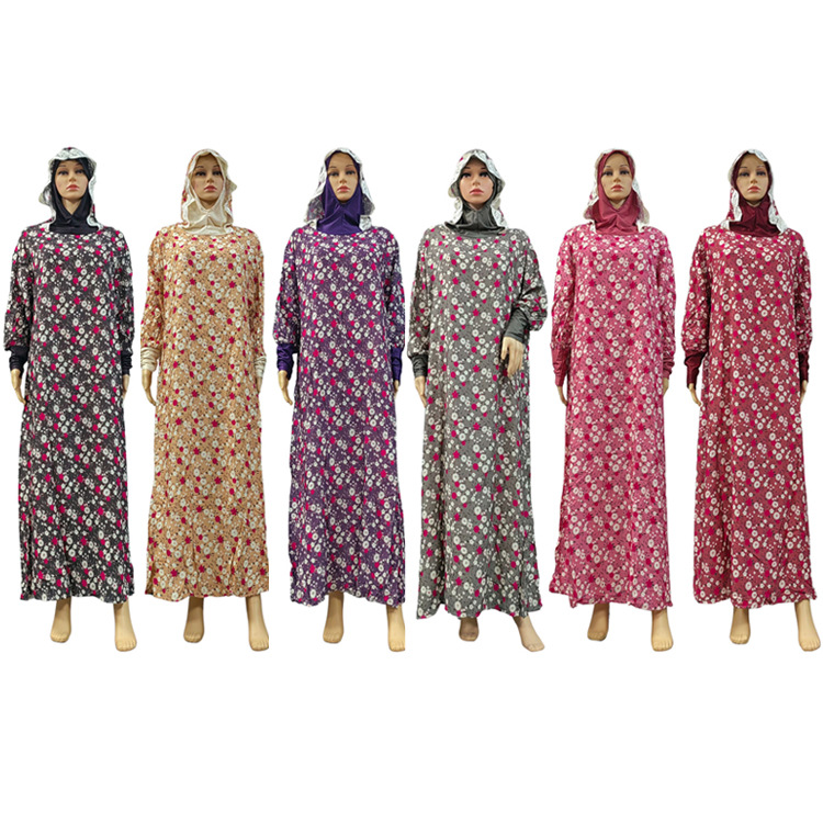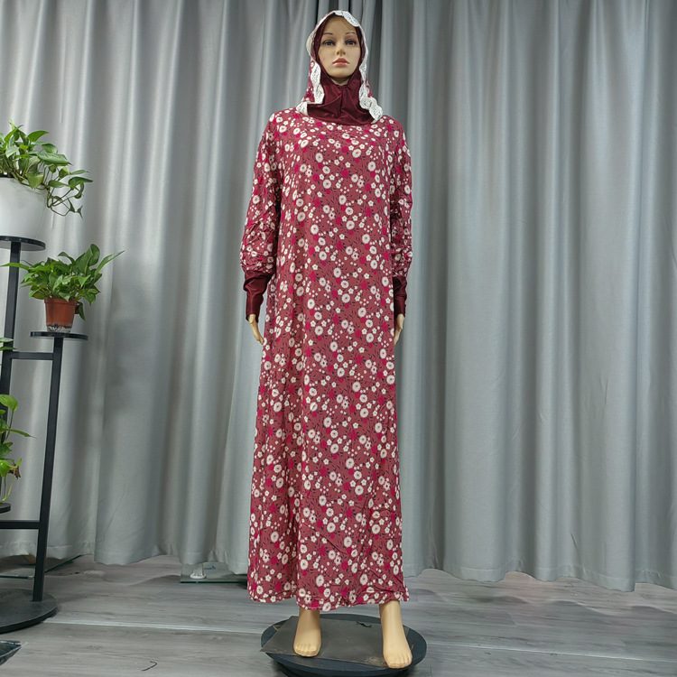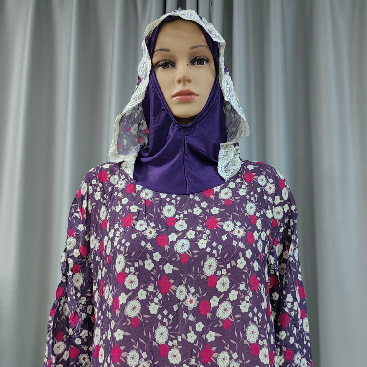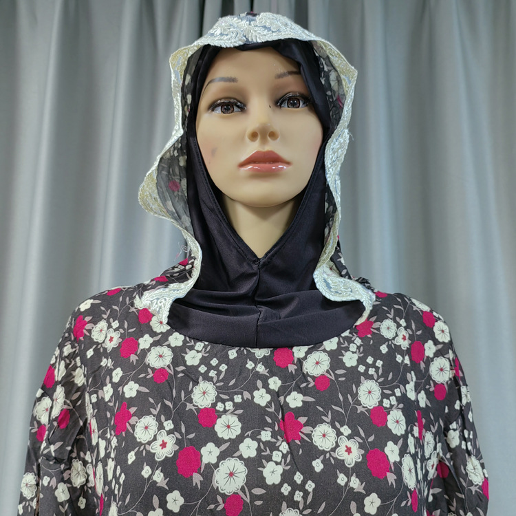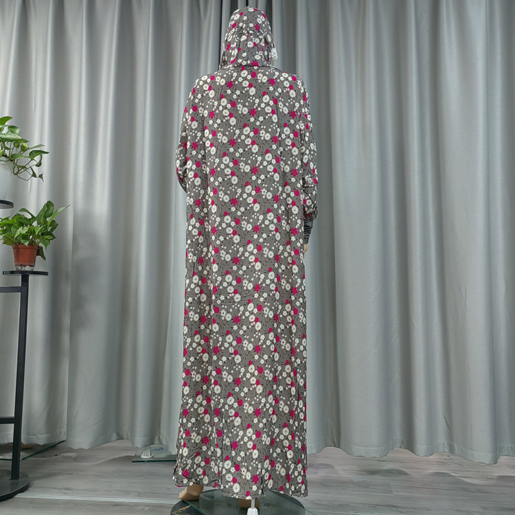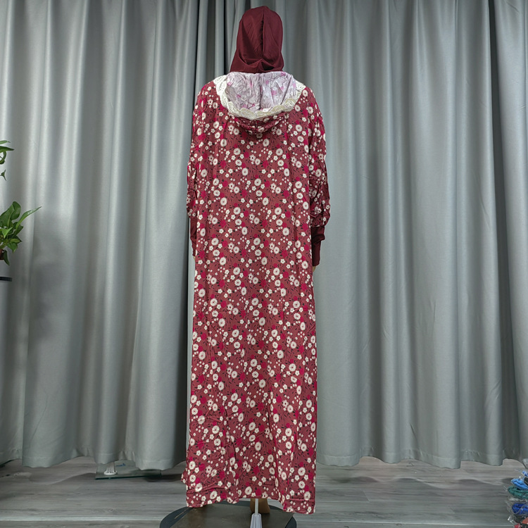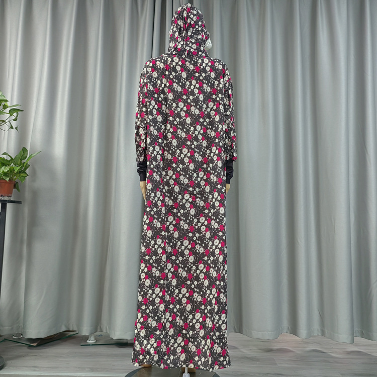 工厂直发中东传统花朵印花长袍时尚款双帽花边连帽