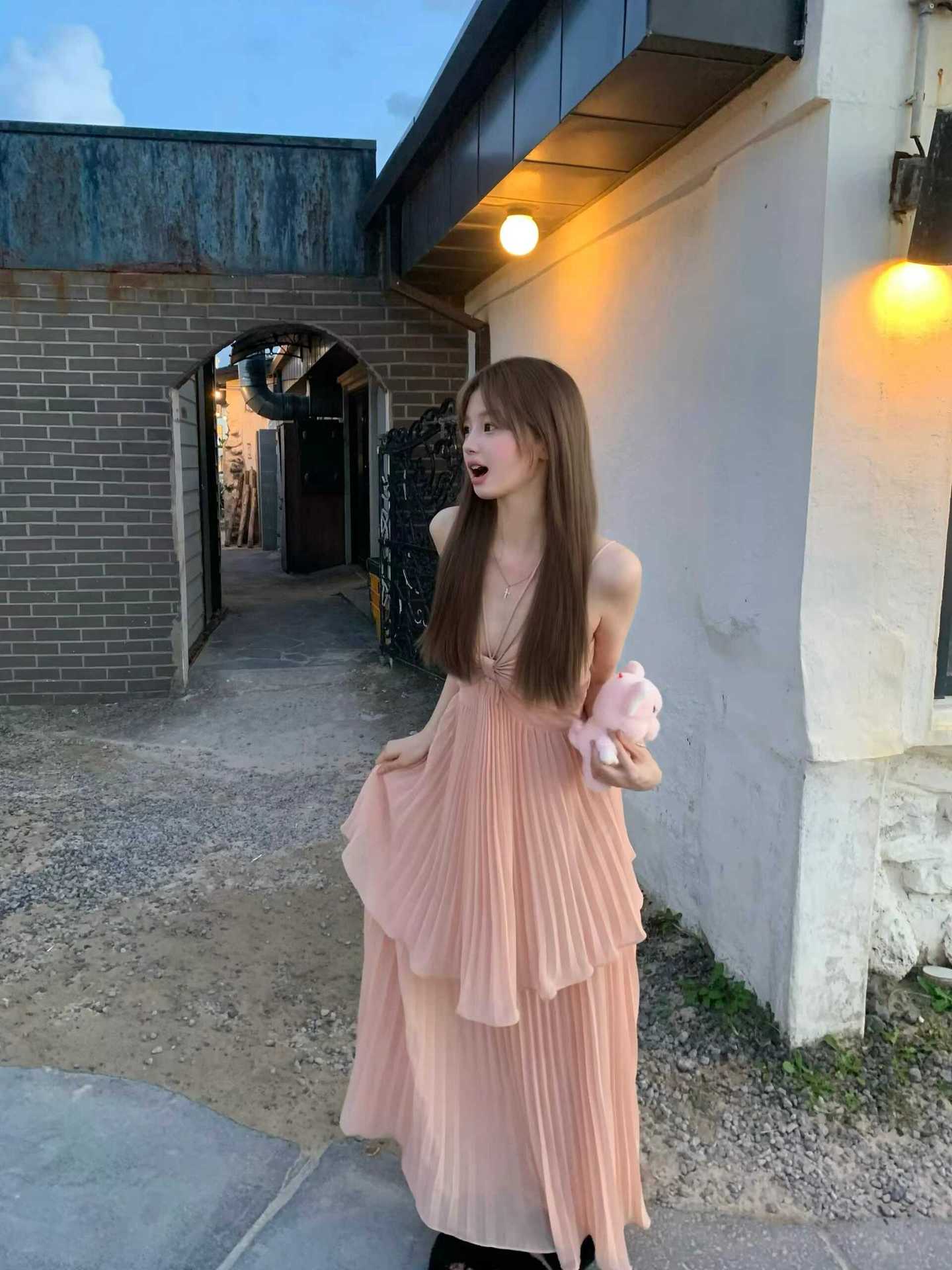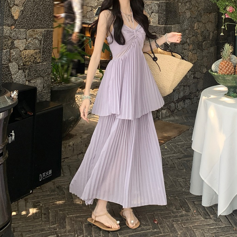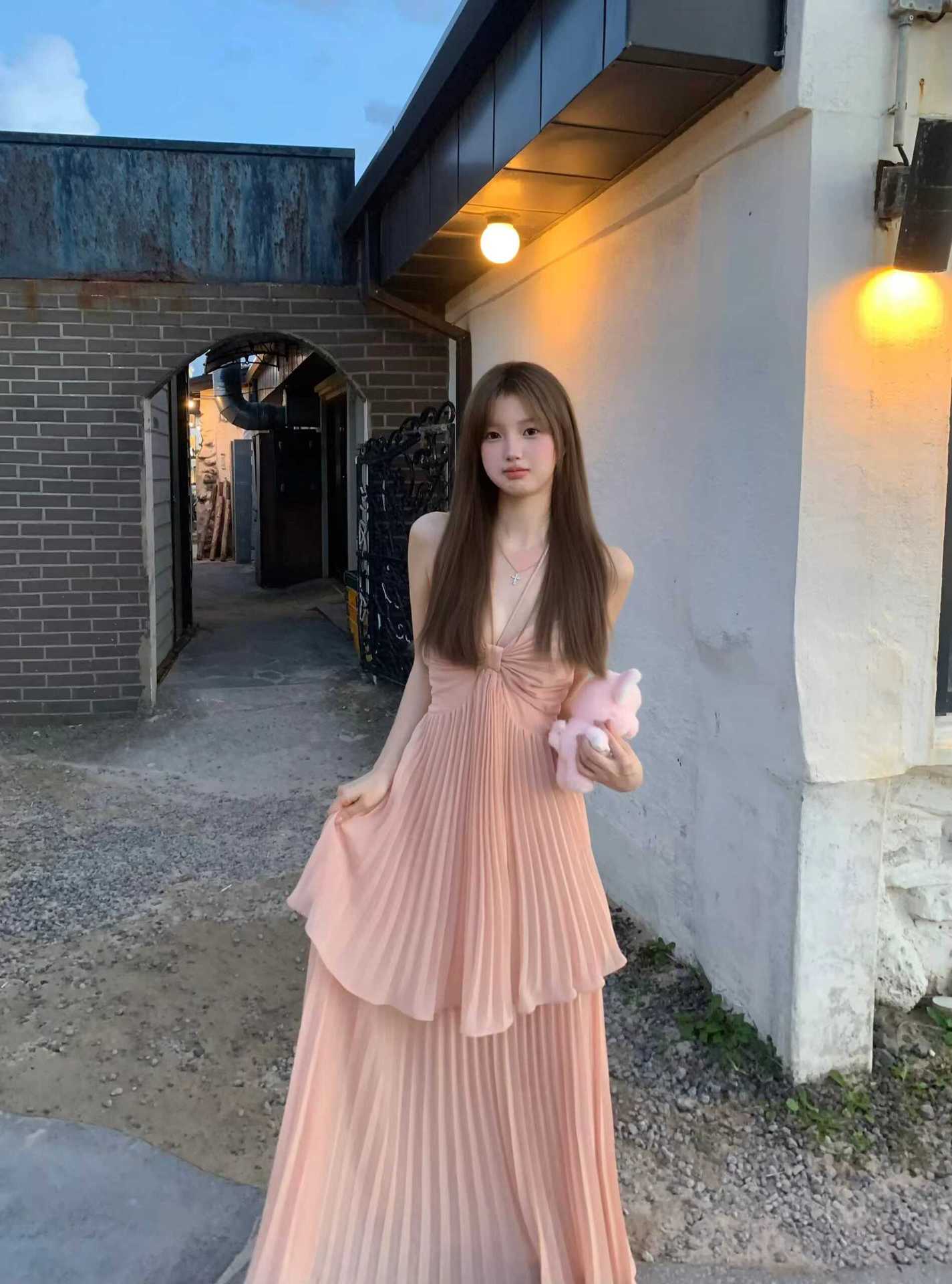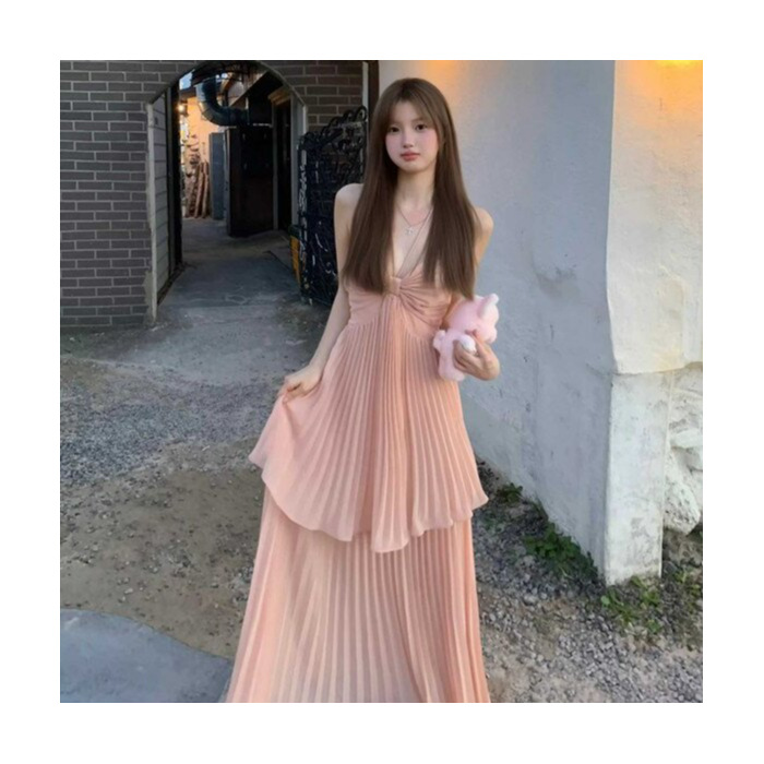 法式甜辣性感挂脖吊带连衣裙女神范气质高级感海边度假风长裙夏装