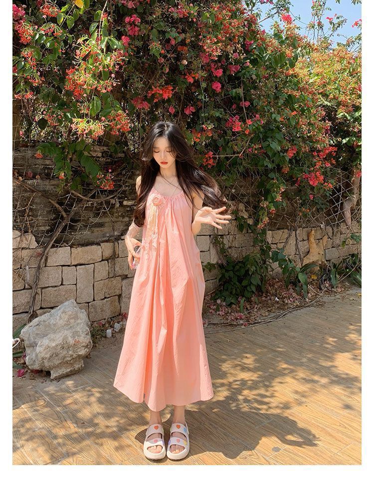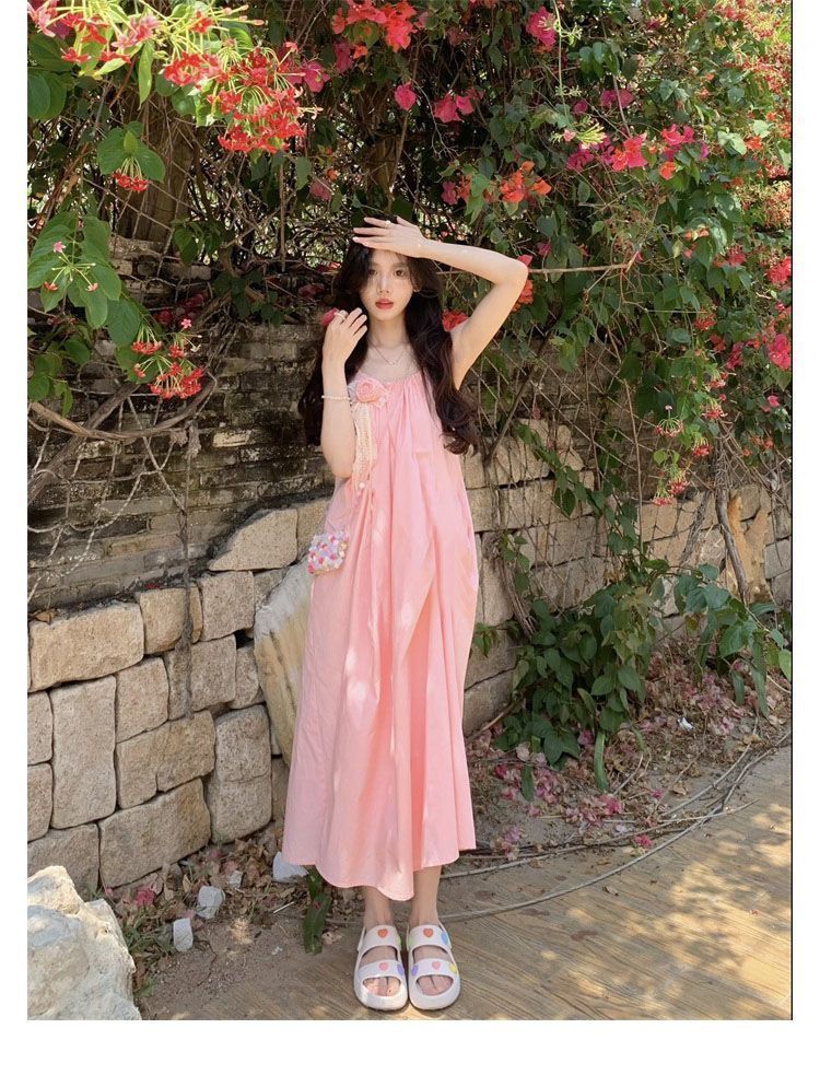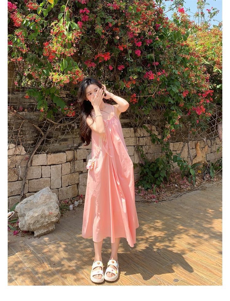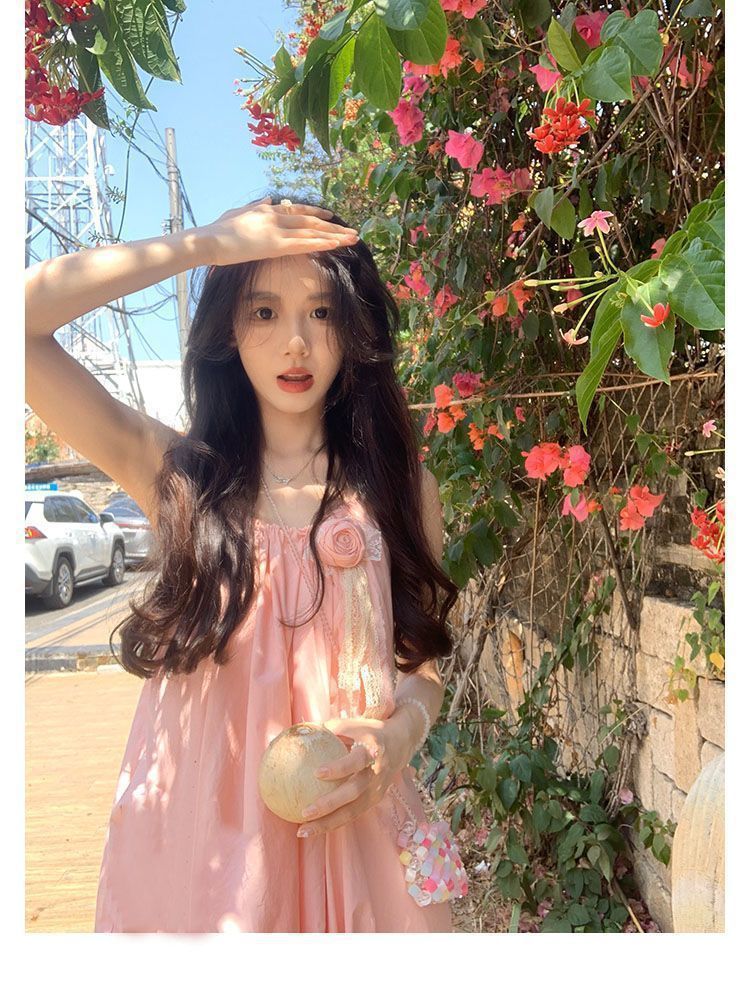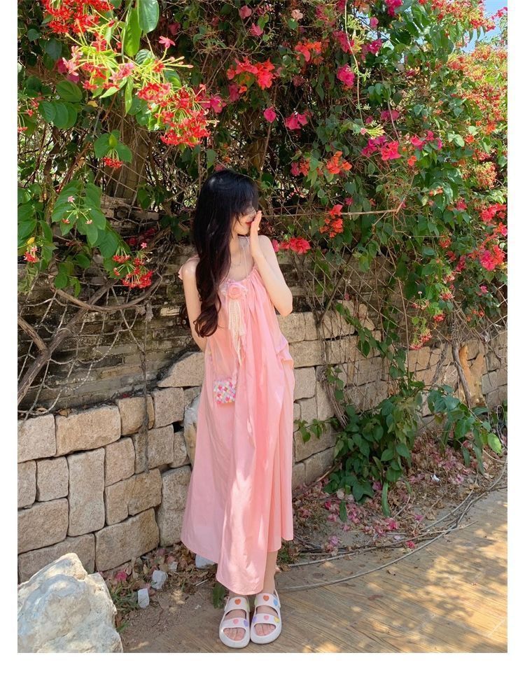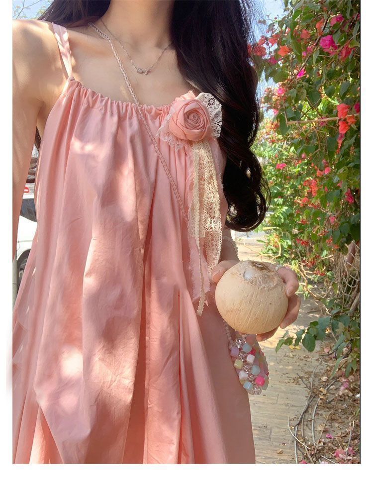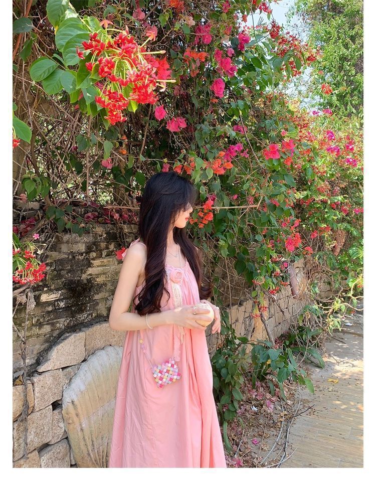 粉色法式茶歇吊带连衣裙女夏季甜美气质温柔风海边度假沙滩长裙子