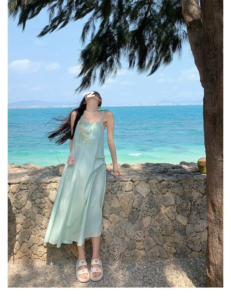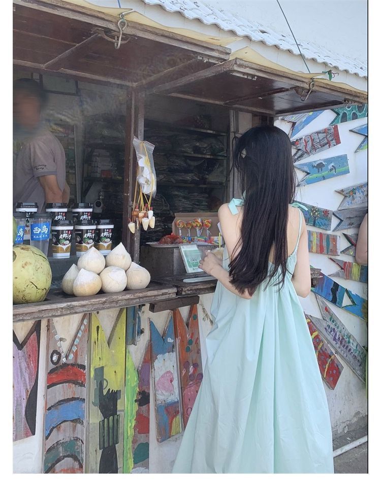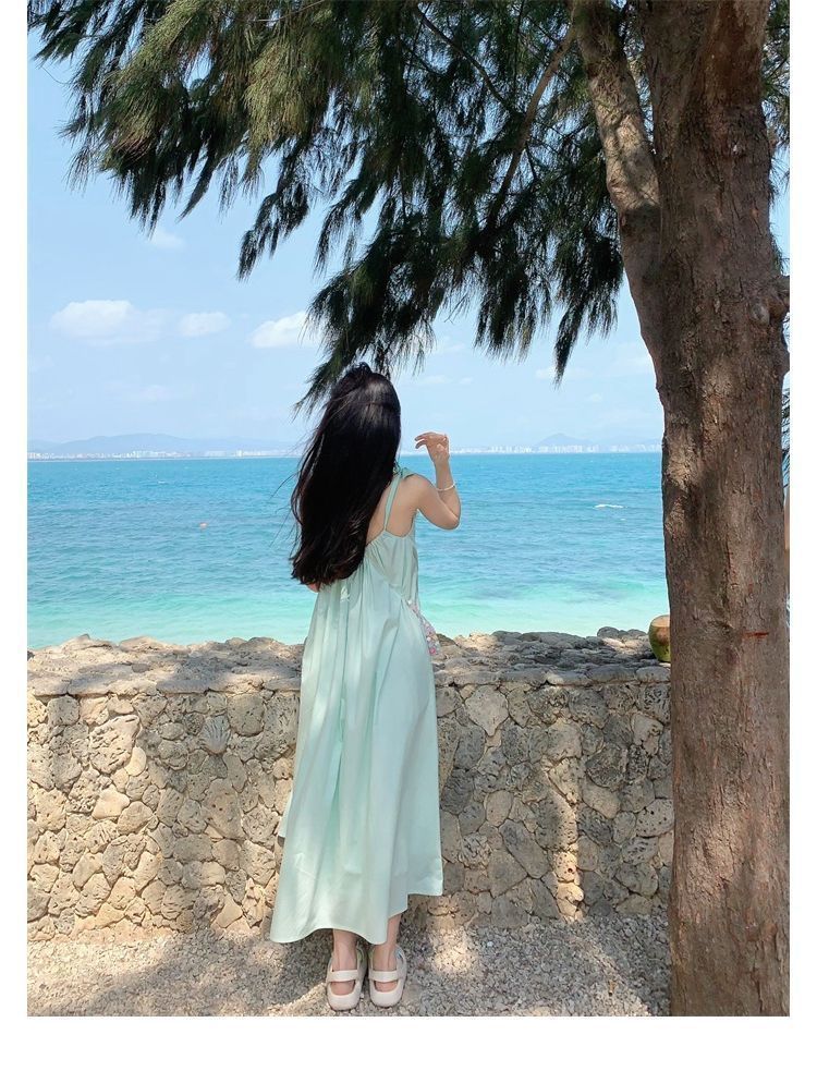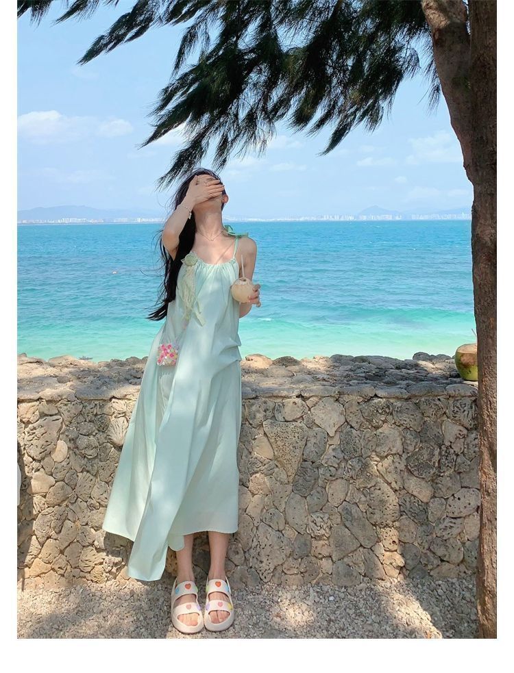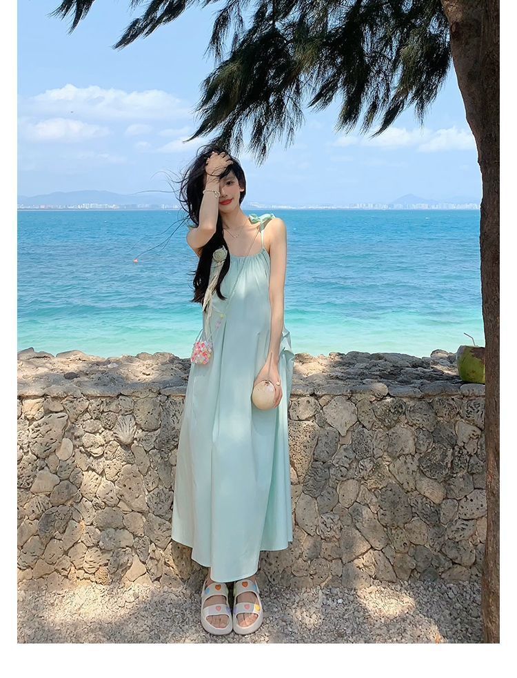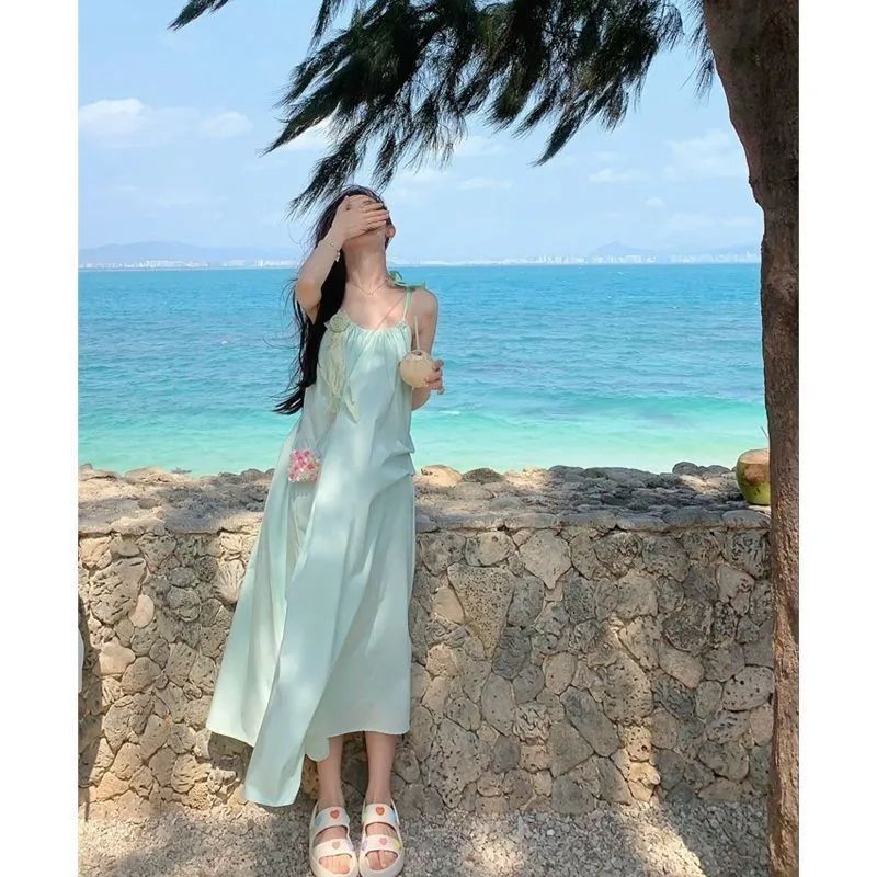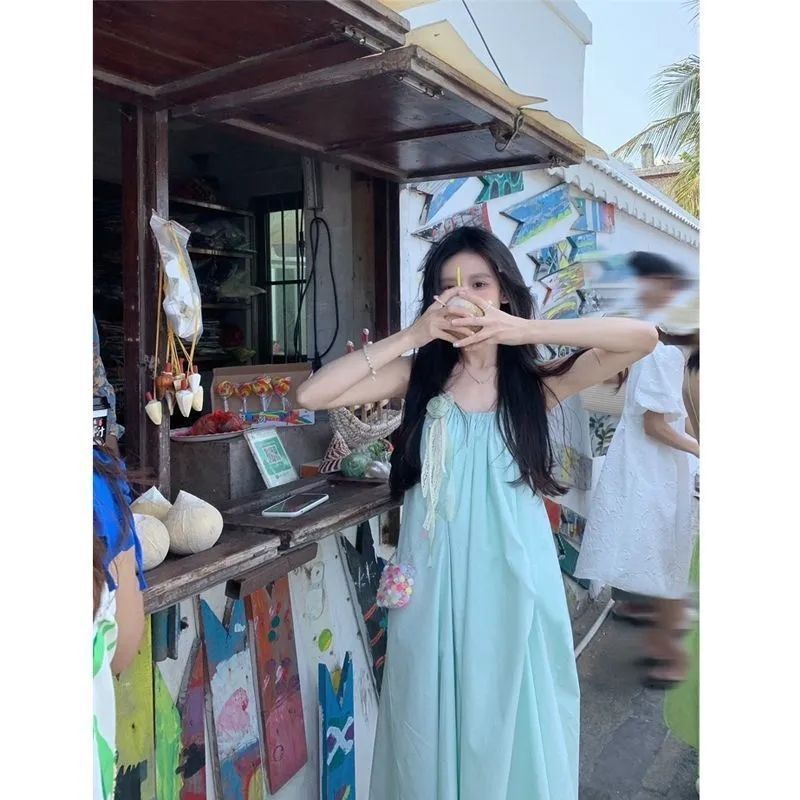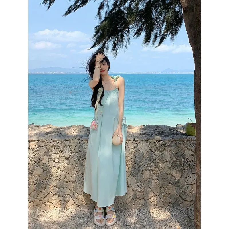 粉色法式茶歇吊带连衣裙女夏季甜美气质温柔风海边度假沙滩长裙子
