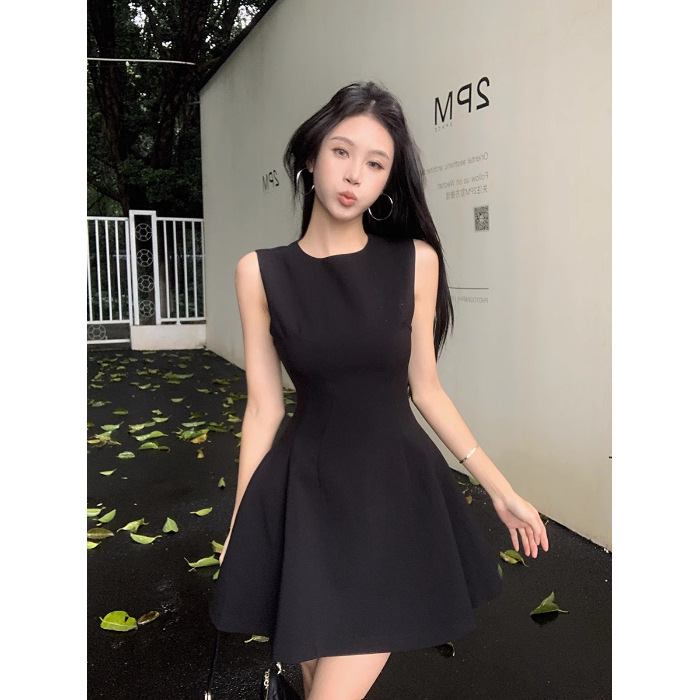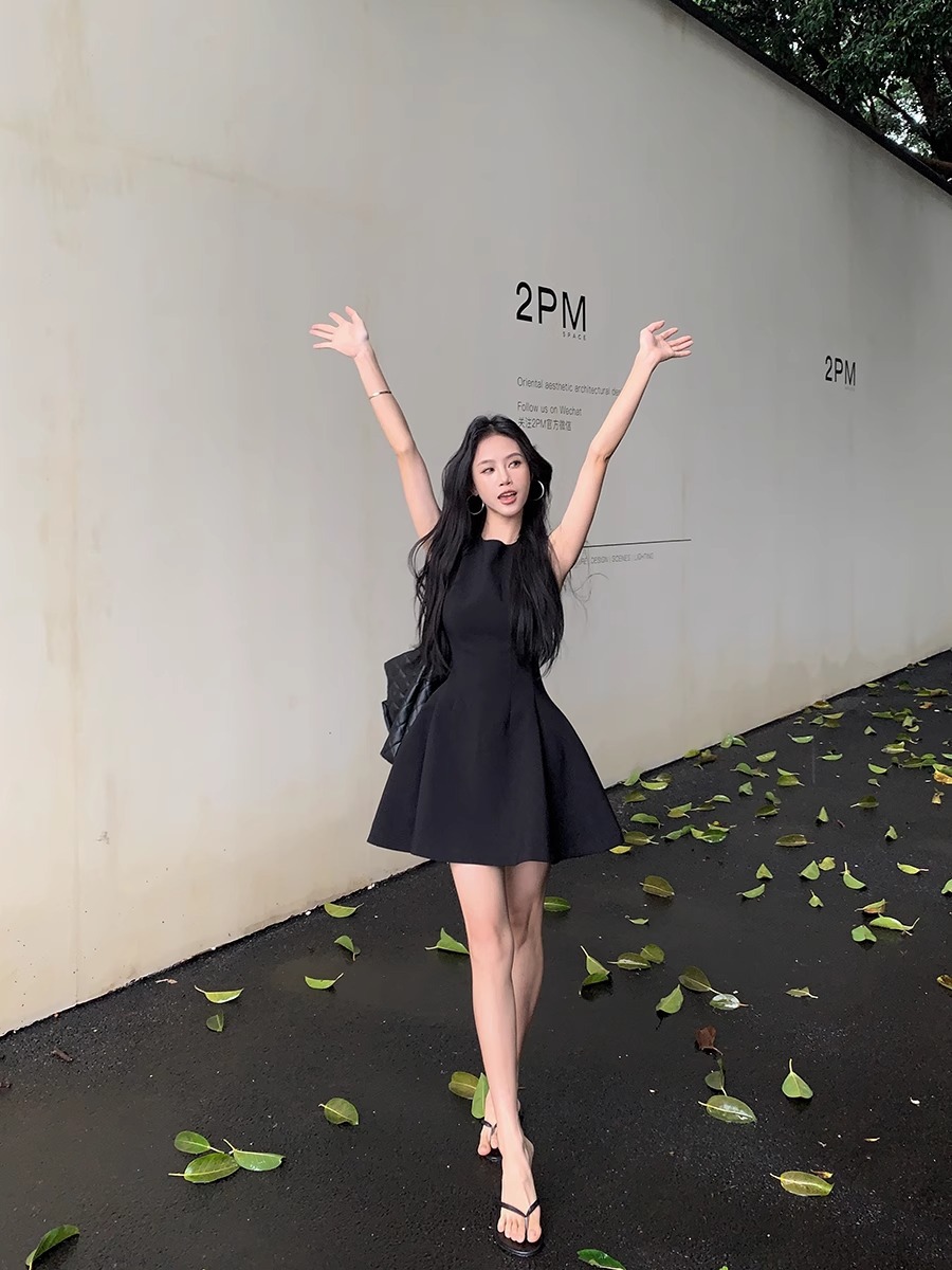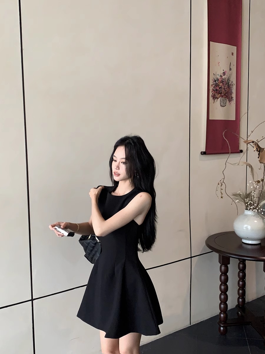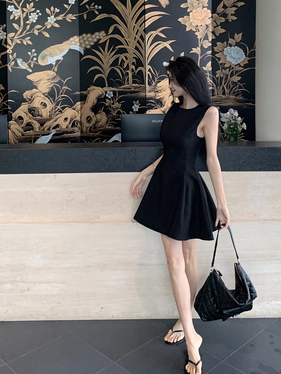 法式气质黑色无袖连衣裙子女2025新款夏季穿搭小个子收腰显瘦短裙