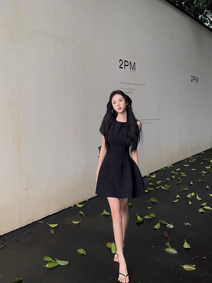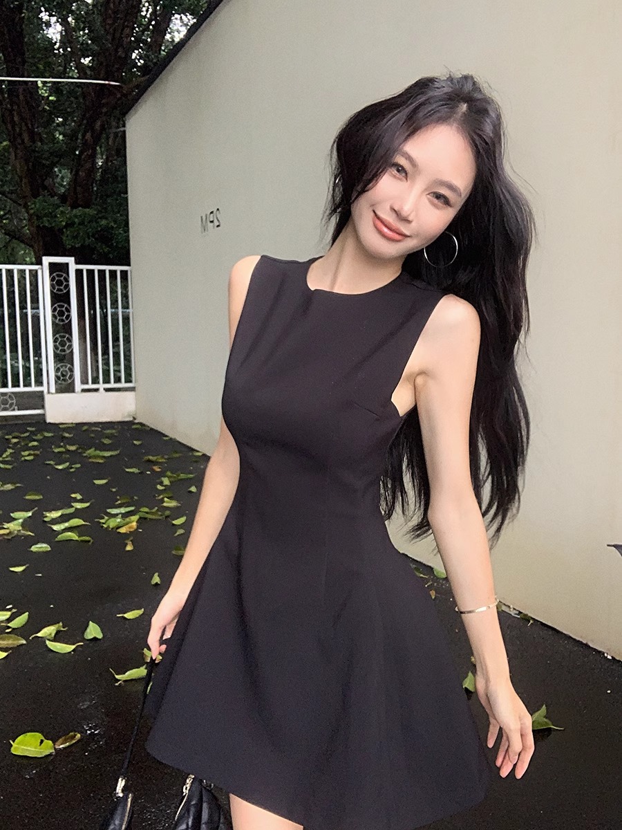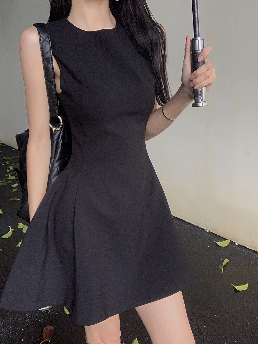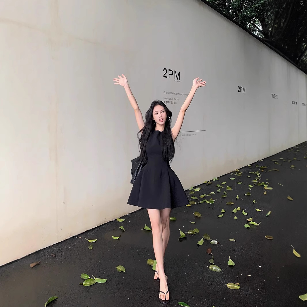 法式气质黑色无袖连衣裙子女2025新款夏季穿搭小个子收腰显瘦短裙