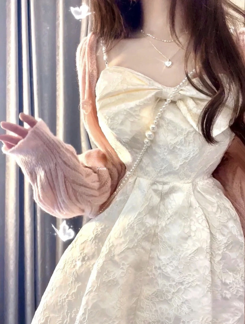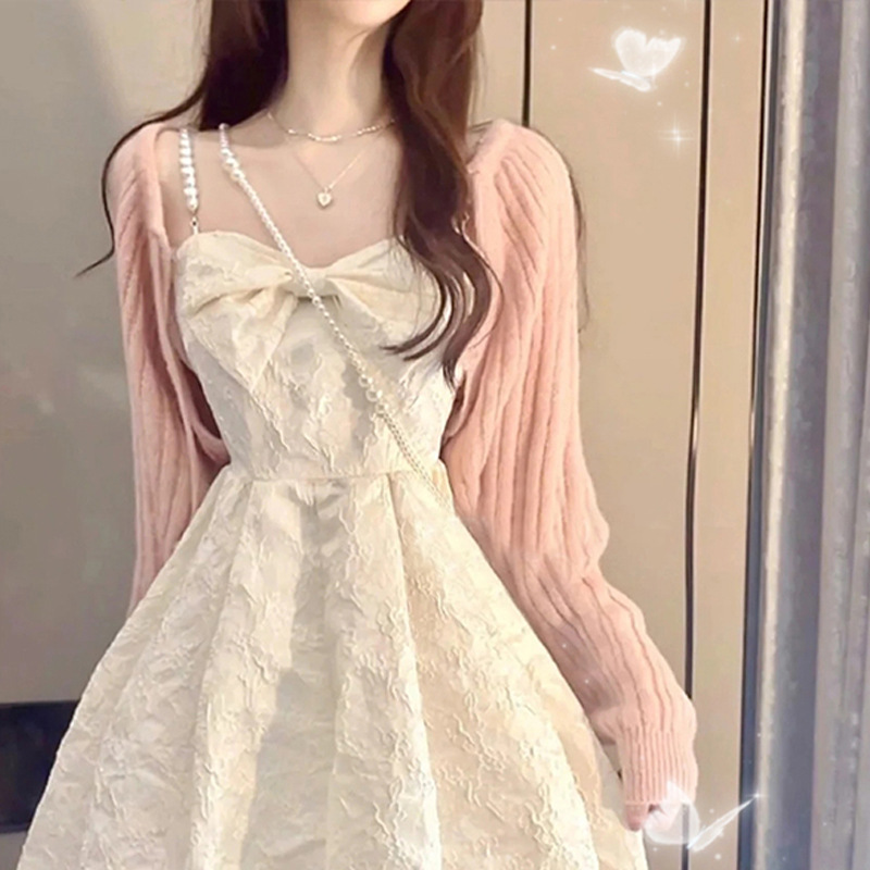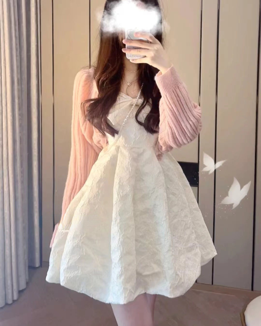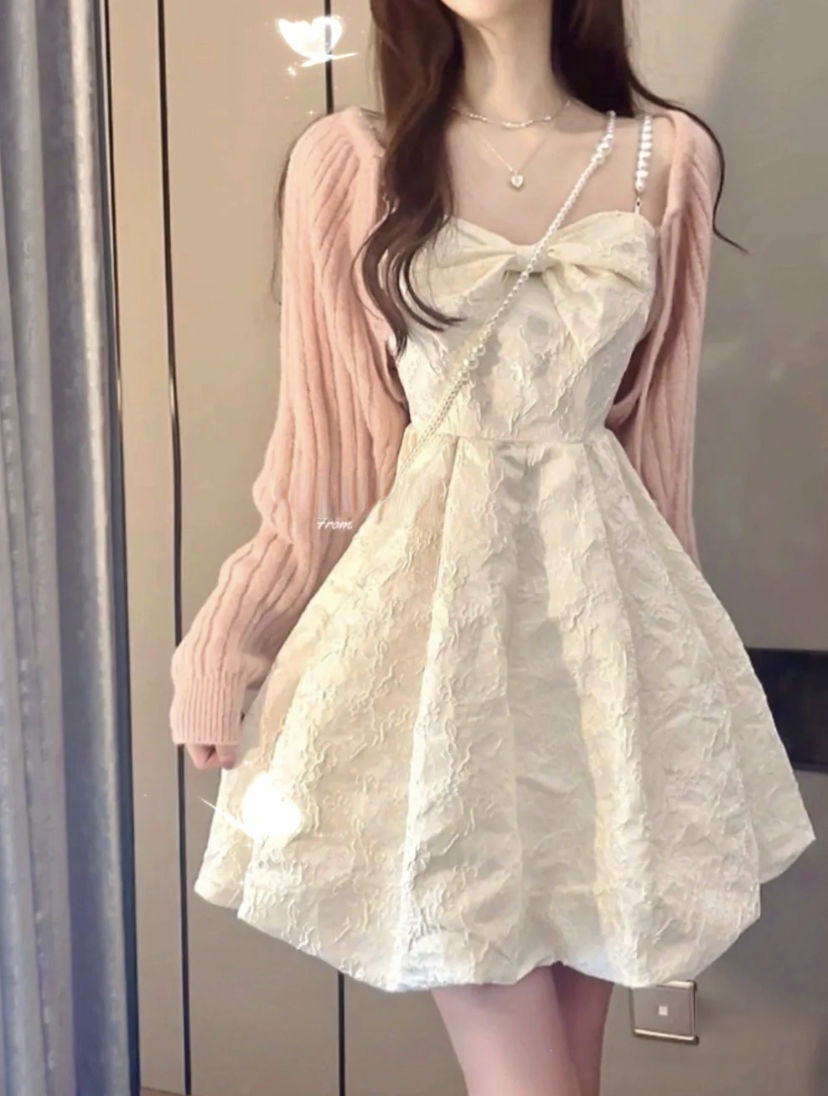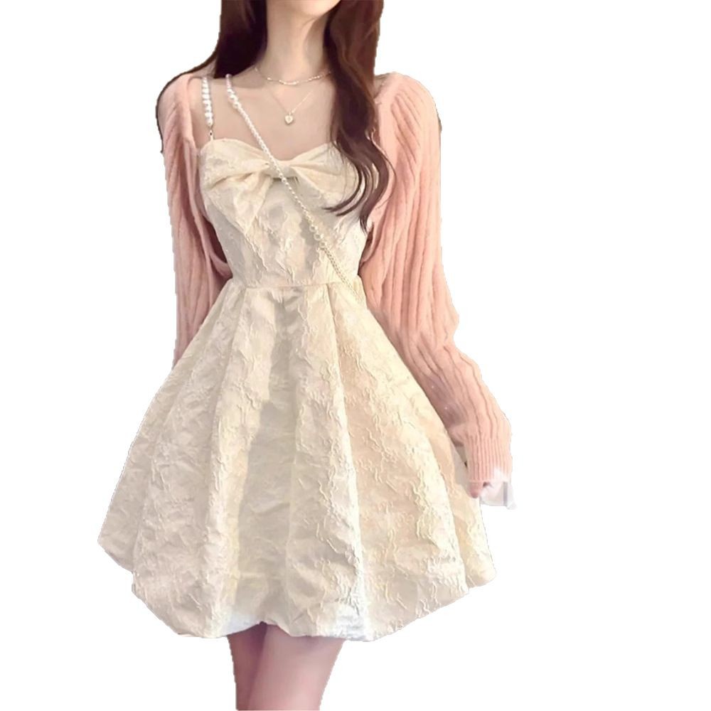 初恋白月光吊带连衣裙开衫套装开春穿搭小个子甜妹白色公主蓬蓬裙