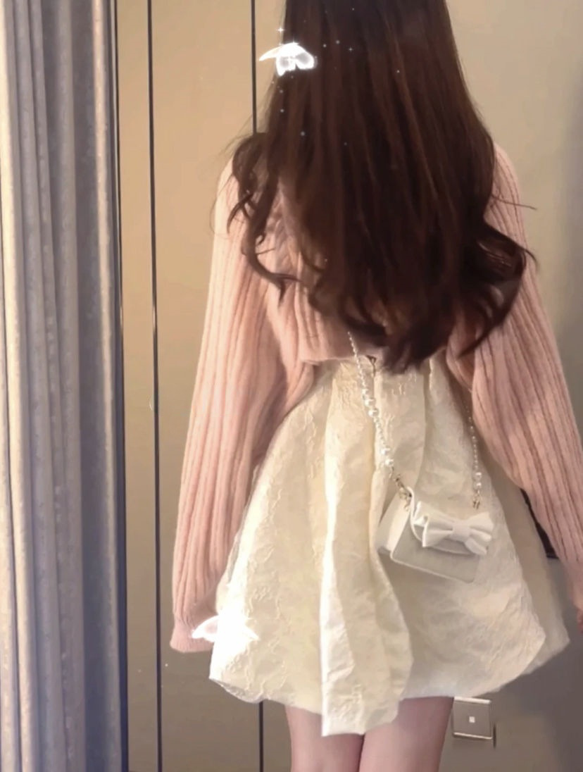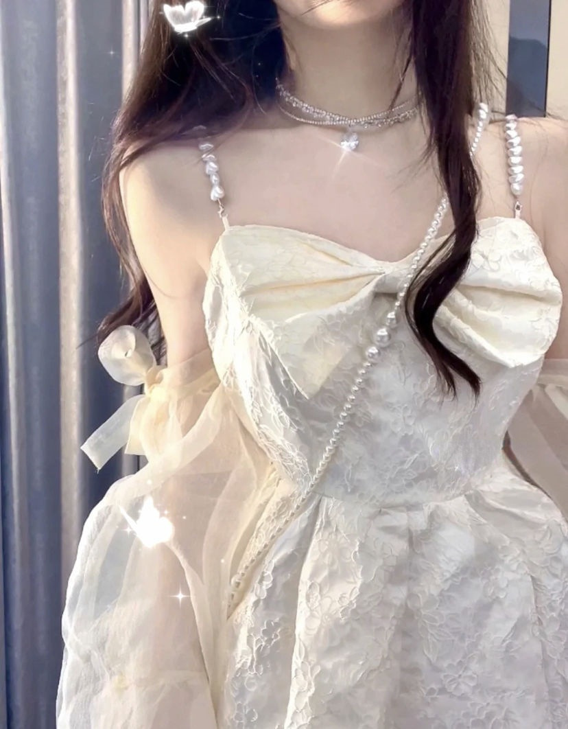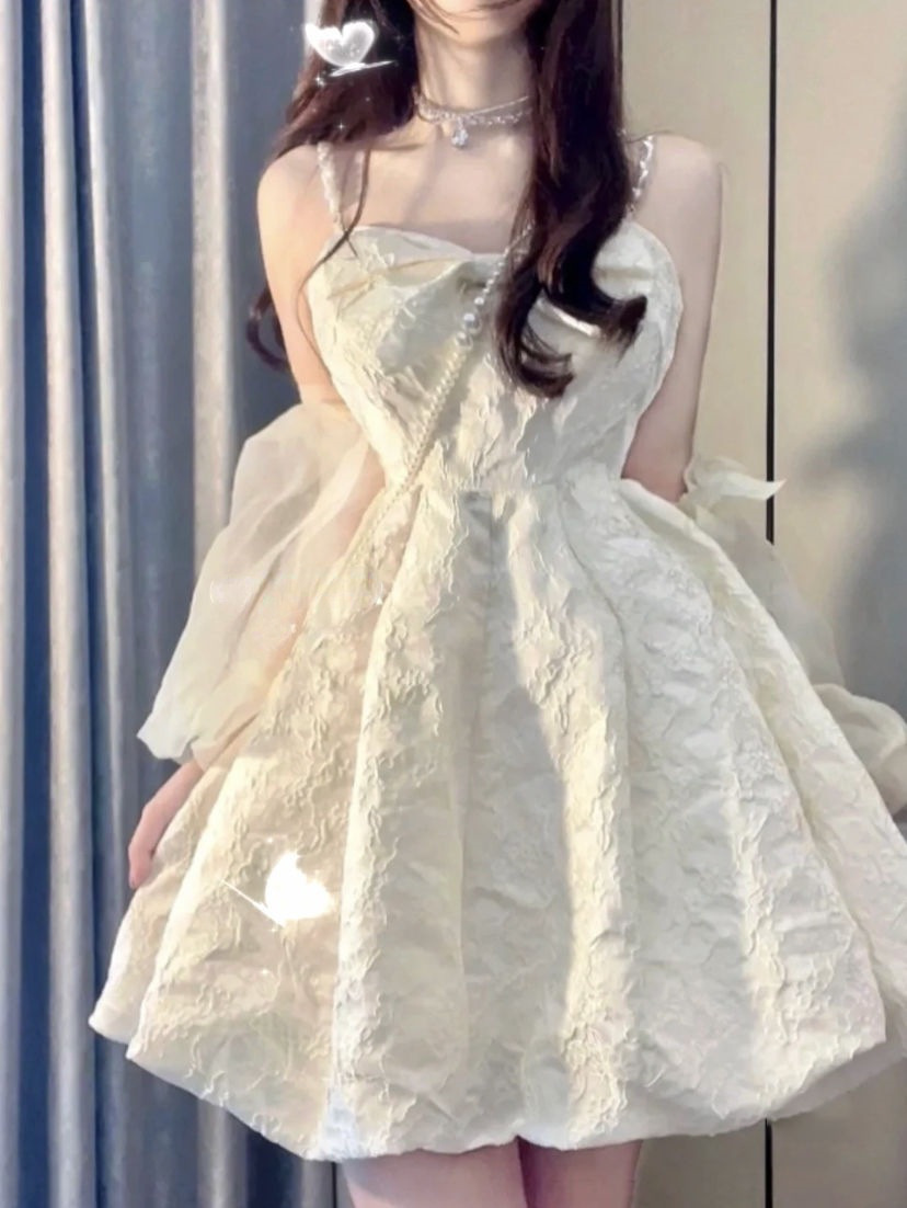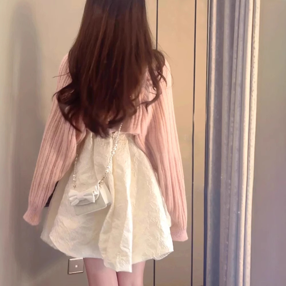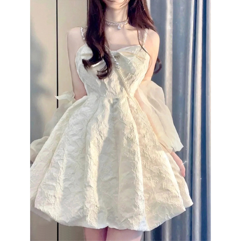 初恋白月光吊带连衣裙开衫套装开春穿搭小个子甜妹白色公主蓬蓬裙
