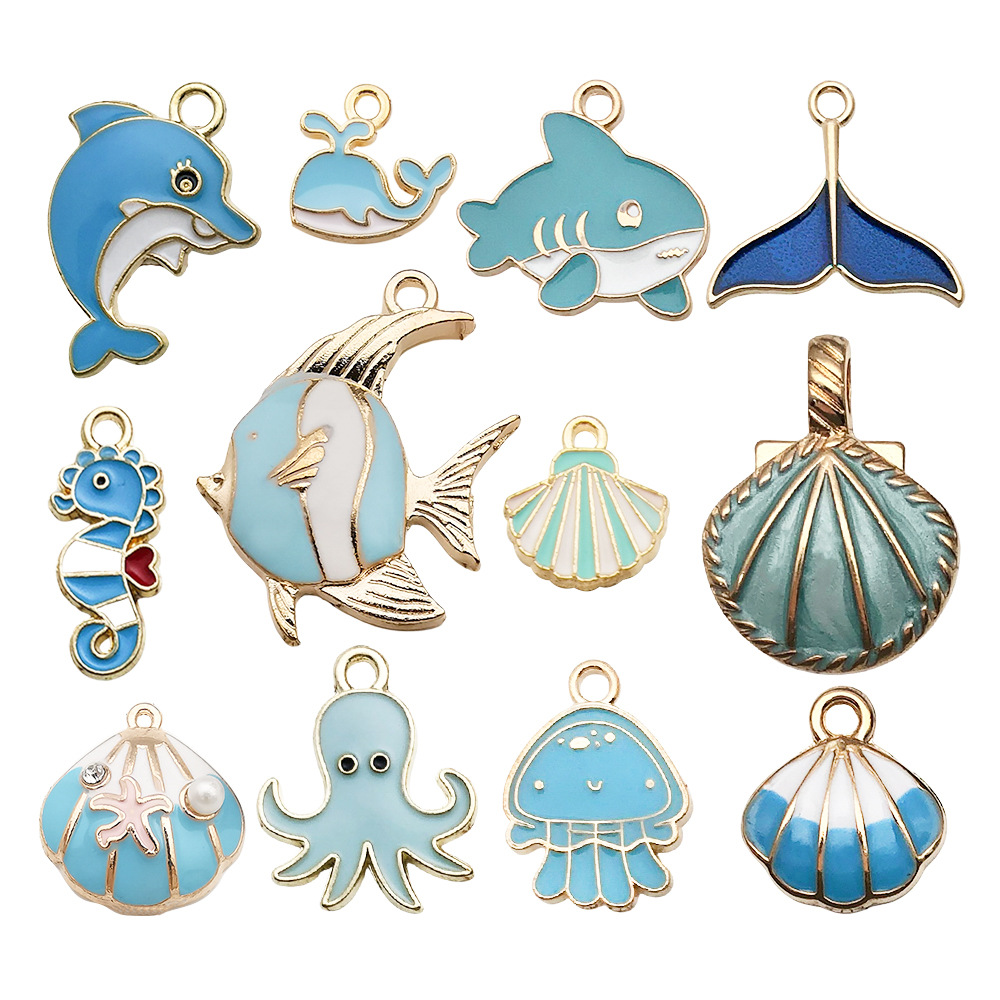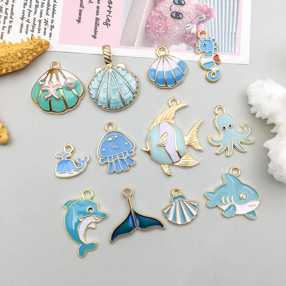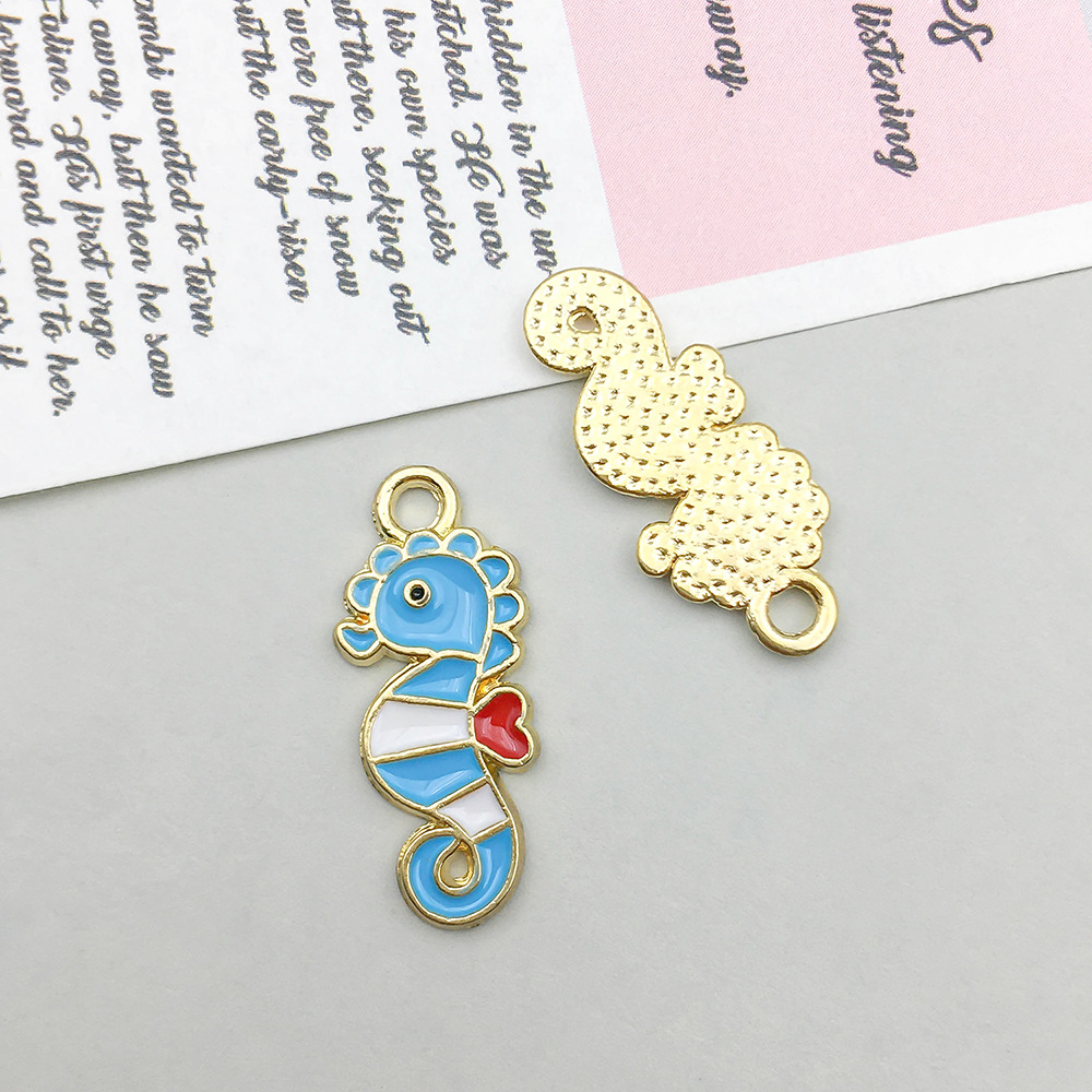 1个新款湖蓝色滴油合金海洋鲸鱼海马系列吊坠挂件diy手链饰品配件