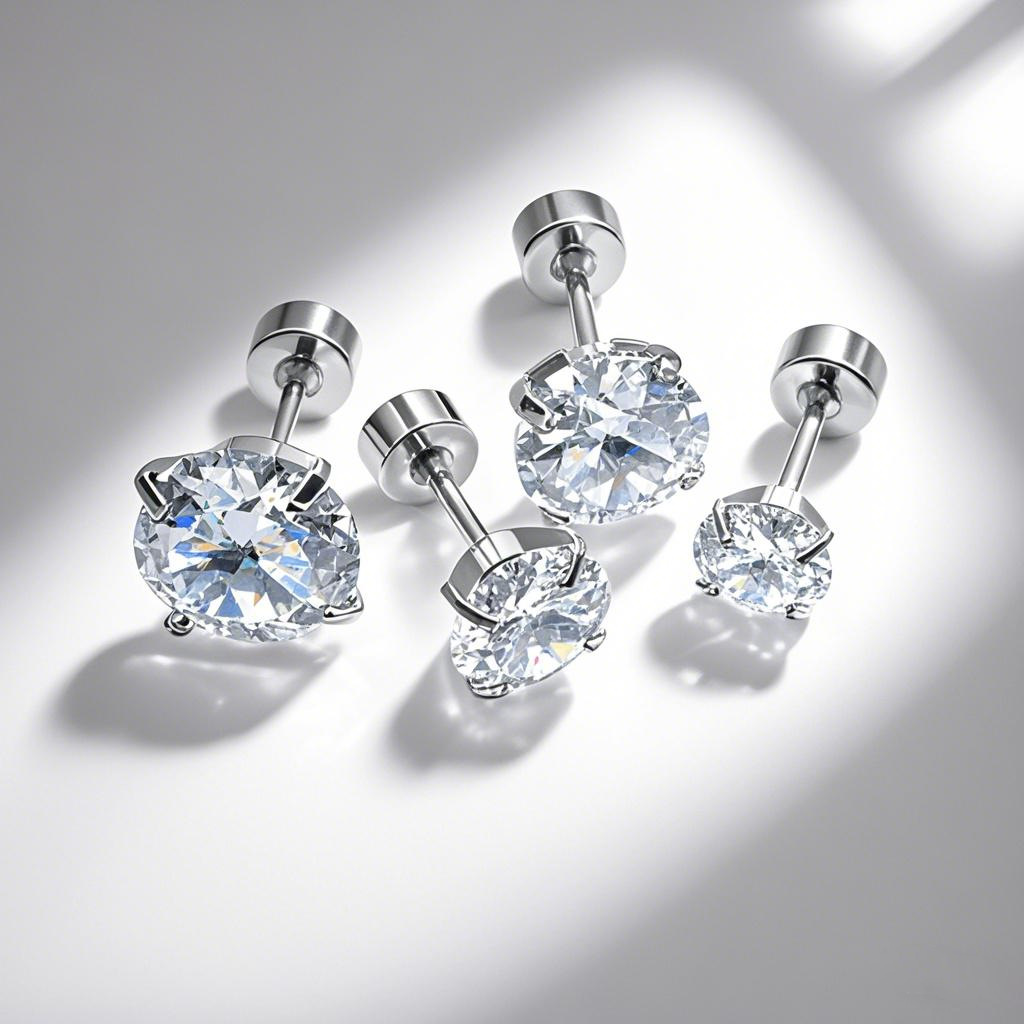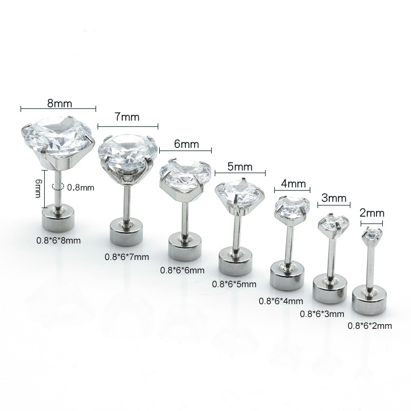 钛钢四爪锆石耳钉 极简耳骨钉 小清新单颗小钻不锈钢防敏耳饰耳扣