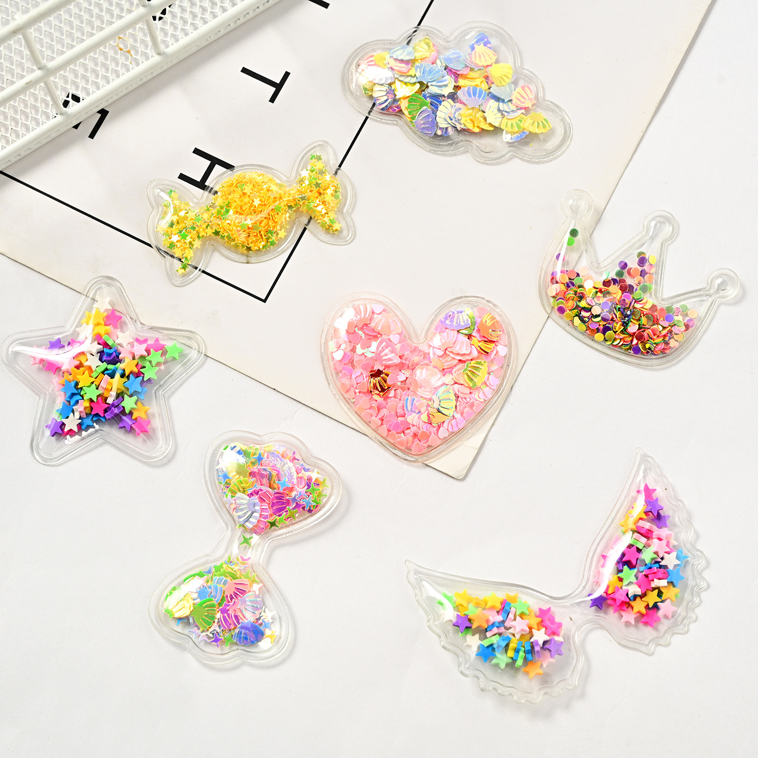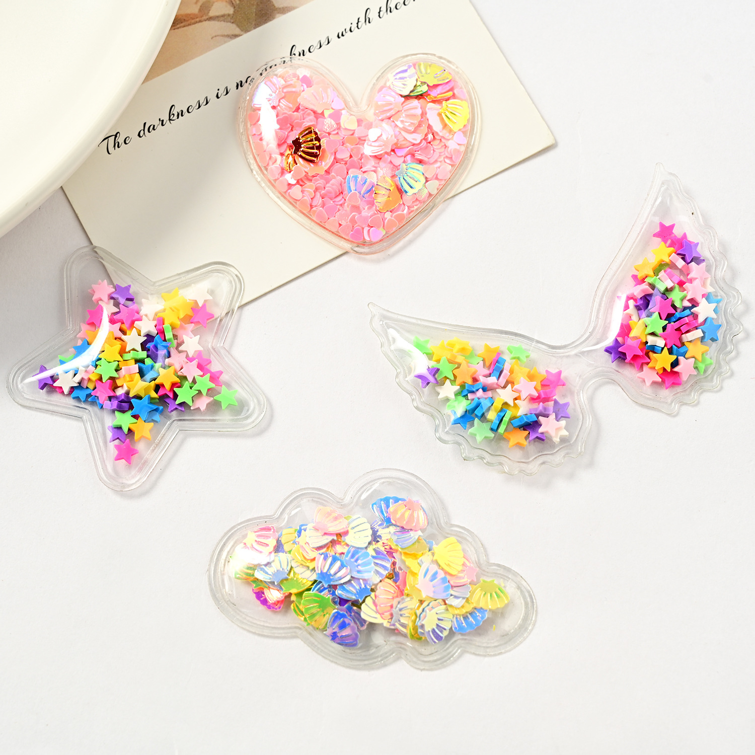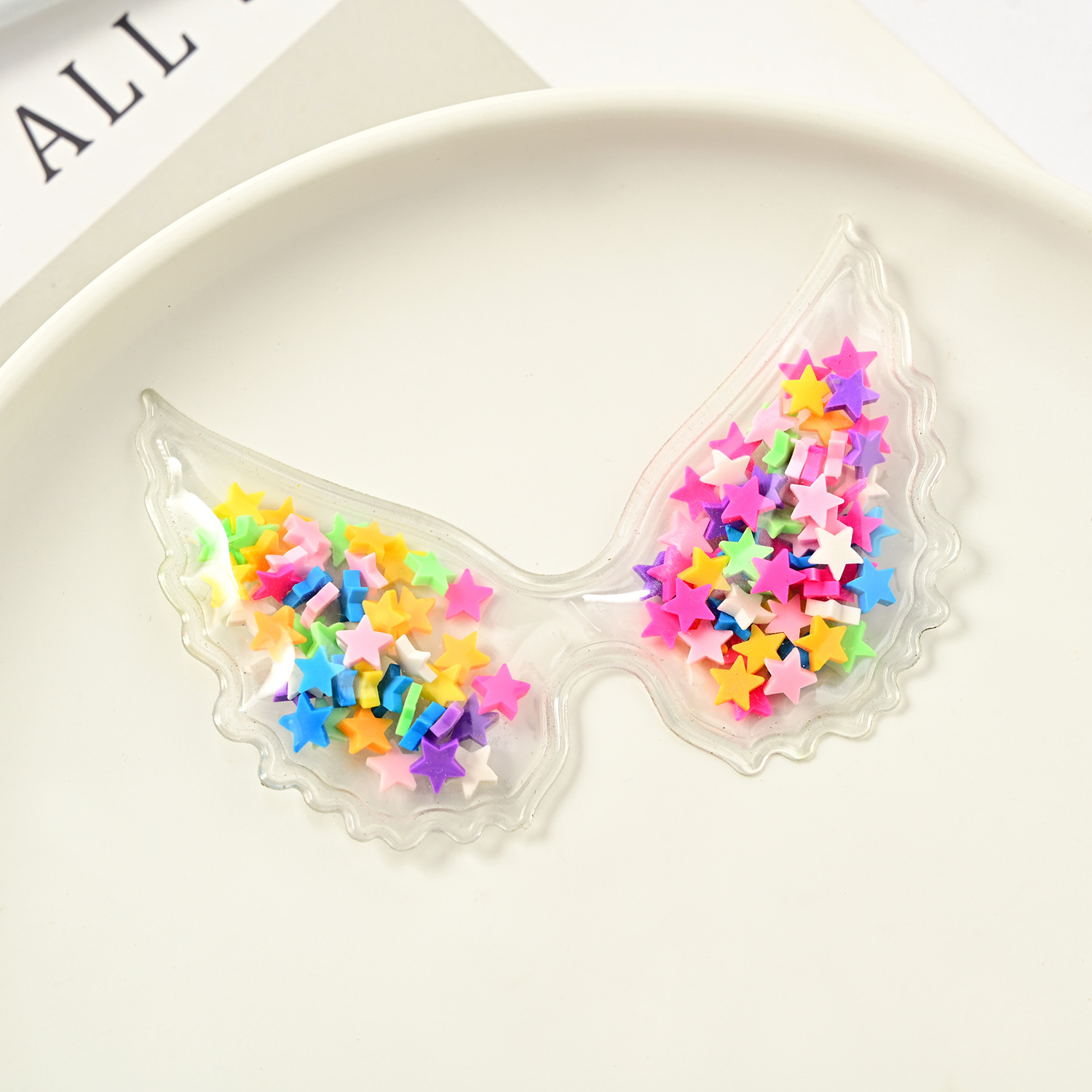 流沙天使翅膀发夹配件 PVC透明亮片蝴蝶结儿童发饰配件饰品配件