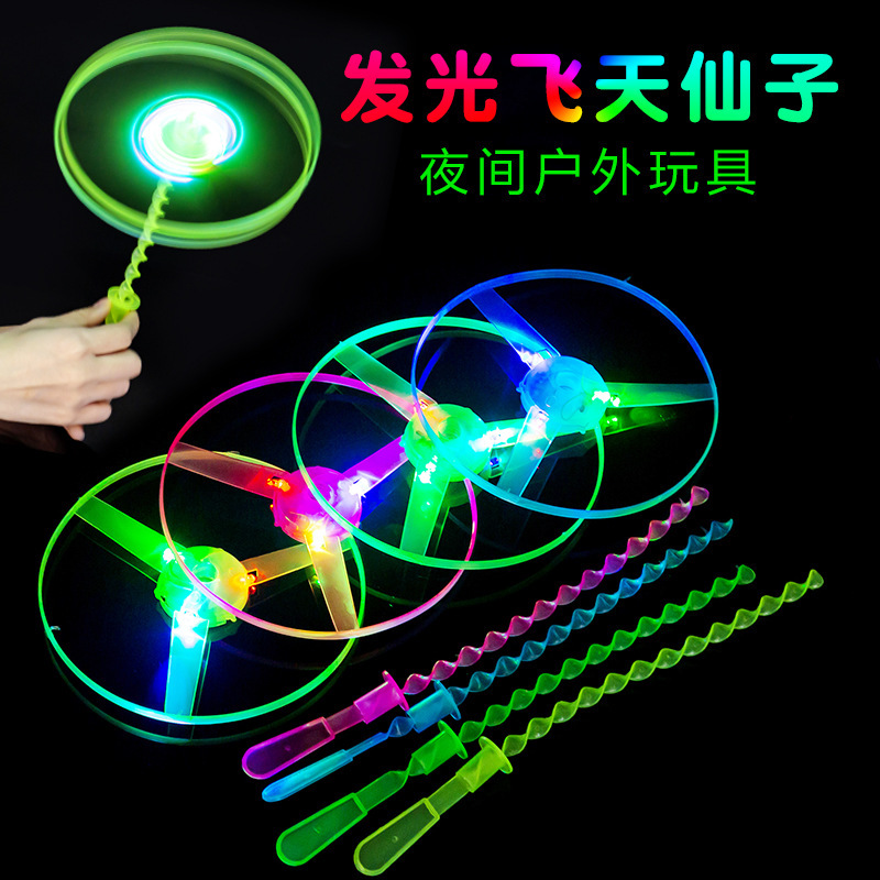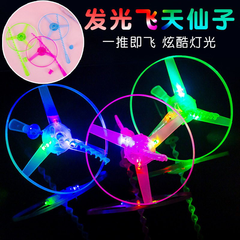 发光手推飞碟 发光飞盘 闪光飞天仙子竹蜻蜓儿童经典玩具厂家批发
