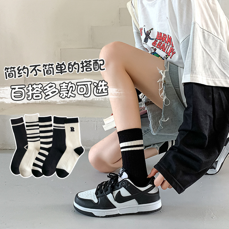 长筒袜女夏天薄款棉袜外穿条纹运动中筒百搭秋冬横条纹白色潮袜