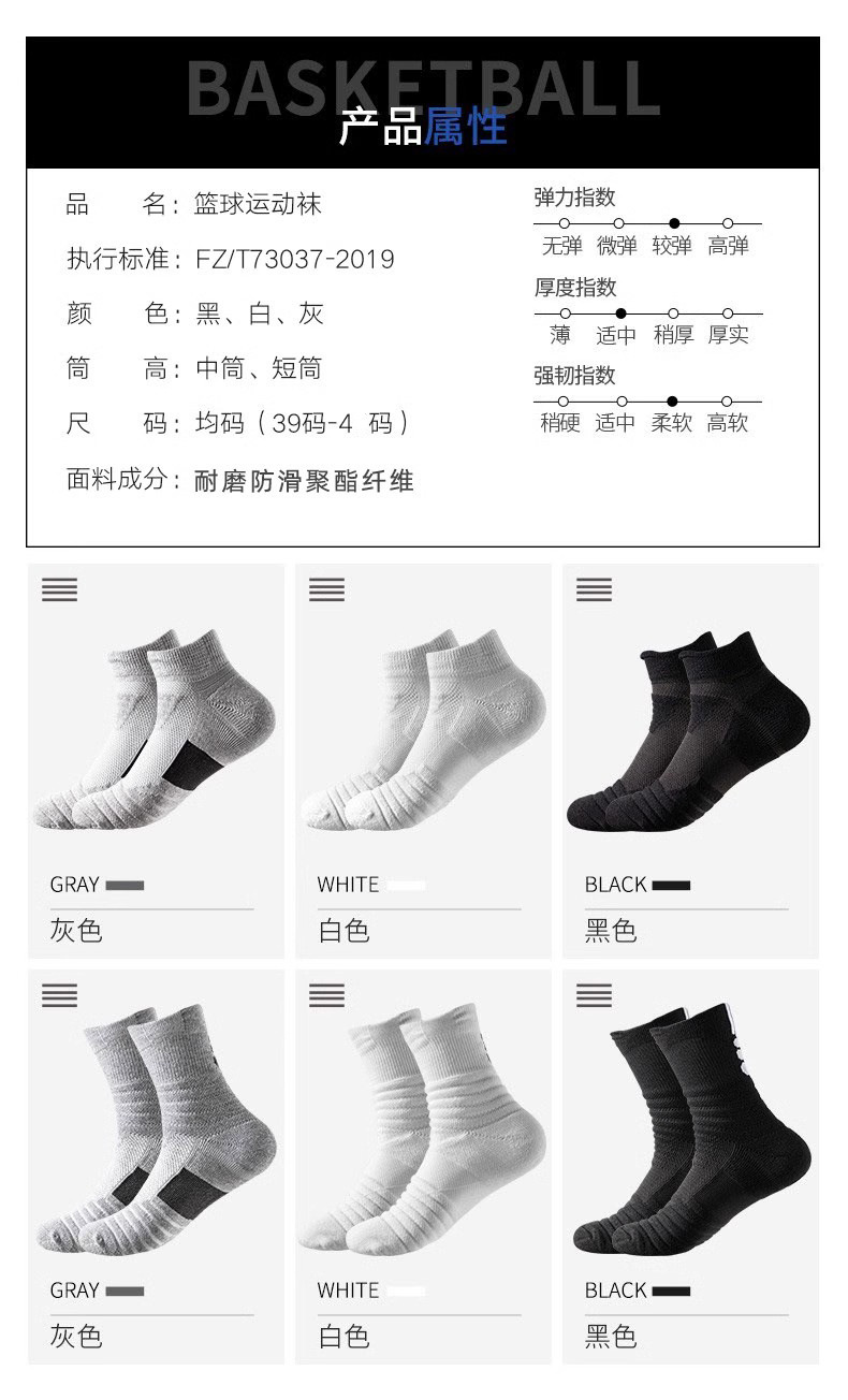 大码长筒专业实战篮球袜跨境短筒跑步袜毛巾底减震高帮运动袜子