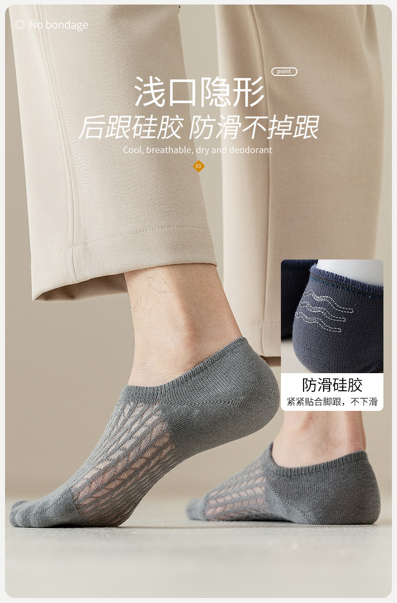 男士空调袜袜子男短袜夏季薄款棉吸汗透气网眼隐形不掉跟船袜男士