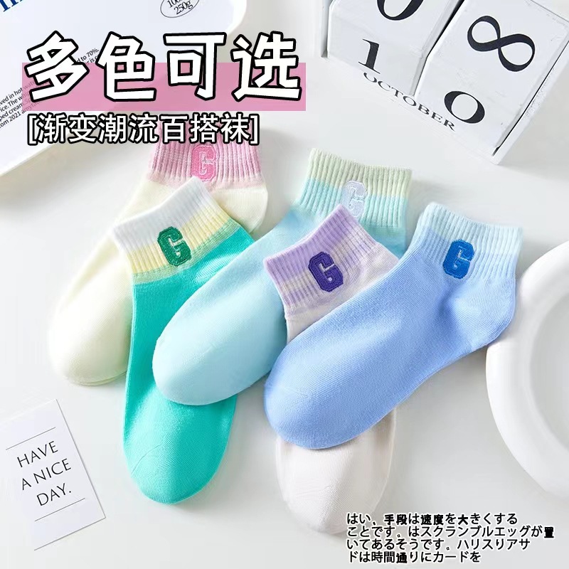 新款袜子女春夏季短筒浅口袜小清新字母c字休闲ins学院风运动船袜