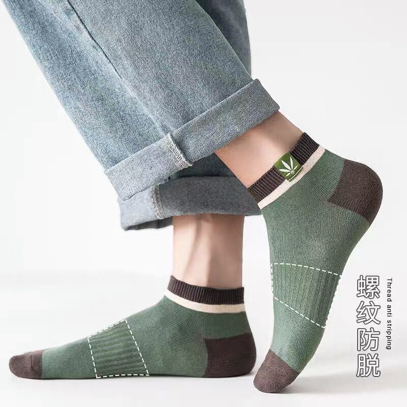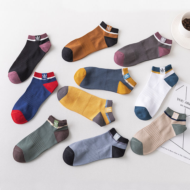 男士布标短筒袜子吸汗春夏季棉袜十色枫叶船袜低帮运动男袜ins潮