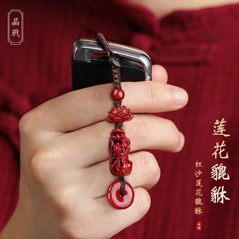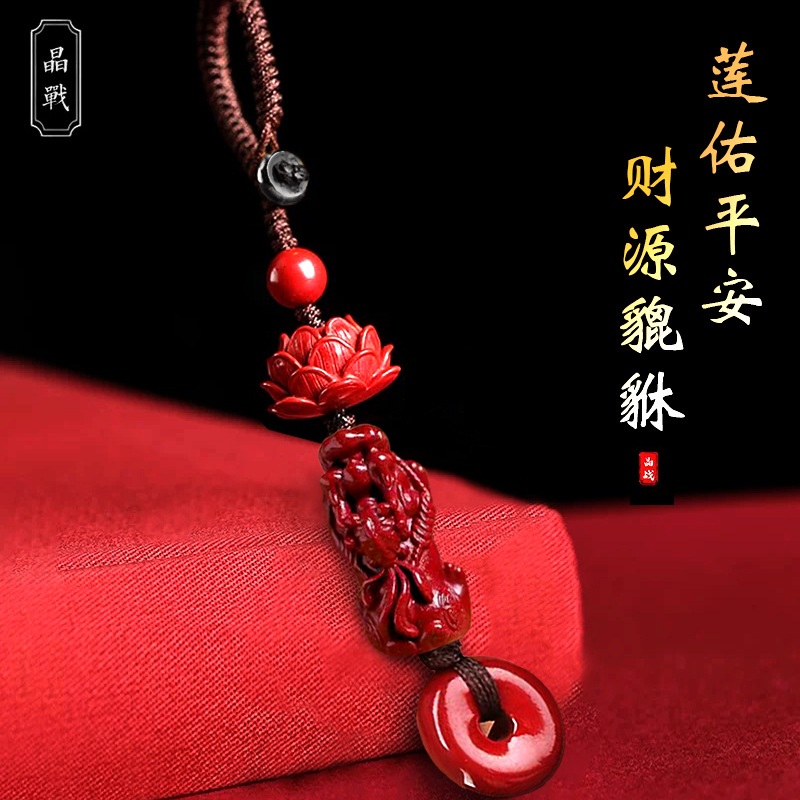 2025新款朱砂莲花貔貅汽车钥匙扣挂件紫金砂男女吊坠代发批发饰品