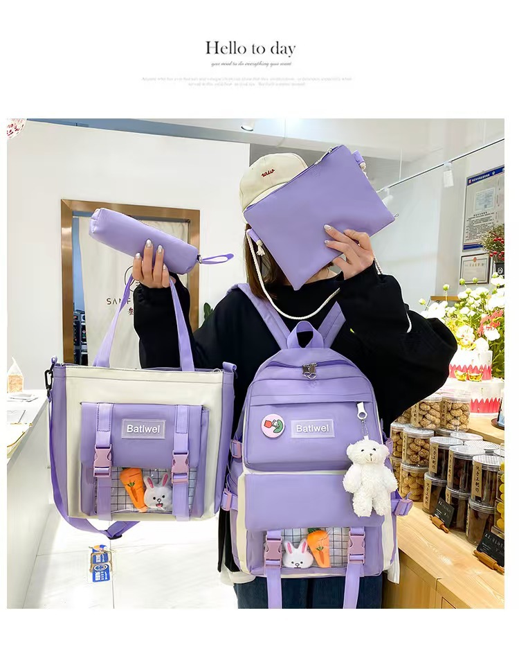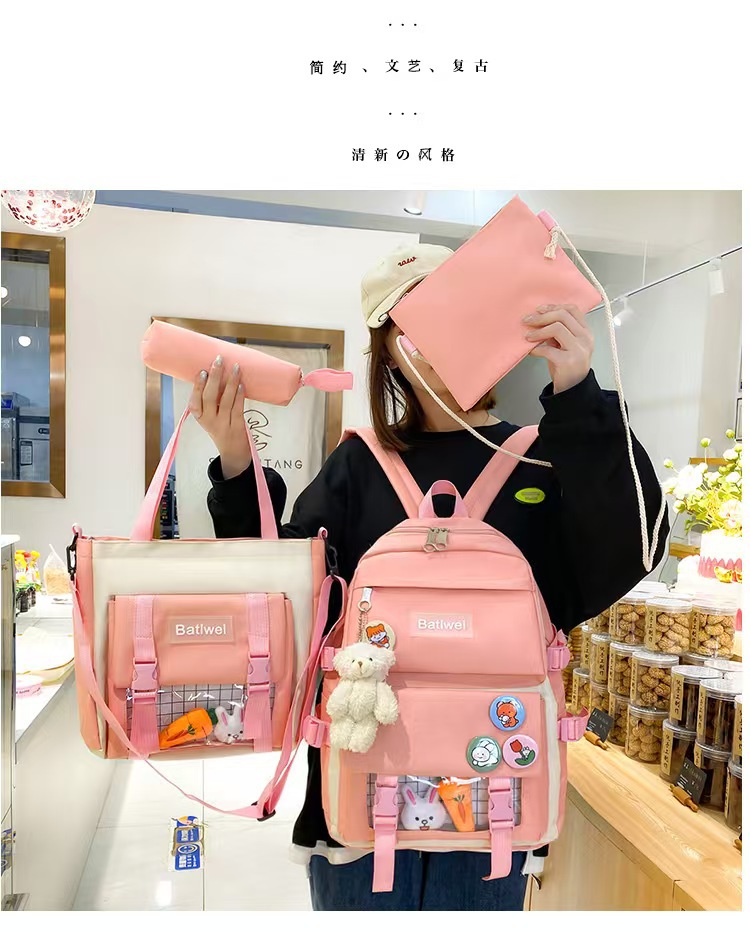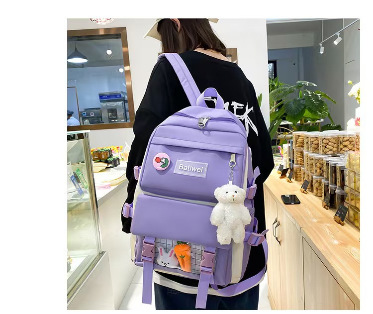 校园书包女萝卜小兔子小学生女孩背包初中生中学生双肩包四五件套