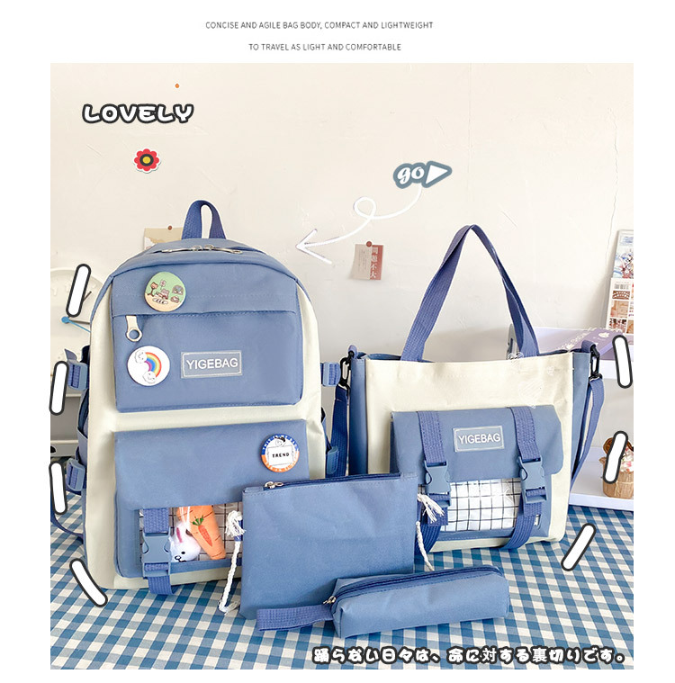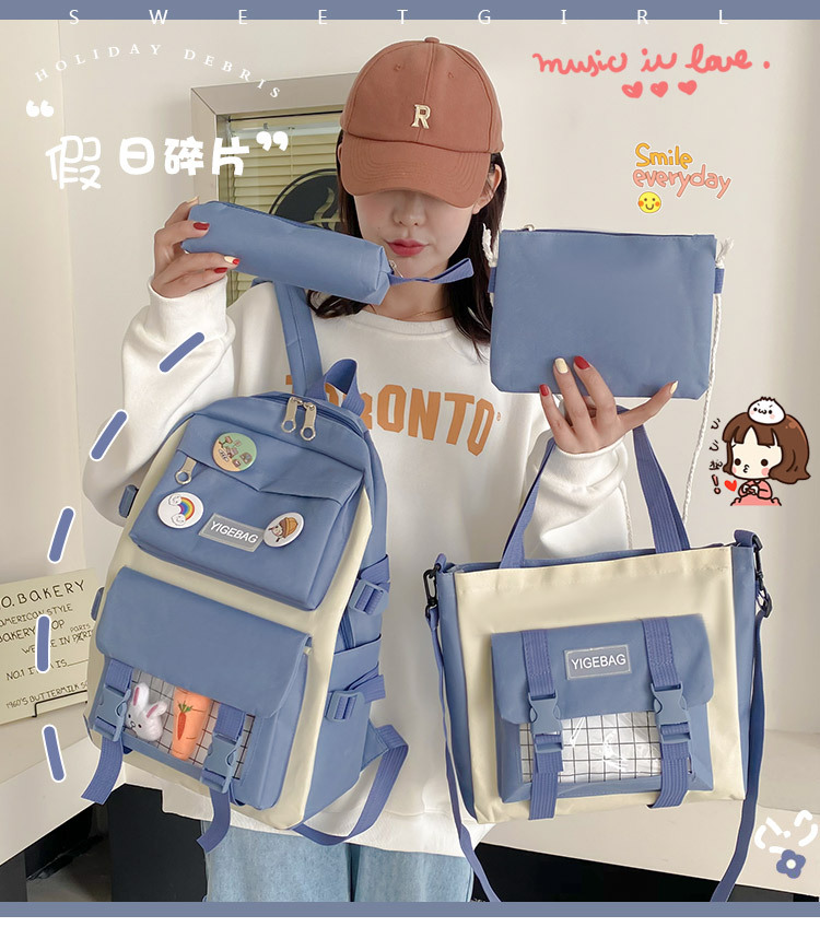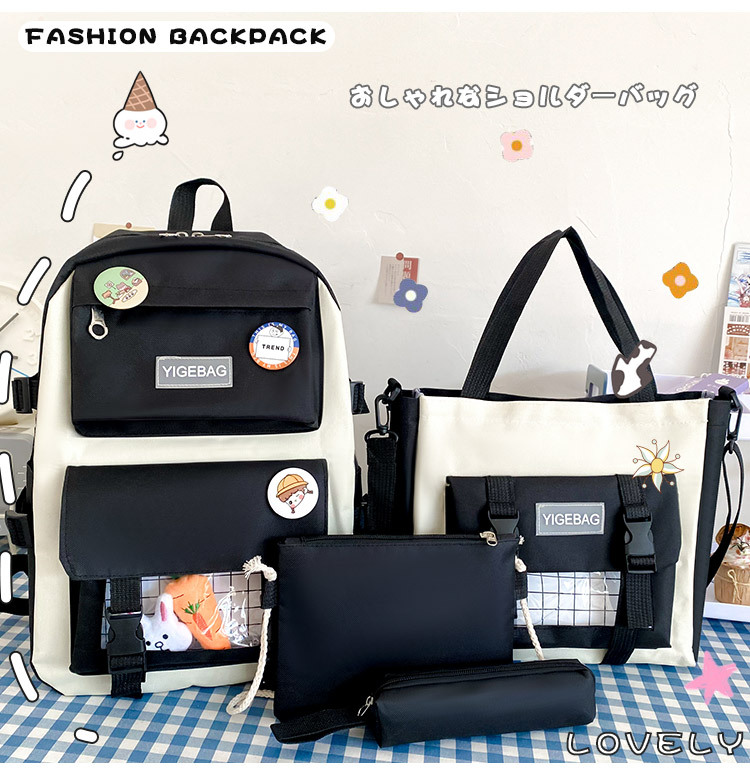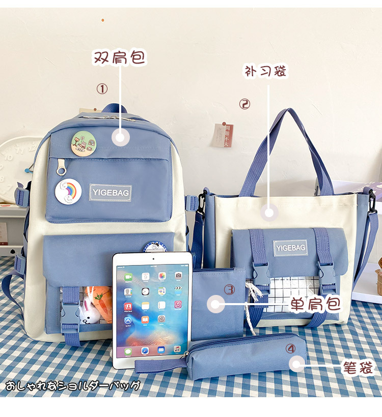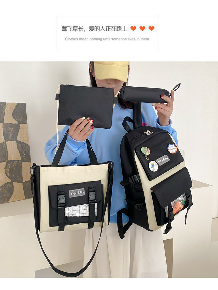 初高中学生包2024新款韩版学生背包校园日系原宿时尚四件套双肩包