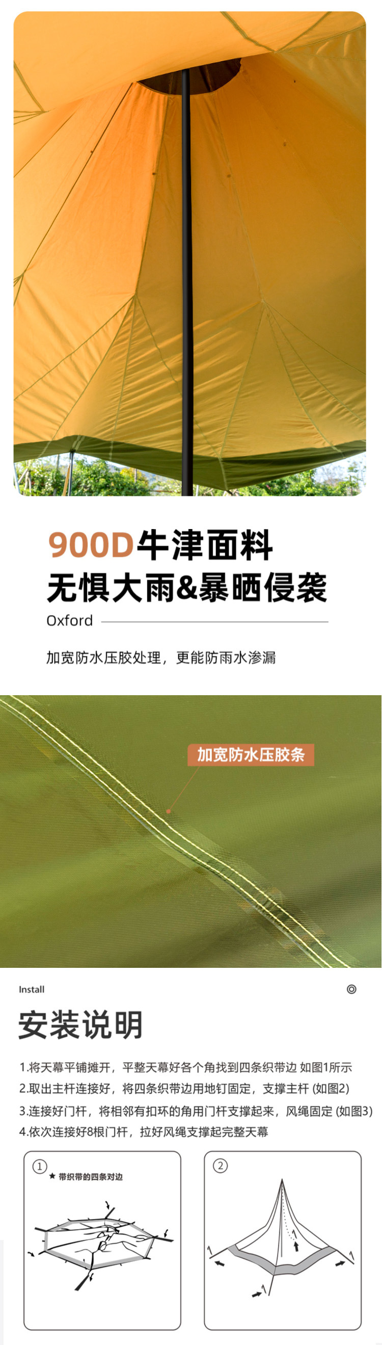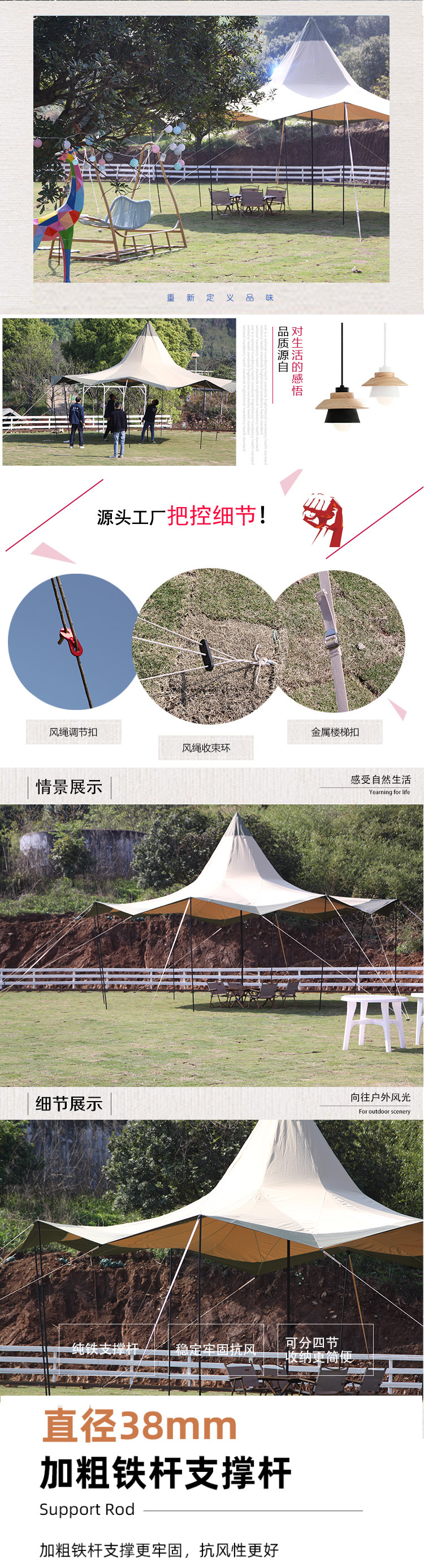户外庇护所露营加厚帆牛津布飞天帐金字塔印第安帐篷大型天幕草帽