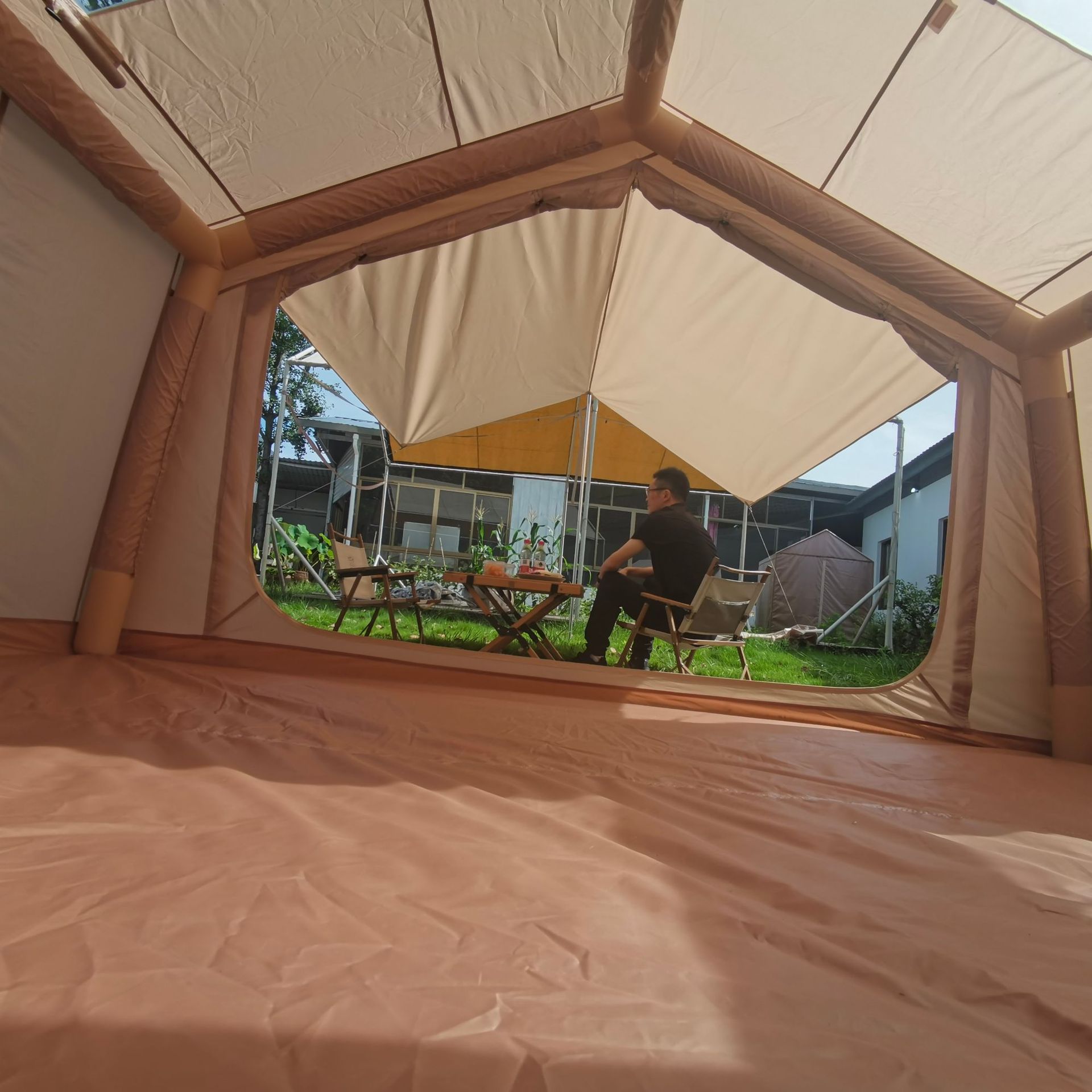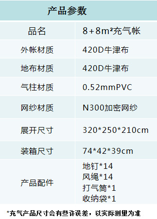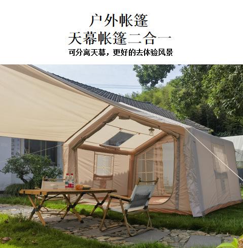 8+8m²便携式户外免搭建充气帐篷露营一室一厅屋脊厂家现货批发