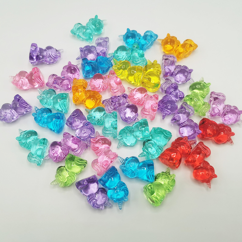 卡通独角兽亚克力水晶透明挂件游乐场儿童抓机玩具动物盲盒饰品