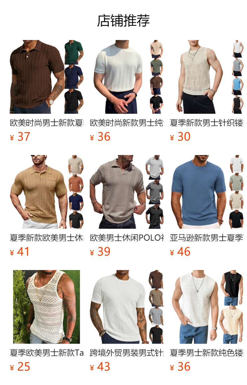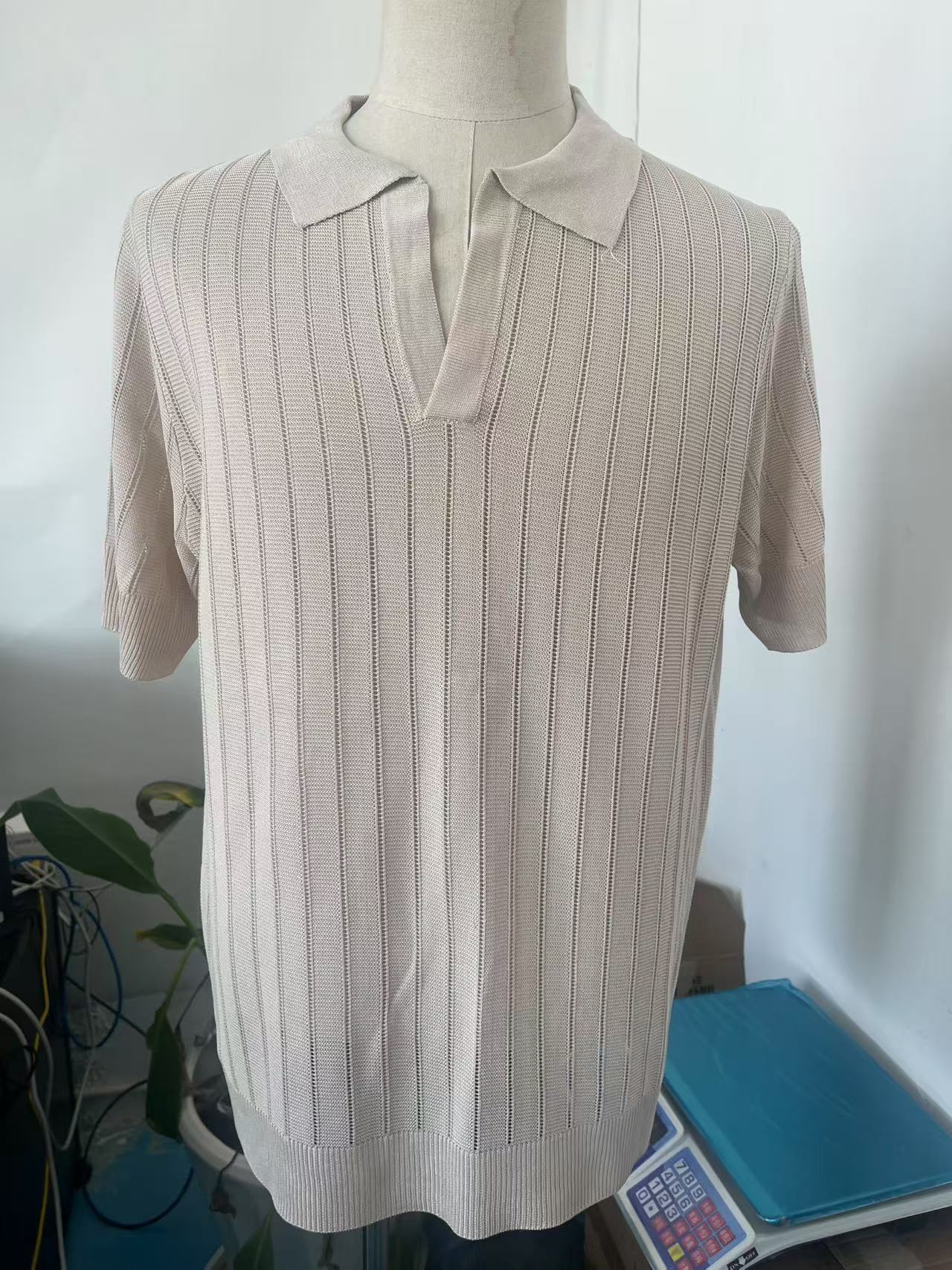 亚马逊新款男装网眼洞洞镂空条纹提花针织短袖T恤V领纯色Polo衫