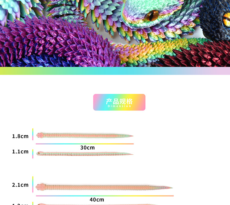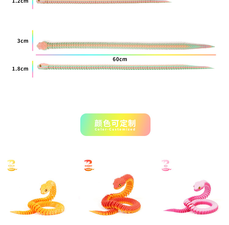 跨境3d打印蛇关节可活动蝰蛇手办摆件动物模型夜光儿童生日礼物