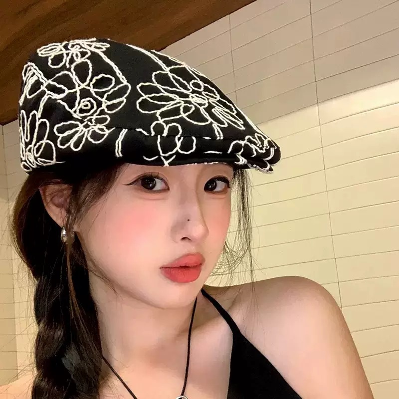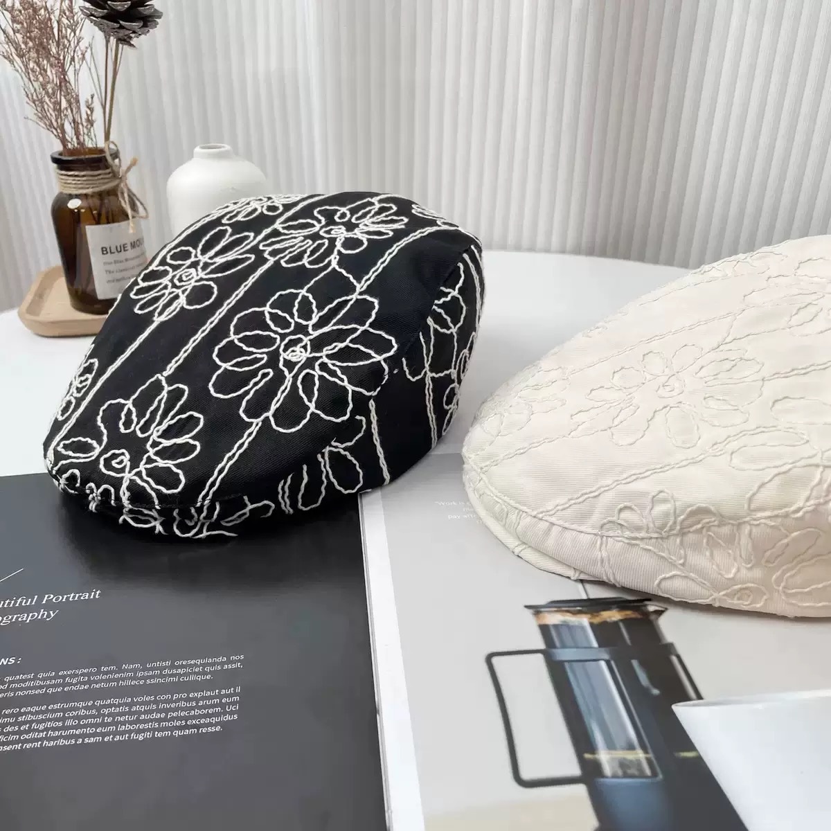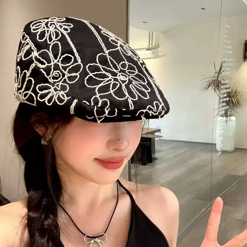 个性复古日系刺绣花朵前进帽女春夏时尚街头鸭舌帽百搭贝雷帽子潮