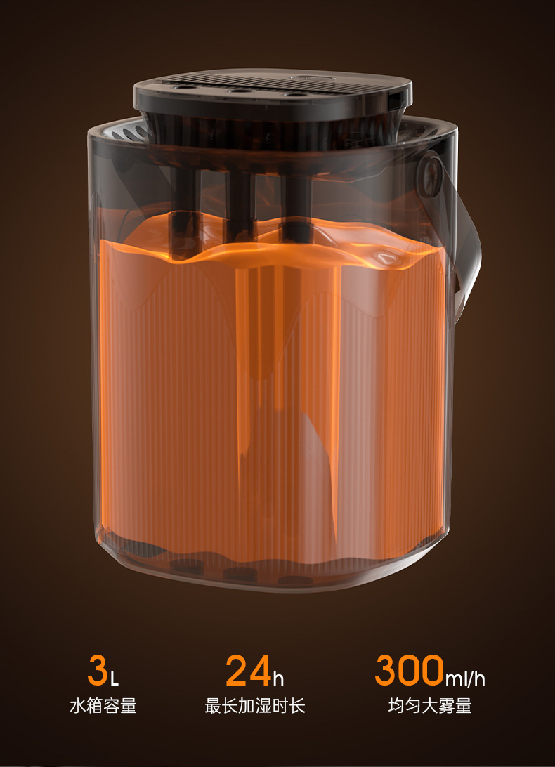 2024新款3L三喷口加湿器usb大容量家用办公室香薰夜灯小型加湿器