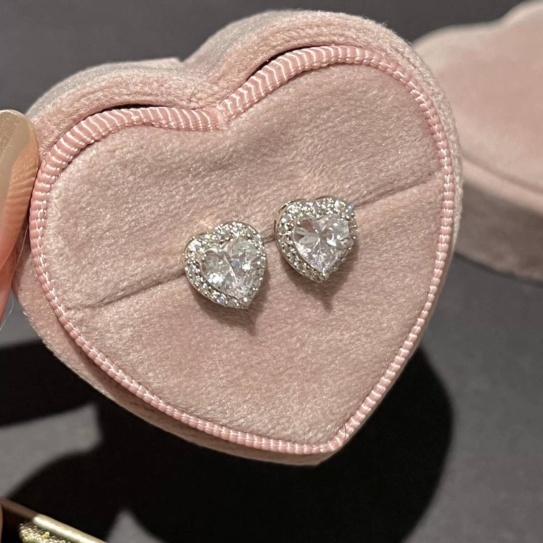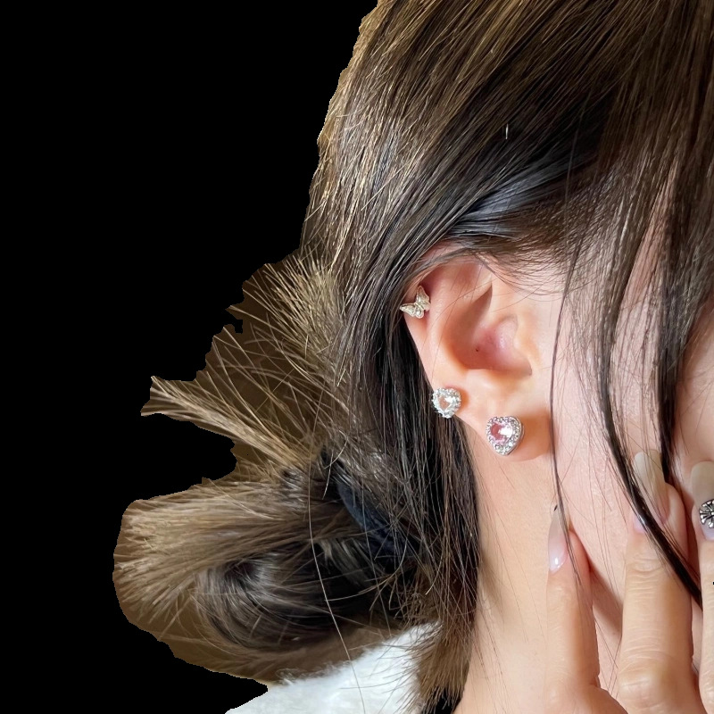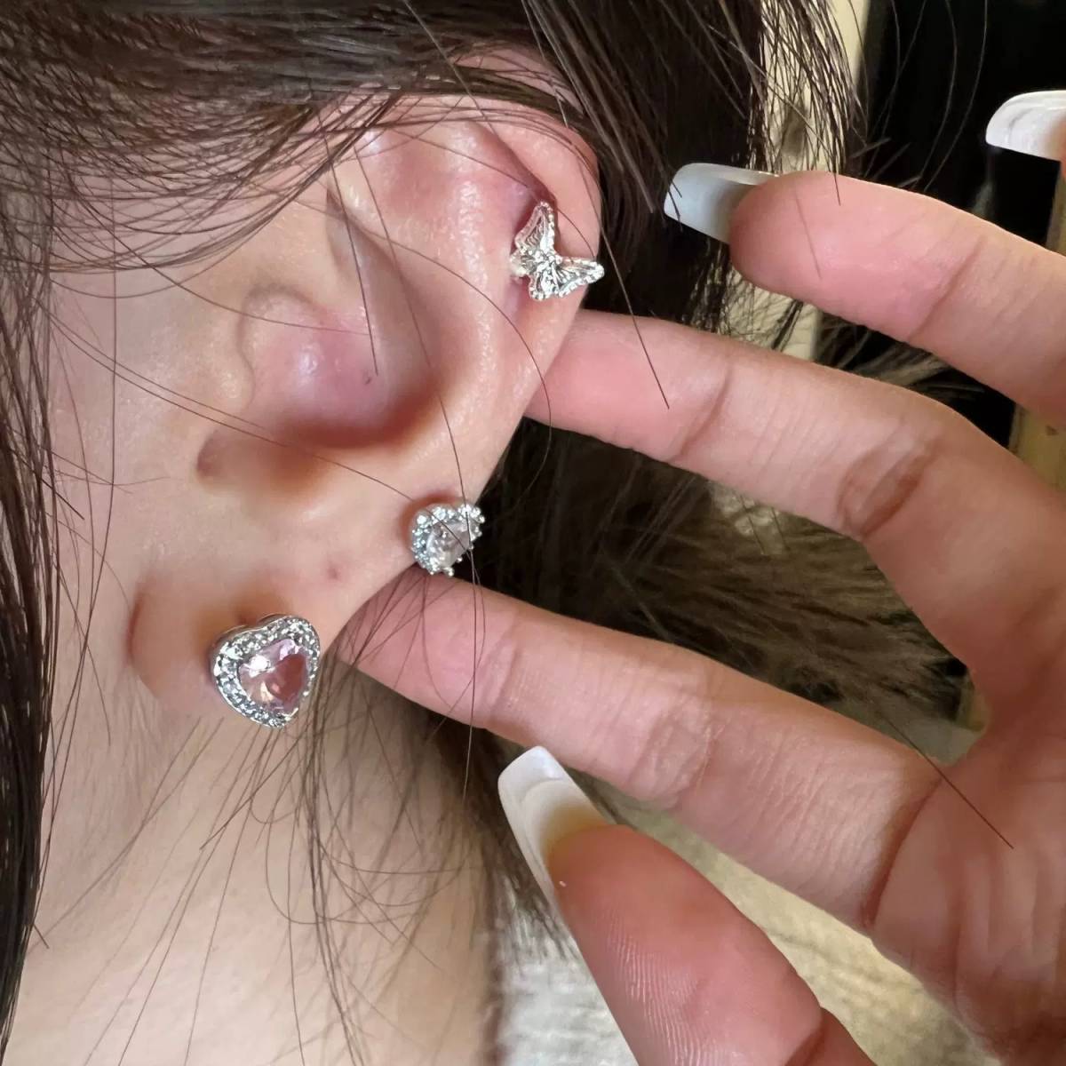 Purple Butterfly奶fufu爆闪满钻爱心耳钉锆石耳骨钉精致微镶工艺