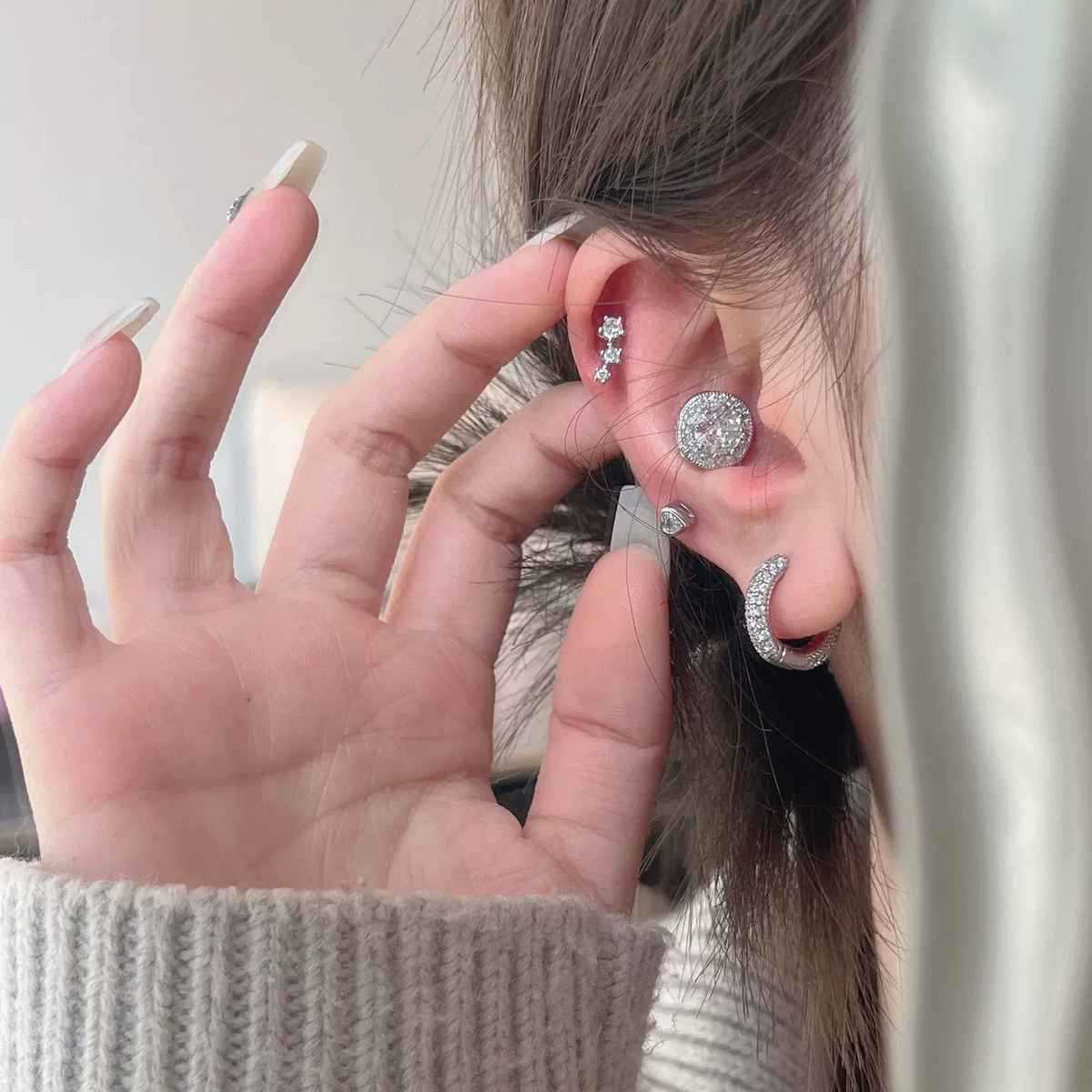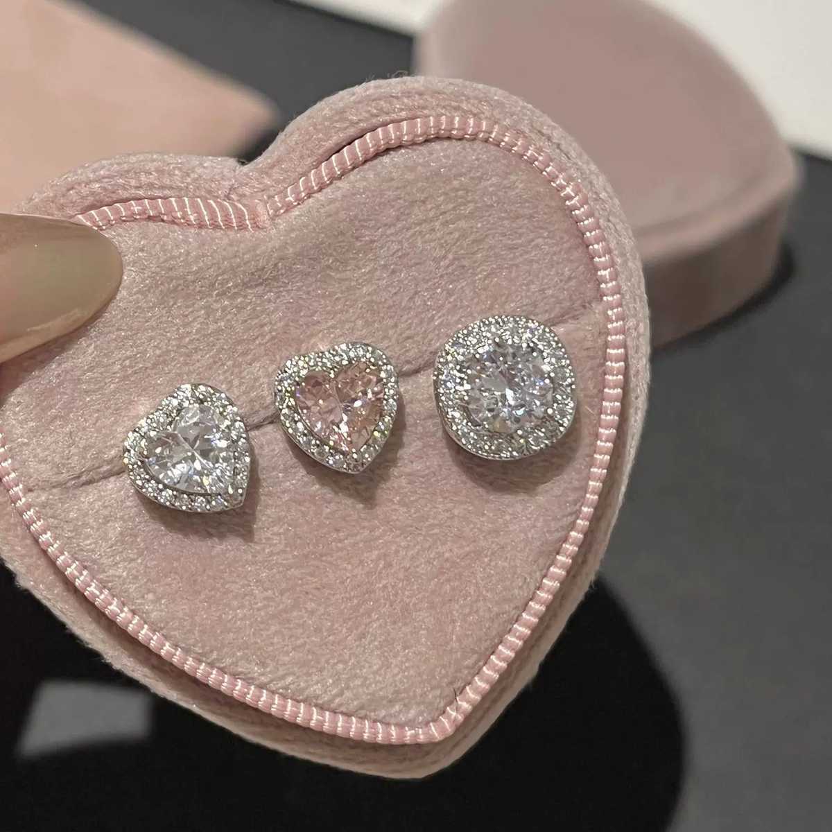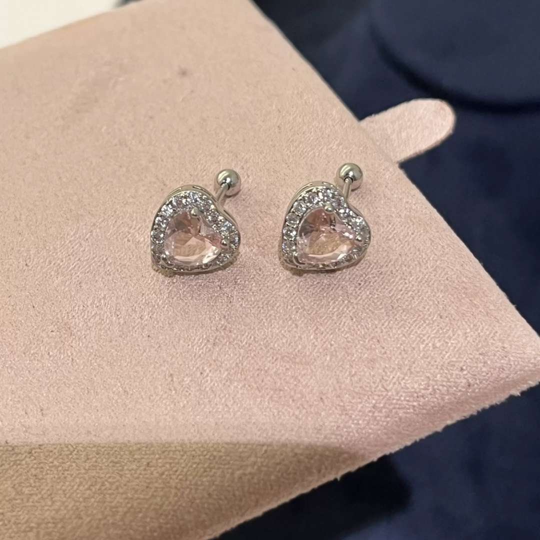 Purple Butterfly奶fufu爆闪满钻爱心耳钉锆石耳骨钉精致微镶工艺