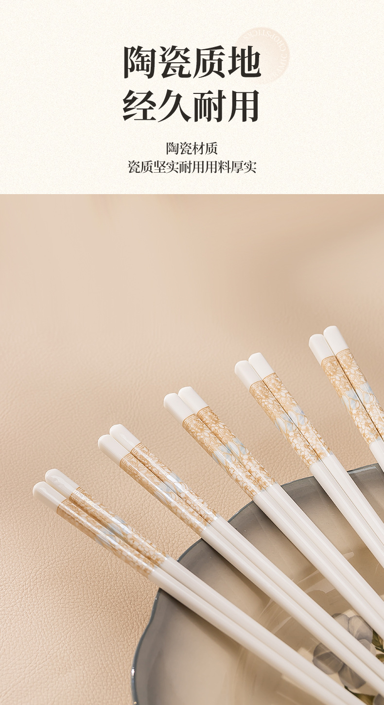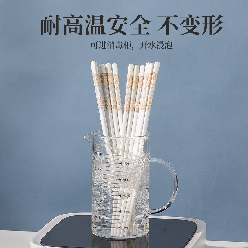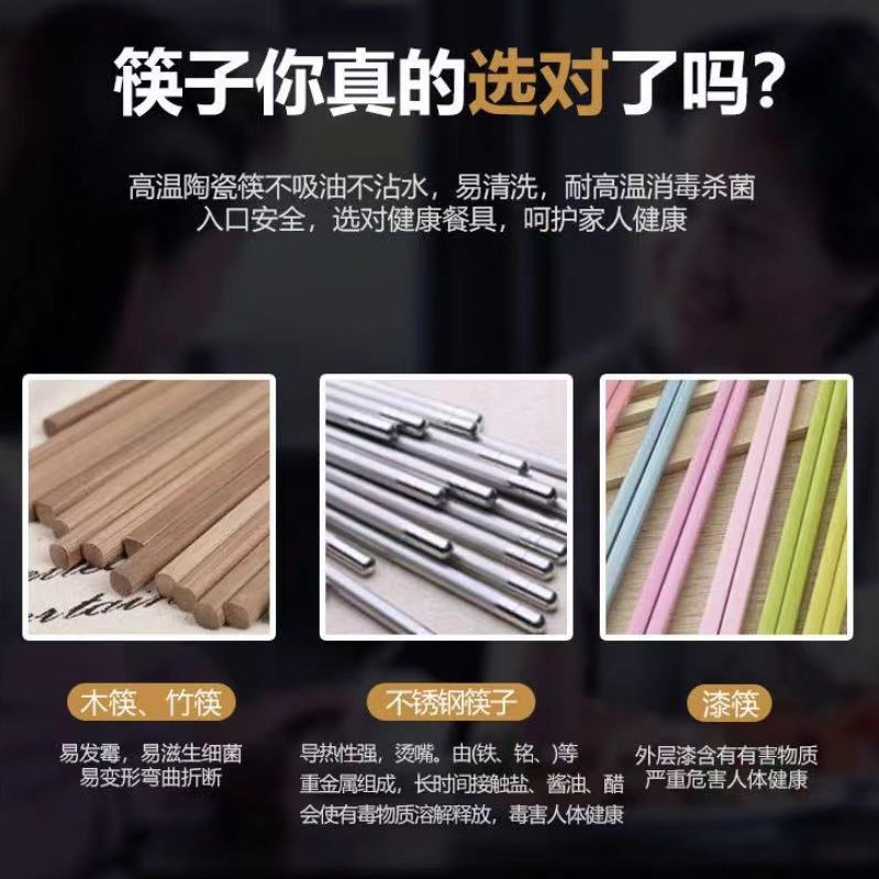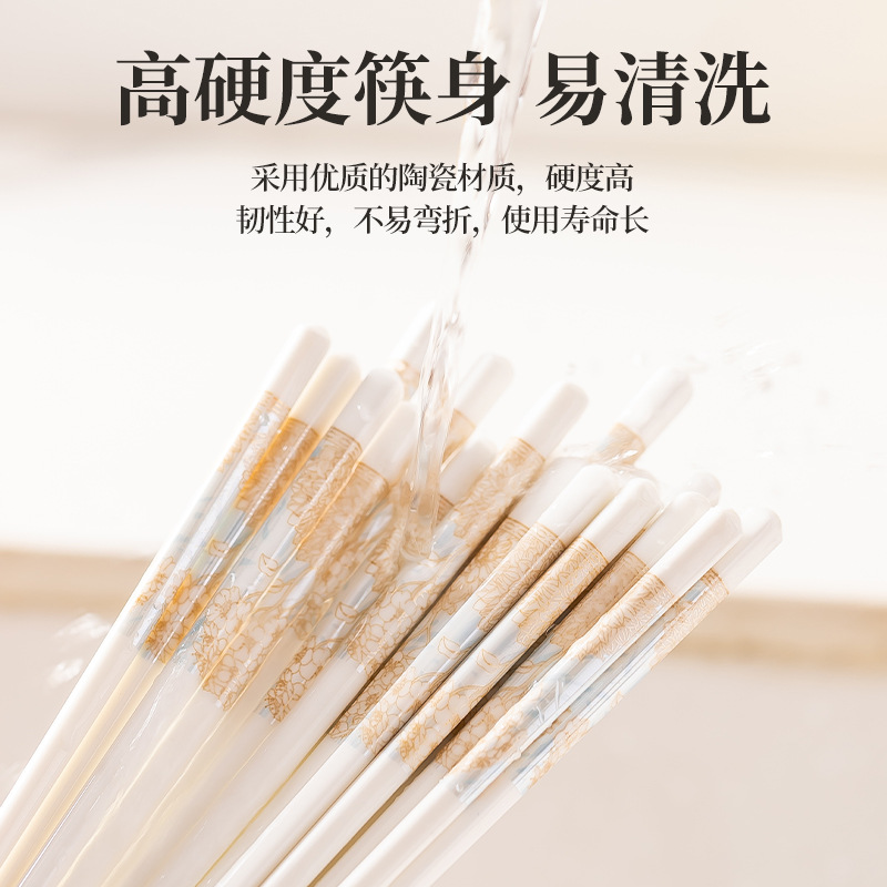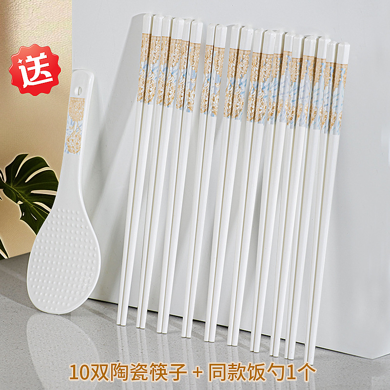 10双陶瓷筷子易清洗防霉耐高温块子家用高颜值公筷防滑一人一筷批
