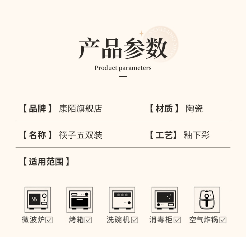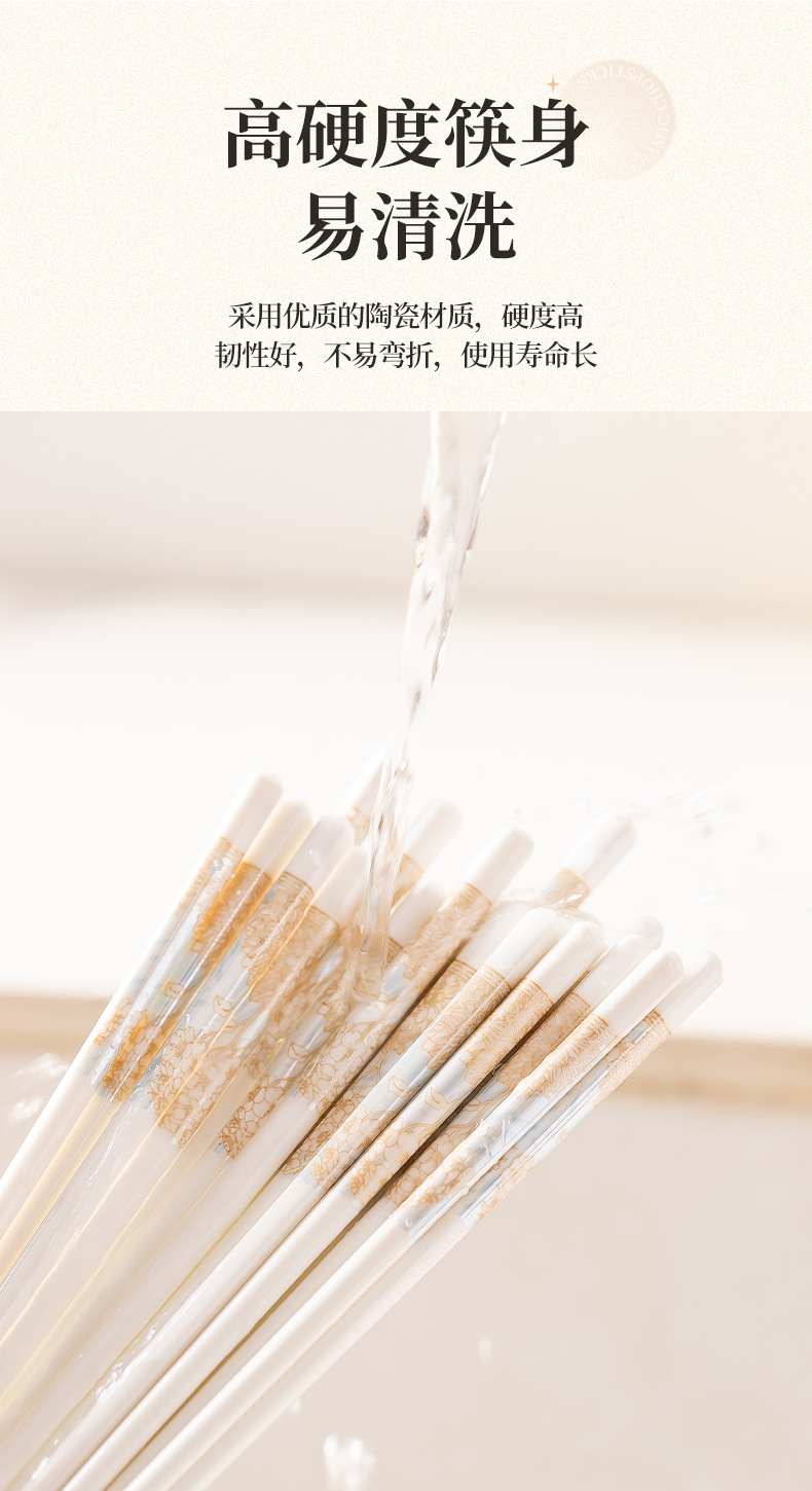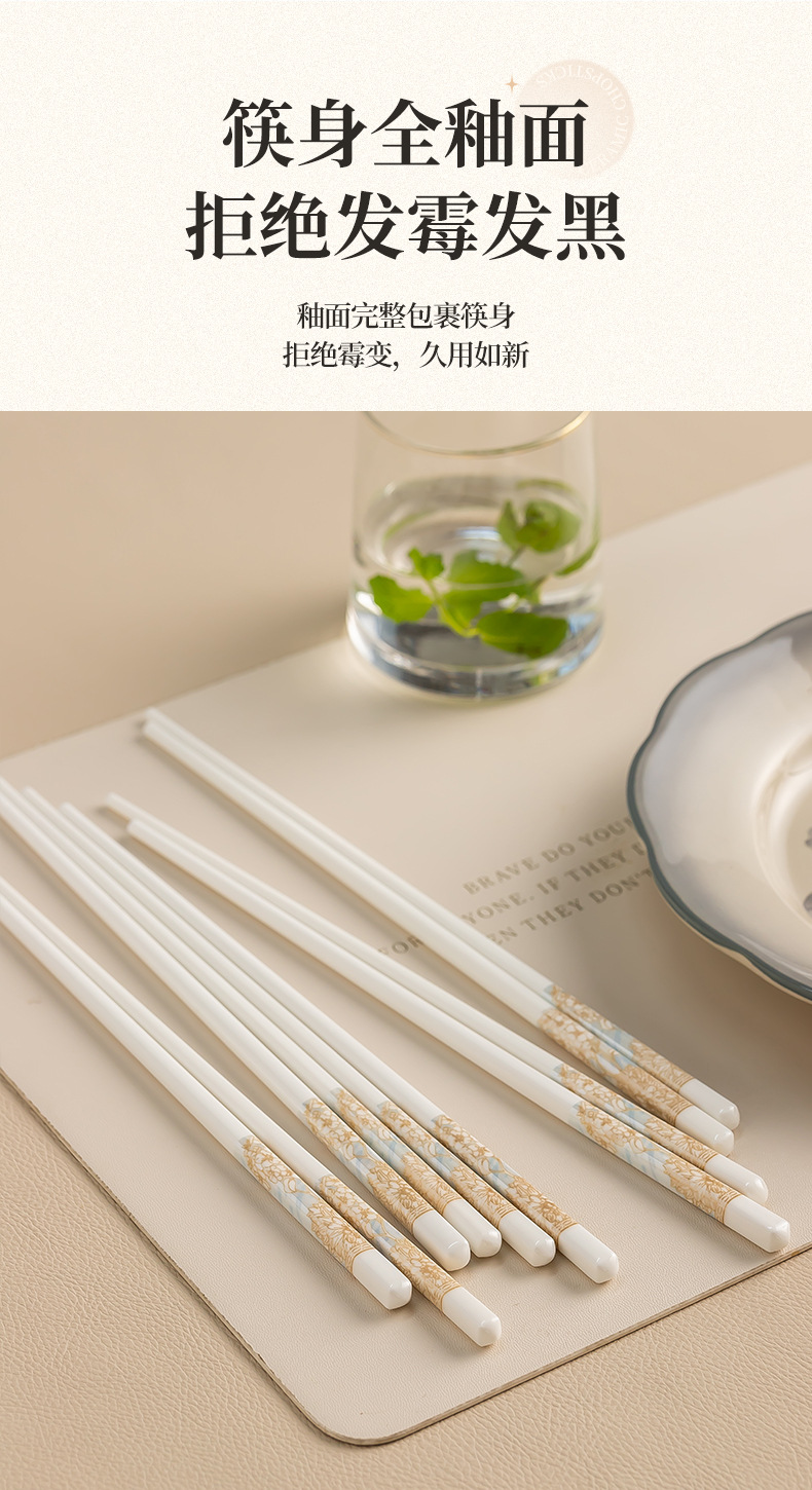10双陶瓷筷子易清洗防霉耐高温块子家用高颜值公筷防滑一人一筷批
