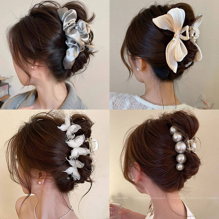 高级感缎面大号抓夹女2025新款轻奢褶皱后脑勺夹子鲨鱼夹 头饰发